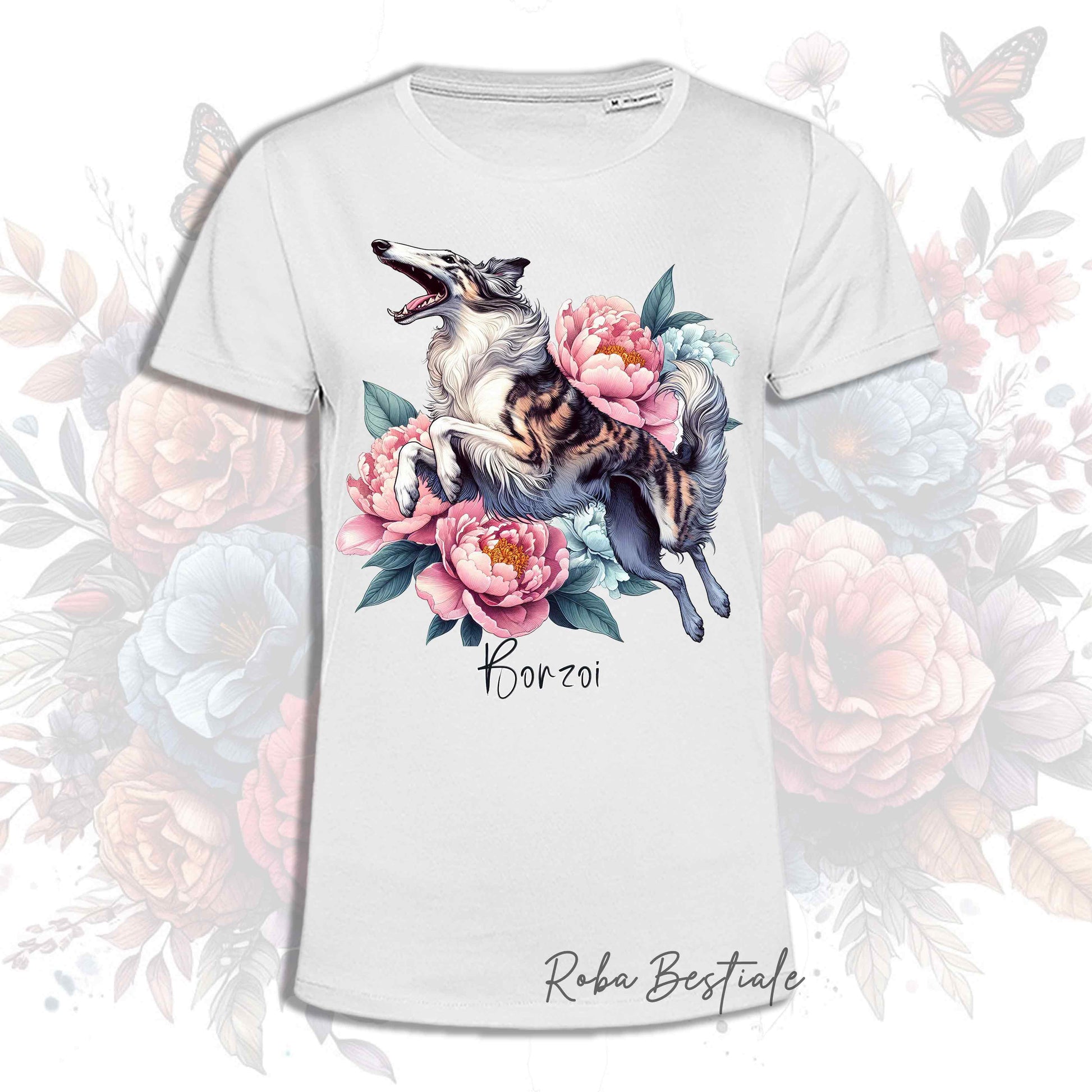 PEONY T-Shirt - White and Brindle Borzoi - White, Men or Women - XS to 5XL
