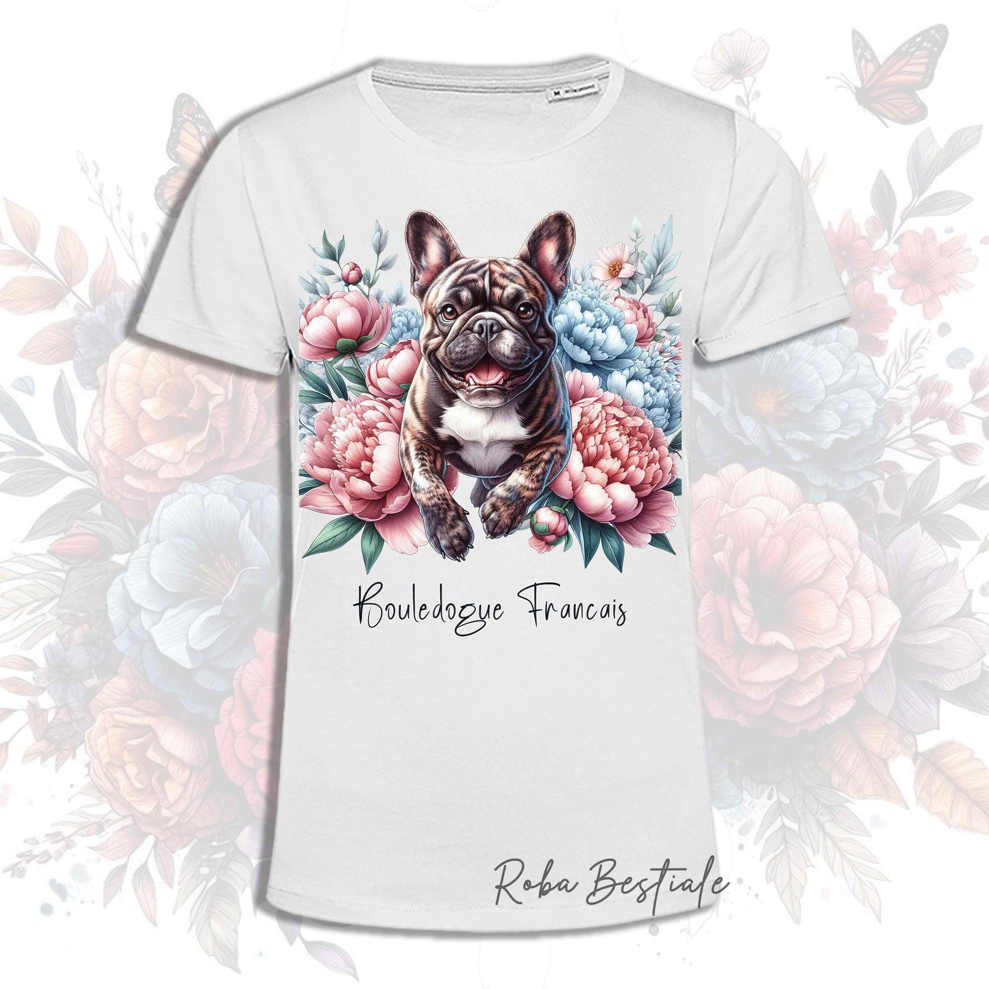PEONY - BOULEDOGUE FRANCAIS Bringé T-Shirt - White, Men's or Women's - XS to 5XL