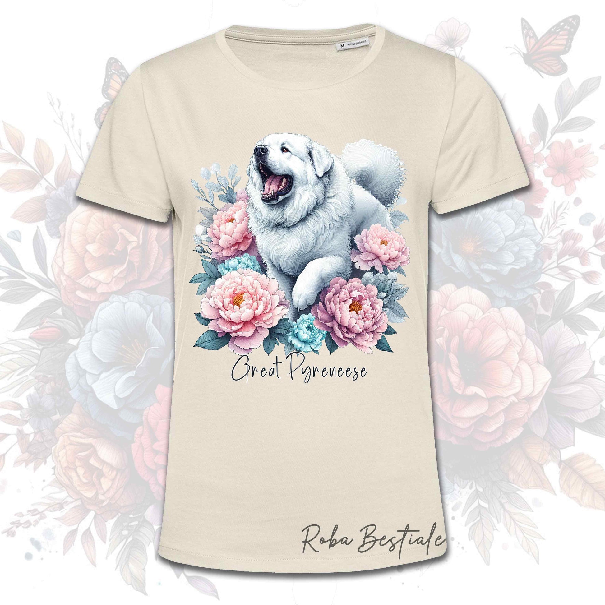 PEONY T-Shirt - PYRENEES MOUNTAIN DOG - White or Beige, Men's or Women's, XS to 5XL