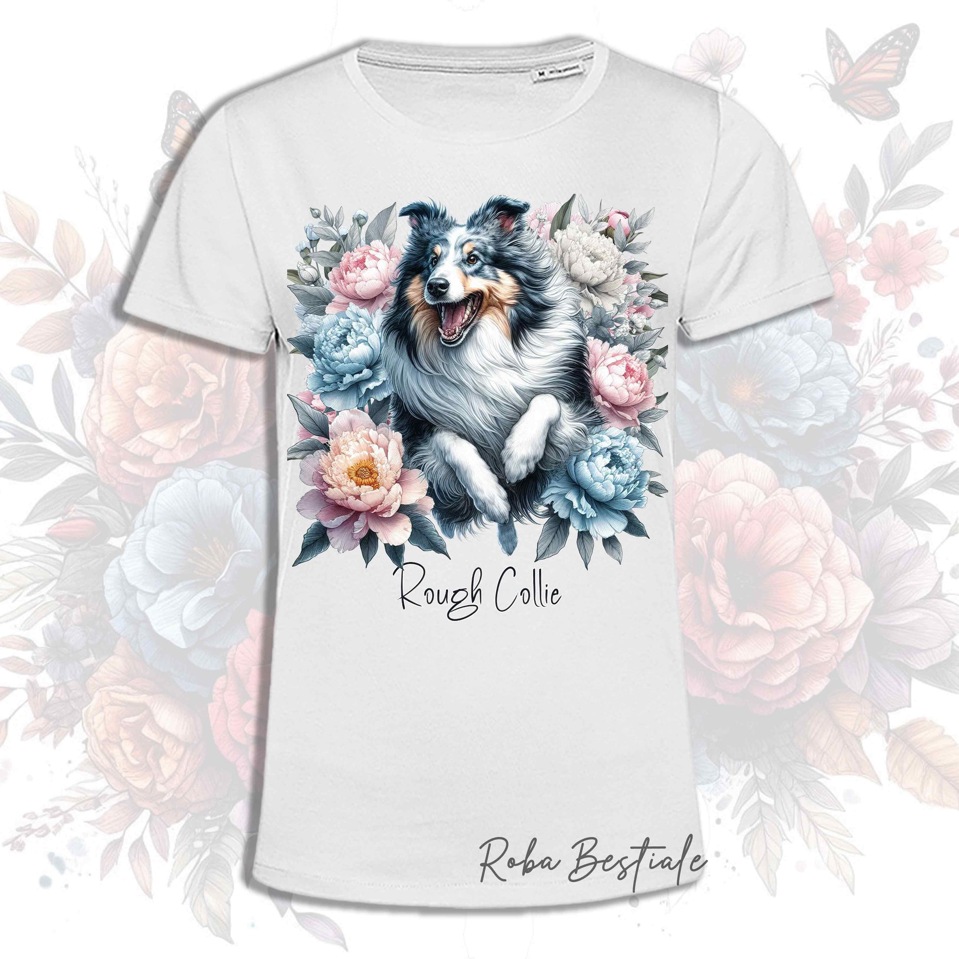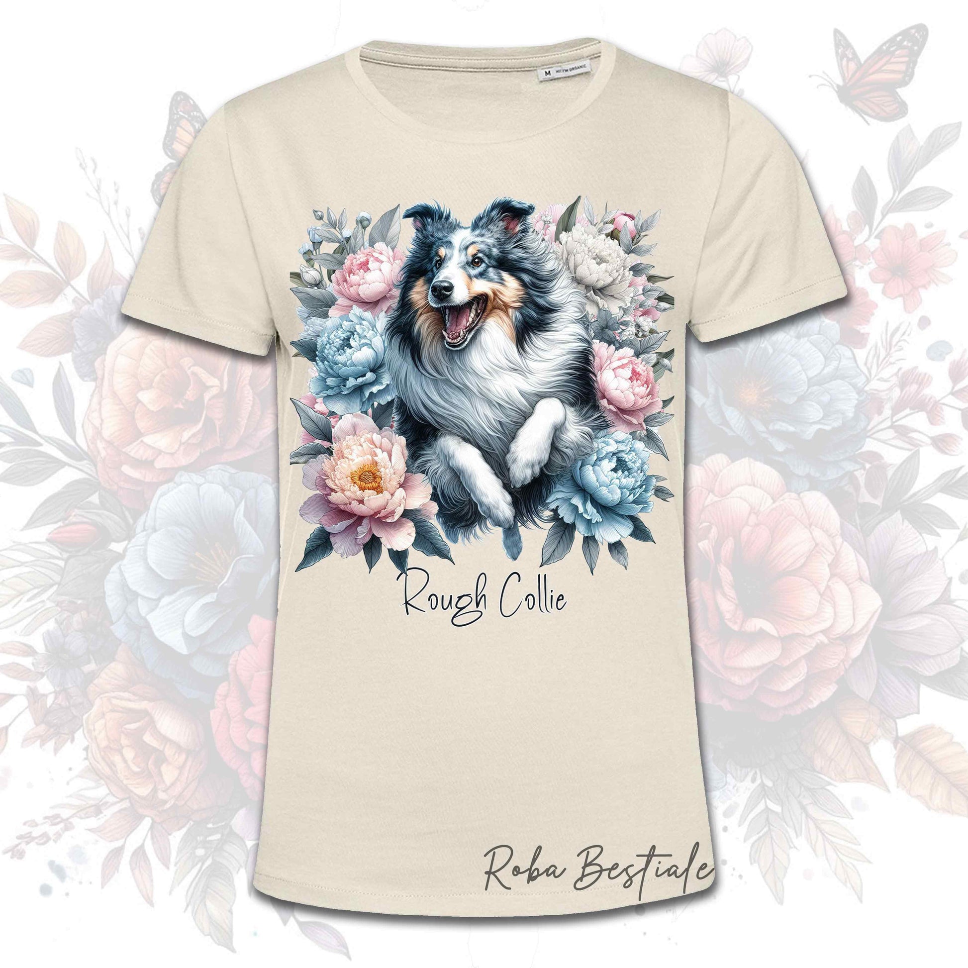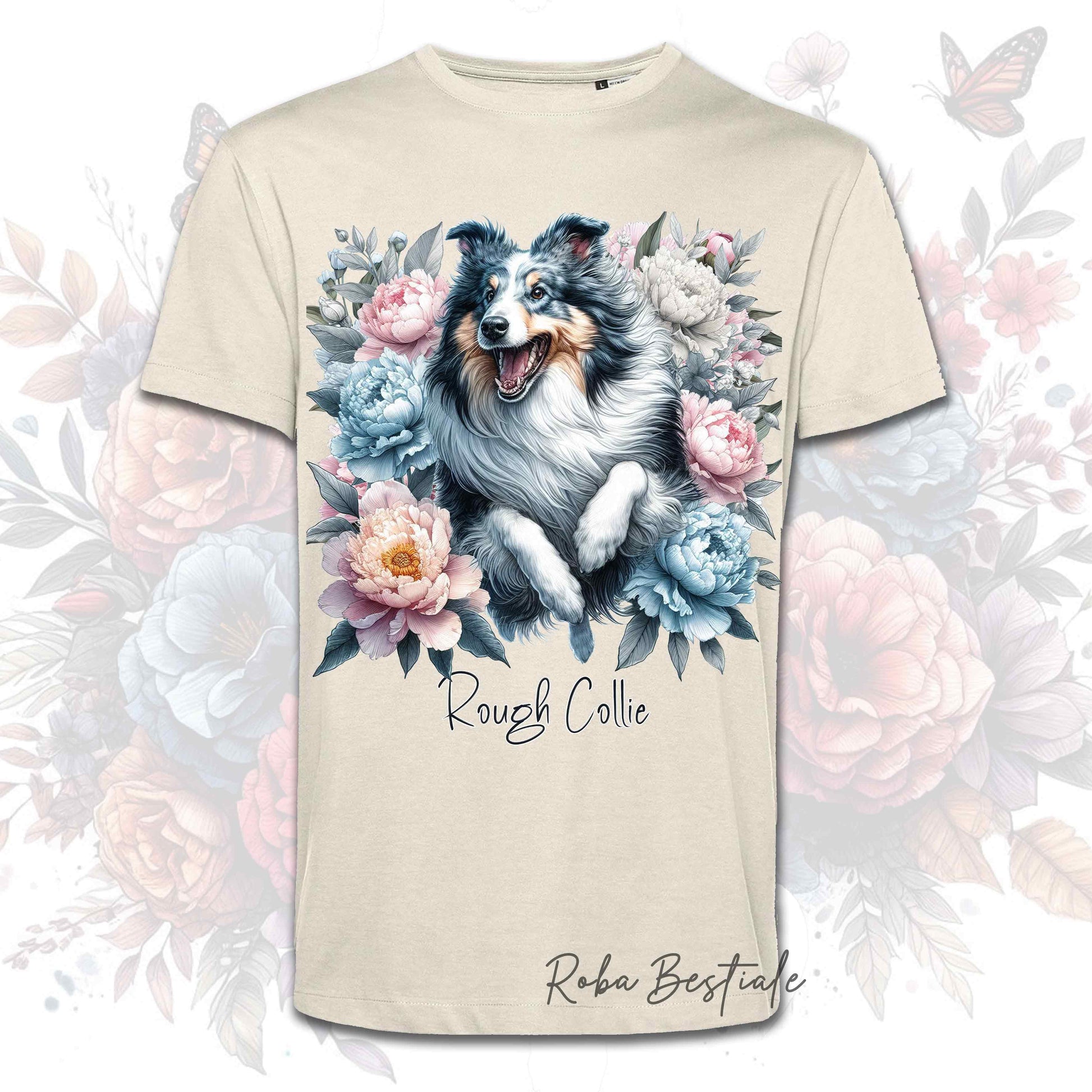 PEONY T-Shirt - Long-Haired Blue Merle SCOTTISH SHEPHERD DOG - White or Beige, Men's or Women's, XS to 5XL