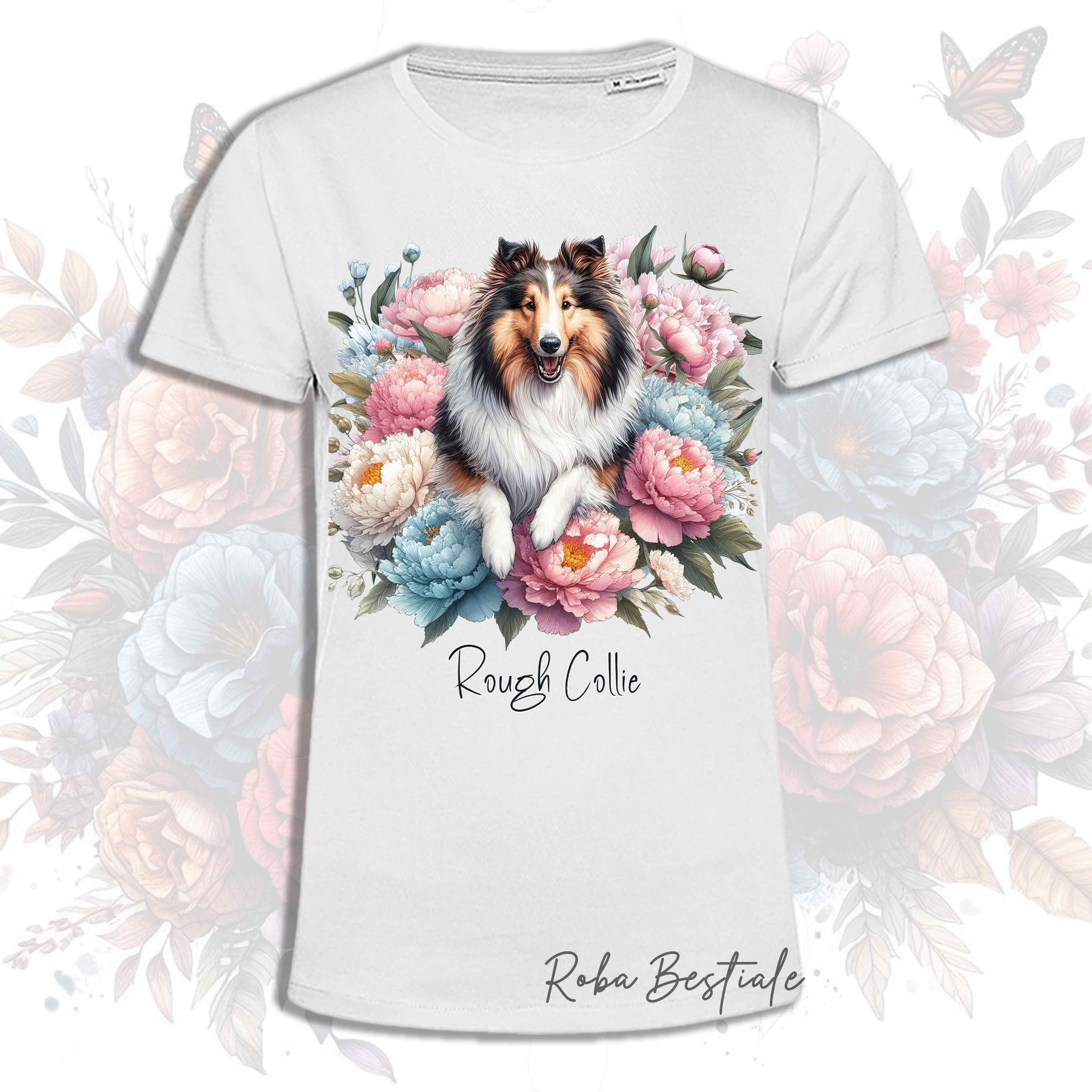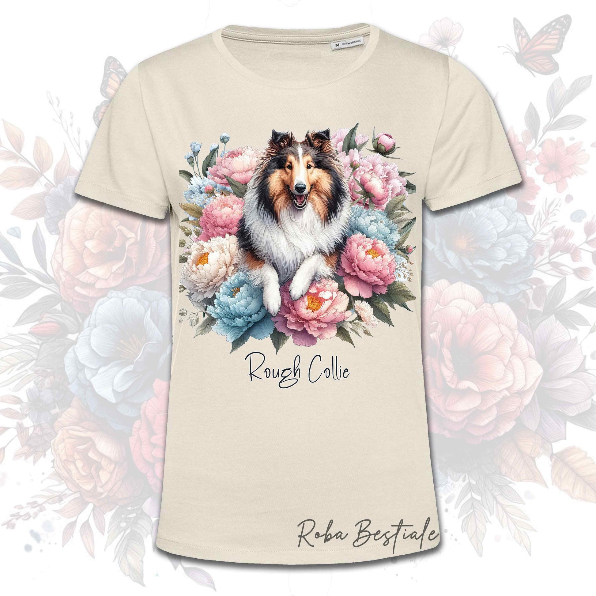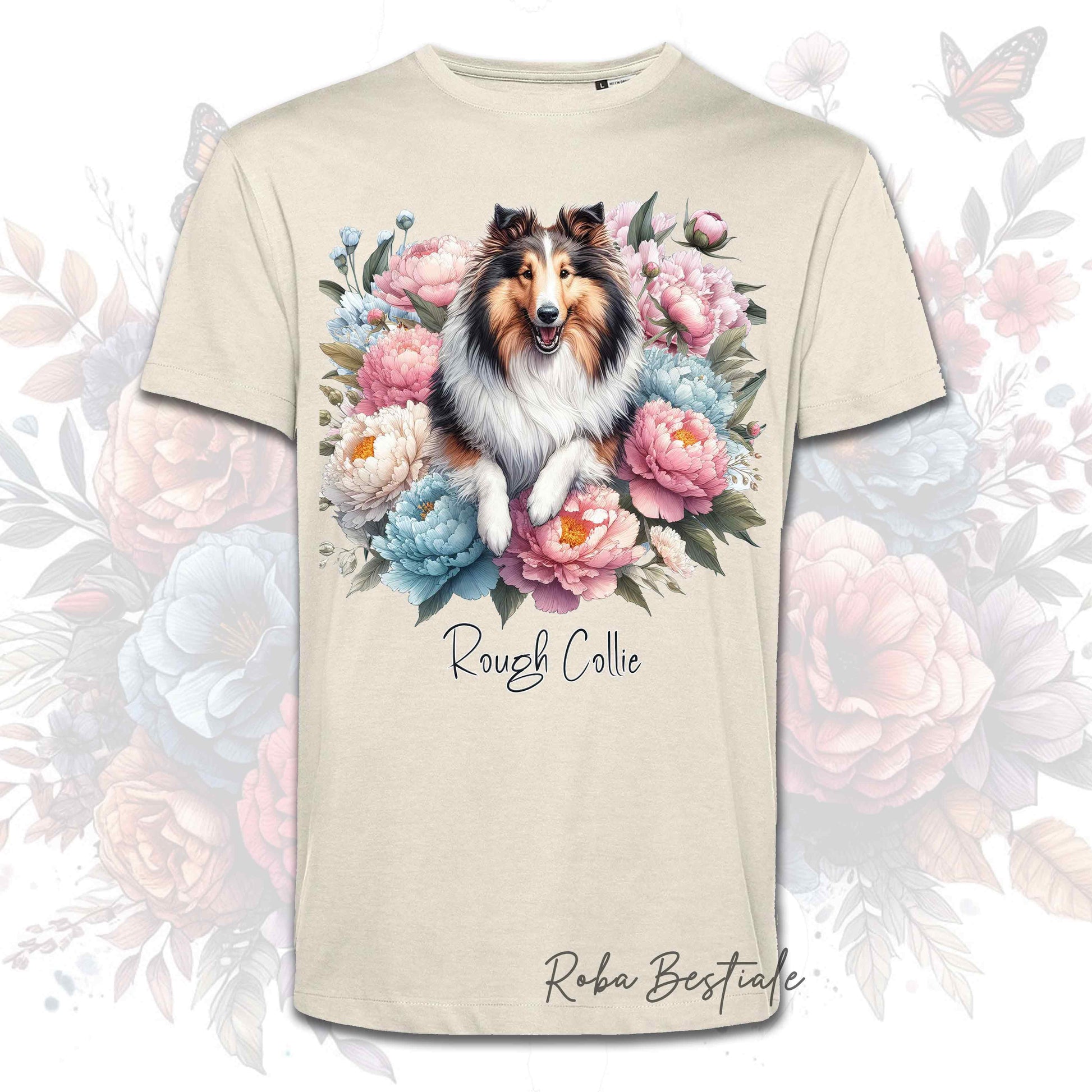 PEONY T-Shirt - Long-Haired Fawn Sable Scottish Shepherd Dog - White or Beige, Men's or Women's, XS to 5XL