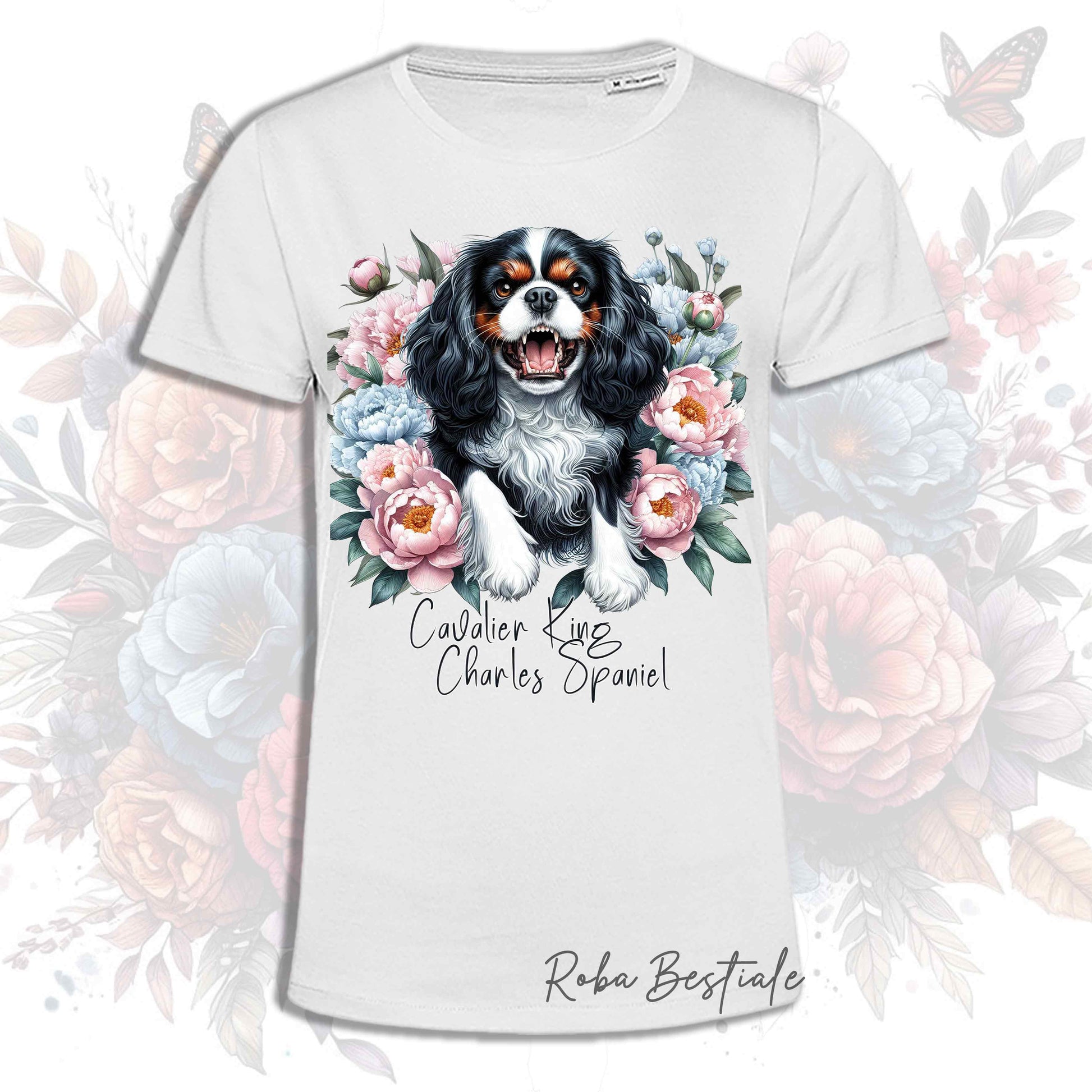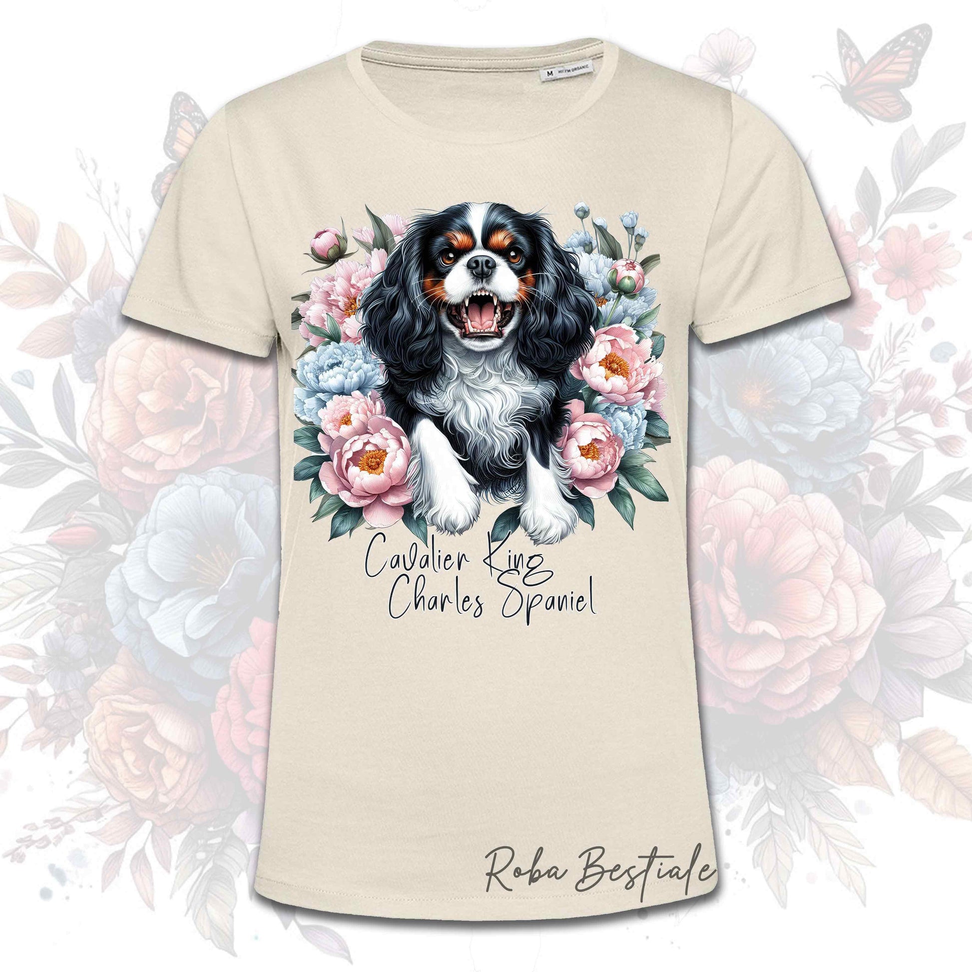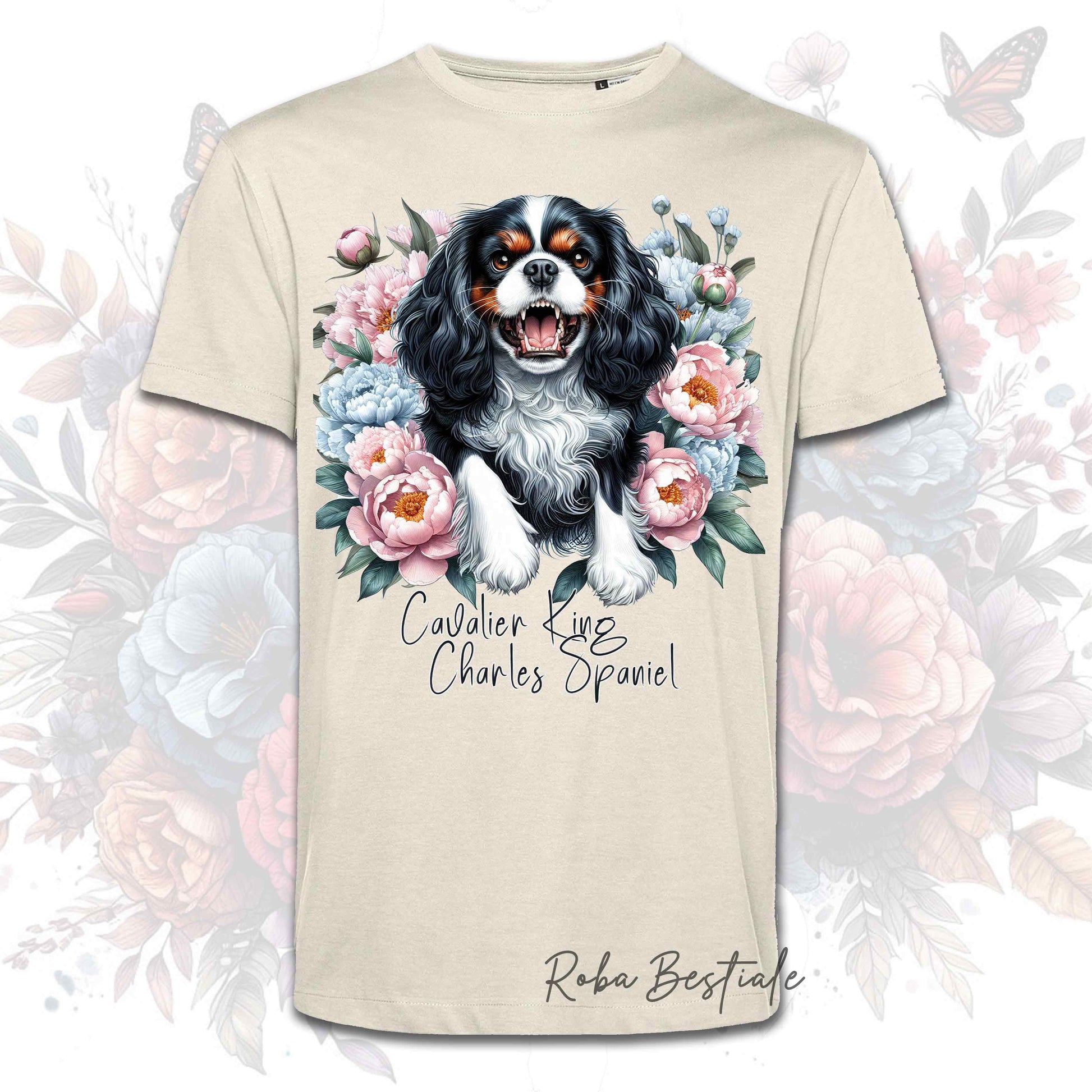 PEONY T-Shirt - Cavalier King Charles Spaniel Tricolor - White or Beige, Men or Women, XS to 5XL