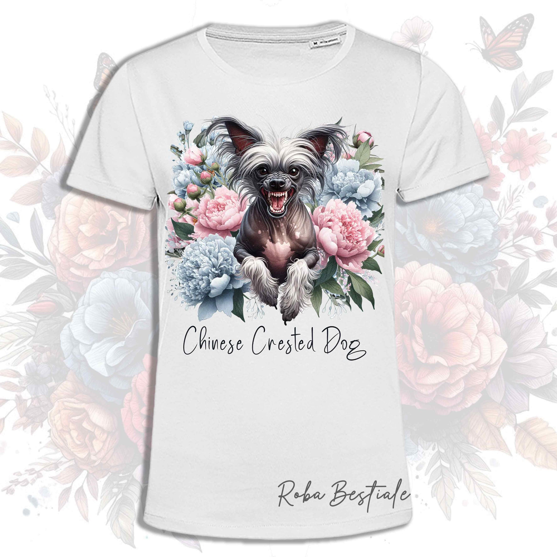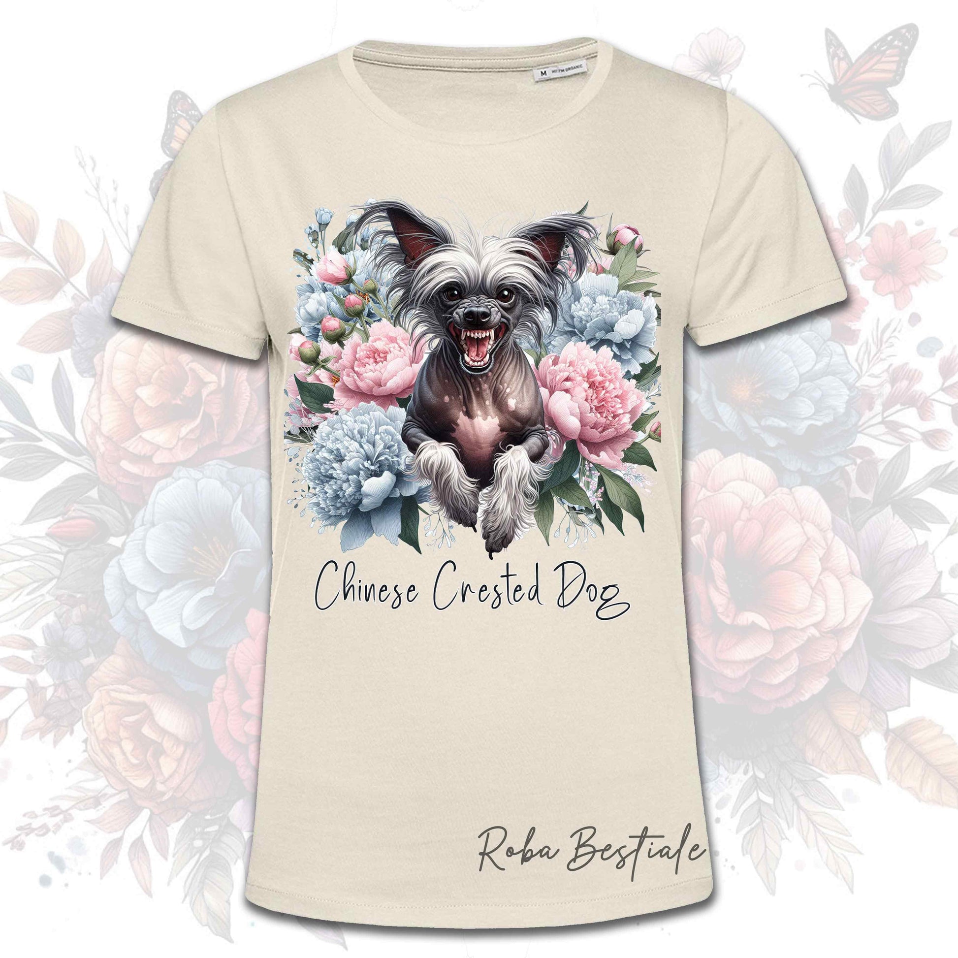 PEONY T-Shirt - CHINESE CRESTED DOG Hairless Gray - White or Beige, Men or Women, XS to 5XL