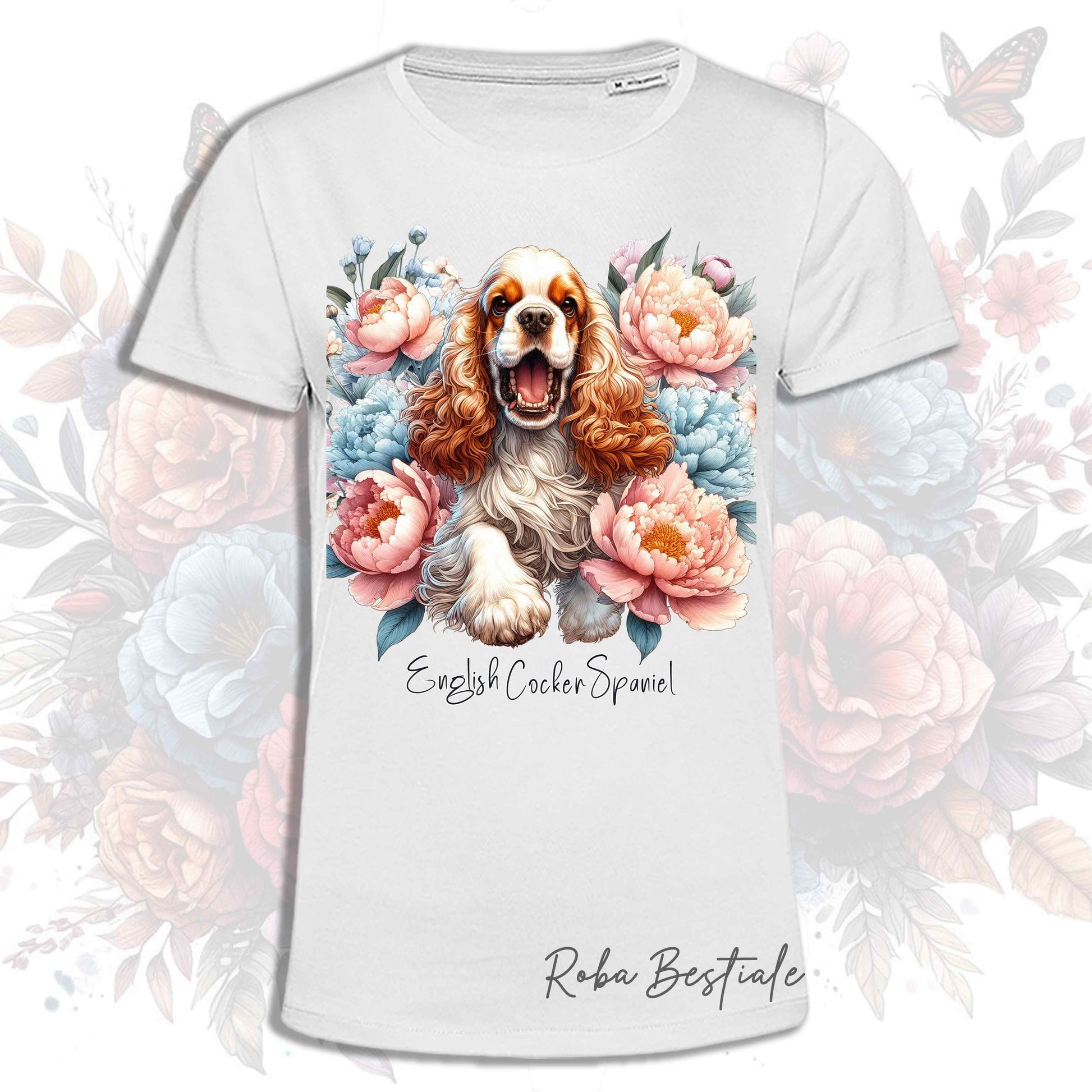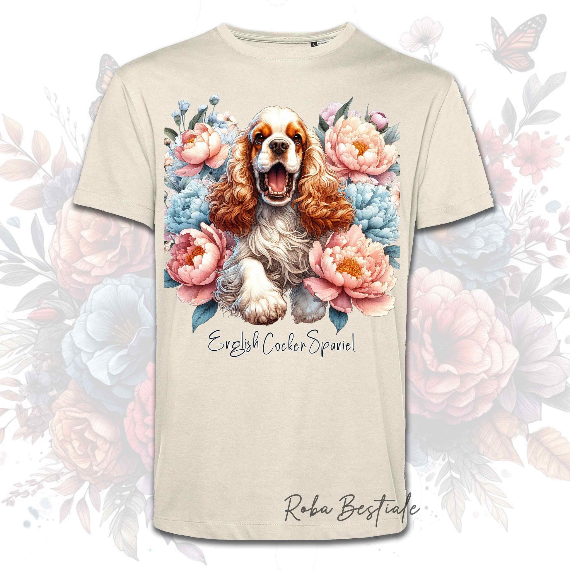 PEONY T-Shirt - ENGLISH COCKER SPANIEL Orange and White - White or Beige, Men or Women, XS to 5XL