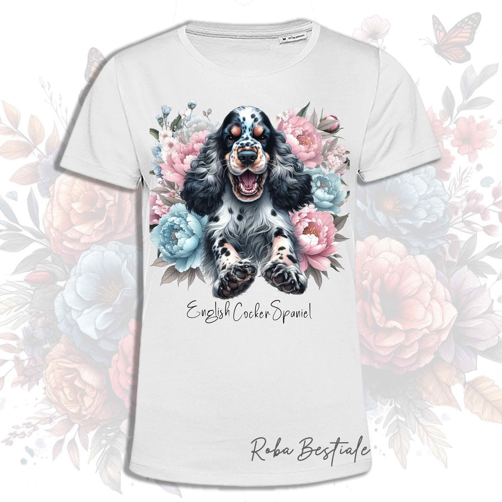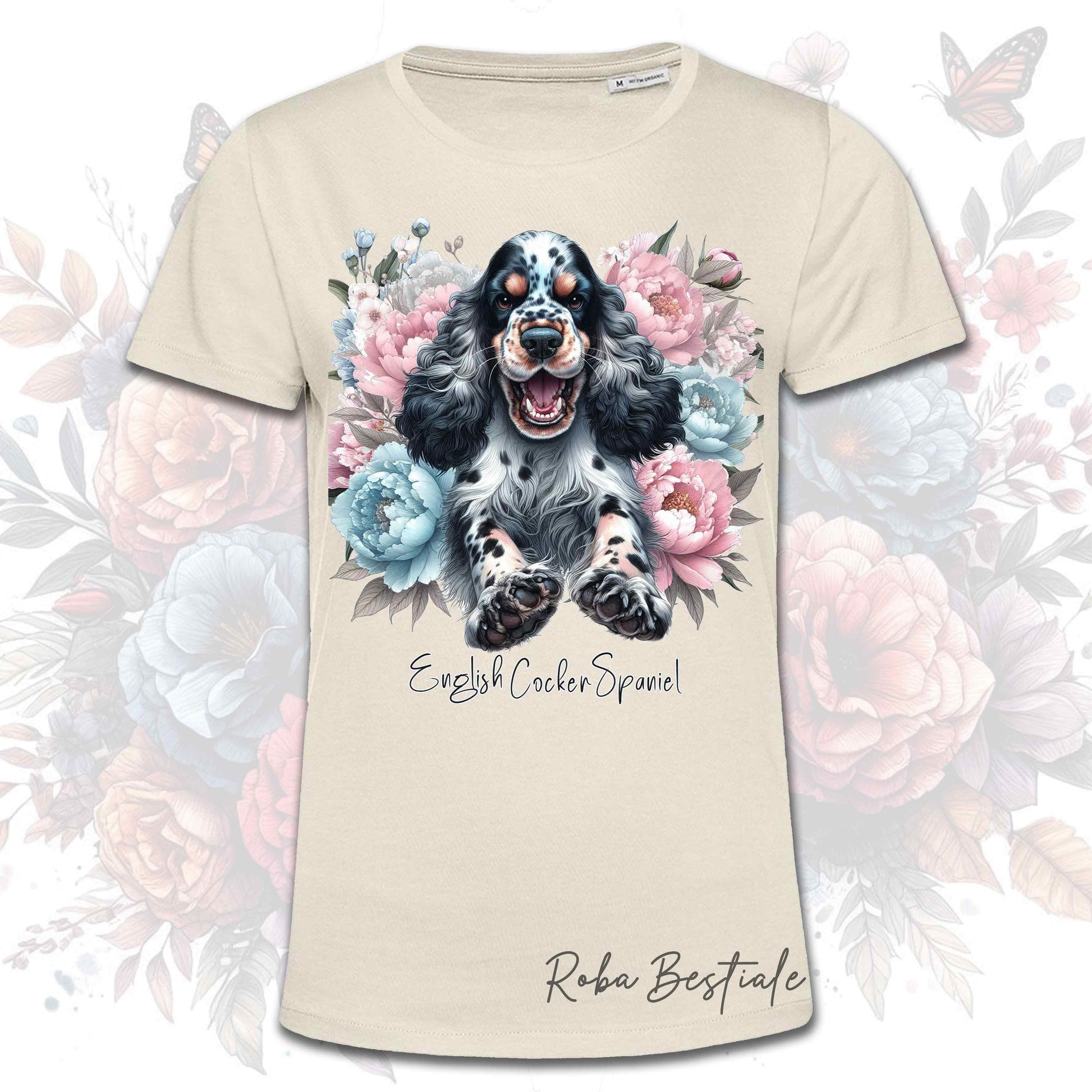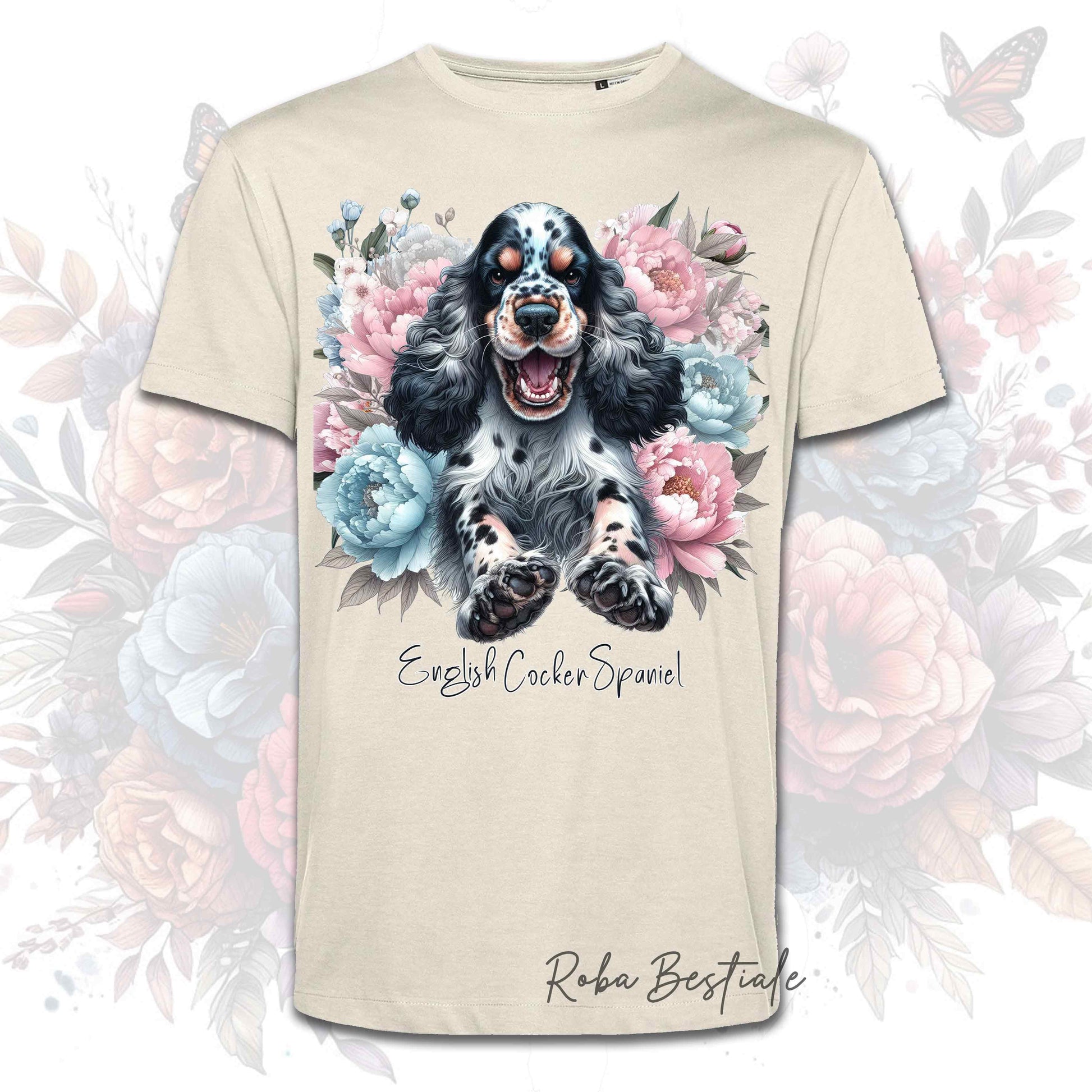 PEONY T-Shirt - ENGLISH COCKER SPANIEL Blue Roan Tan - White or Beige, Men or Women, XS to 5XL