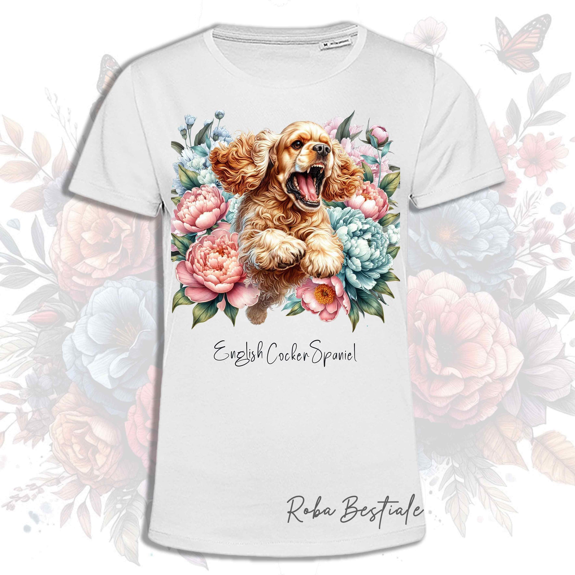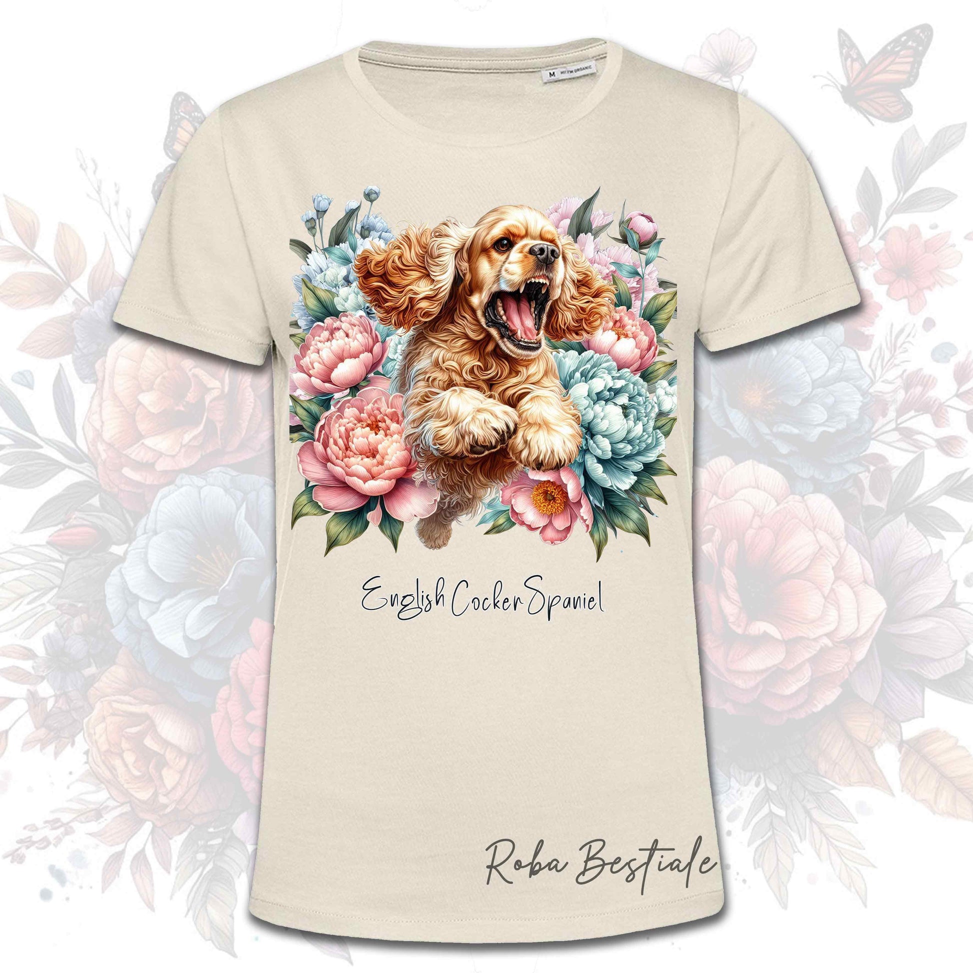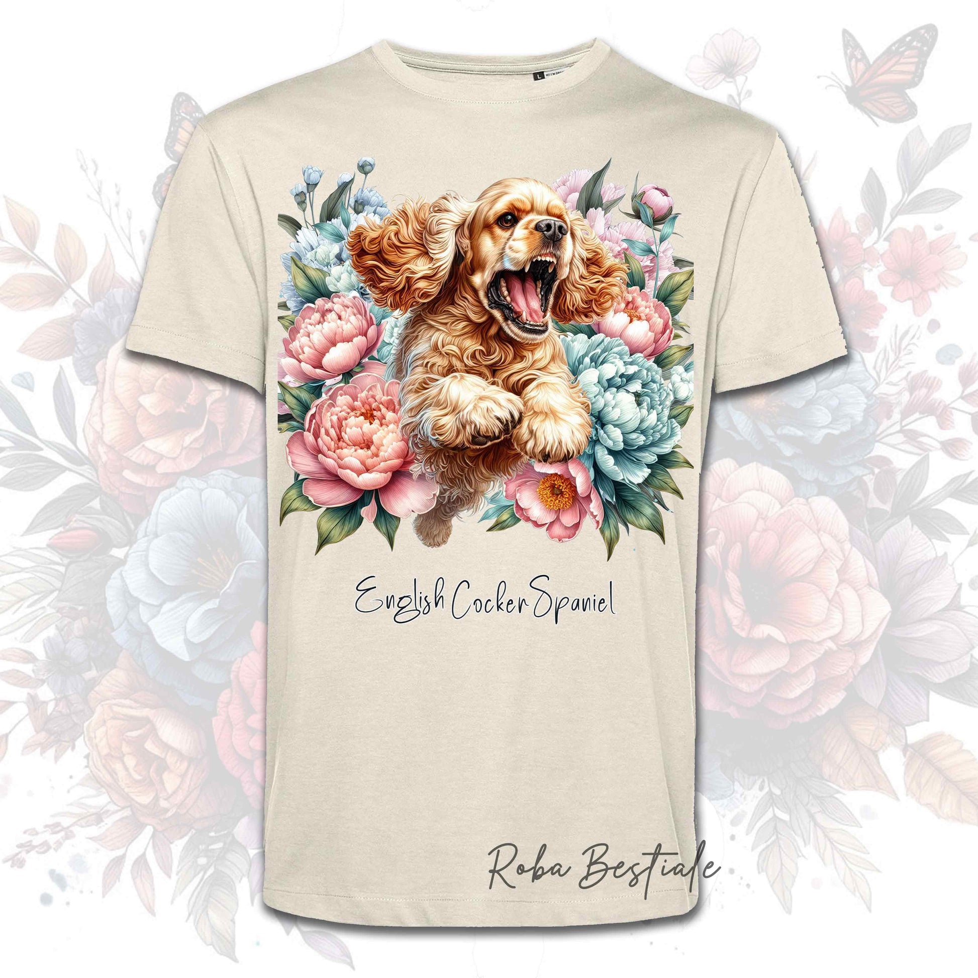PEONY T-Shirt - ENGLISH COCKER SPANIEL Gold - White or Beige, Men or Women, XS to 5XL