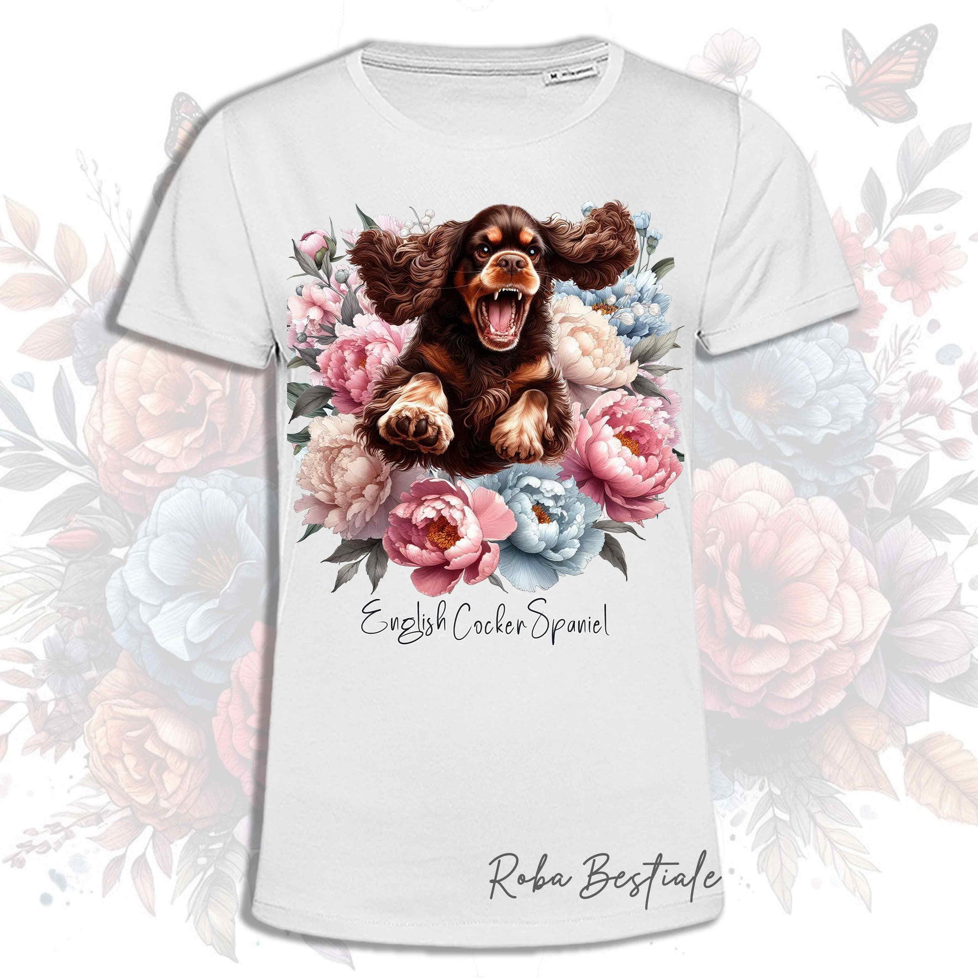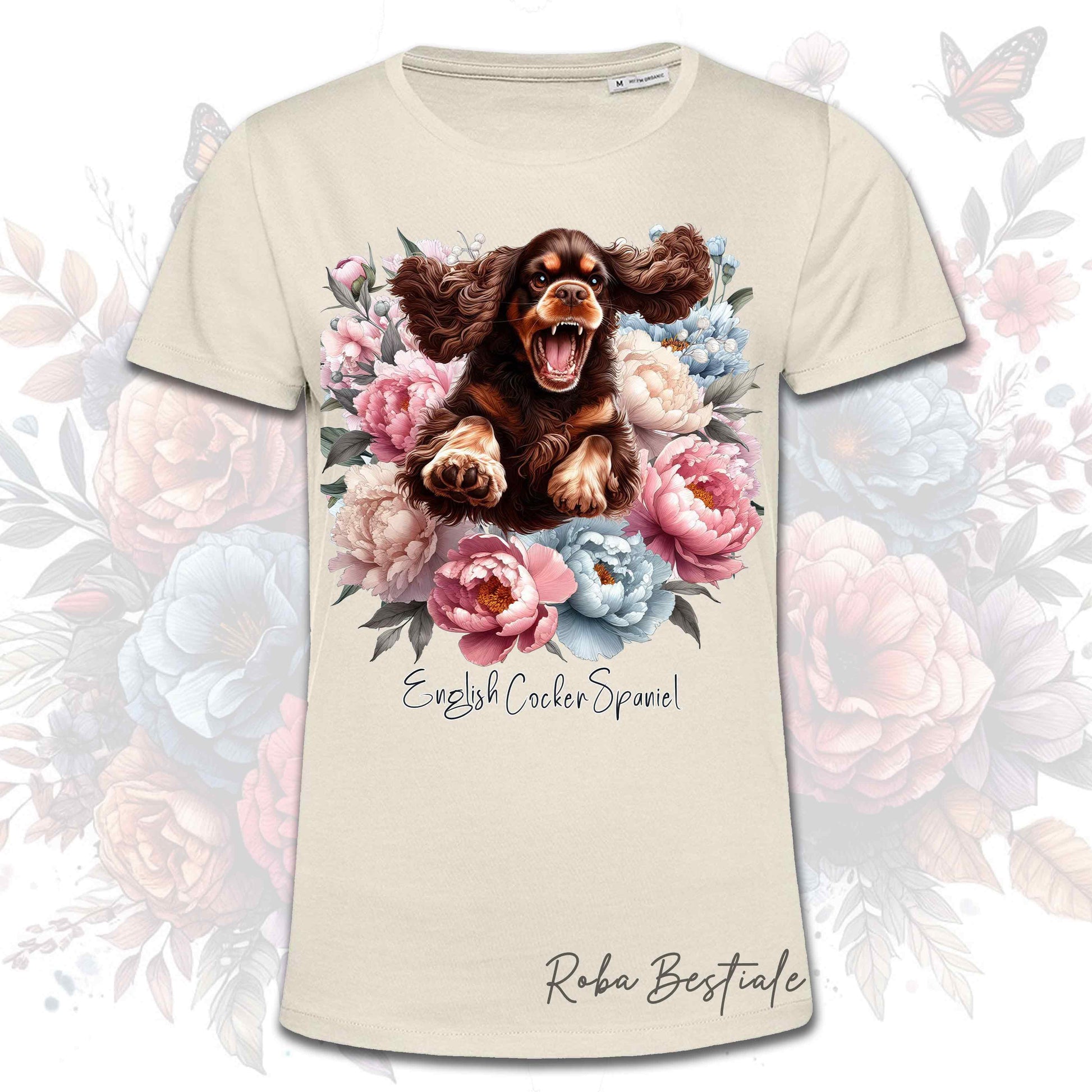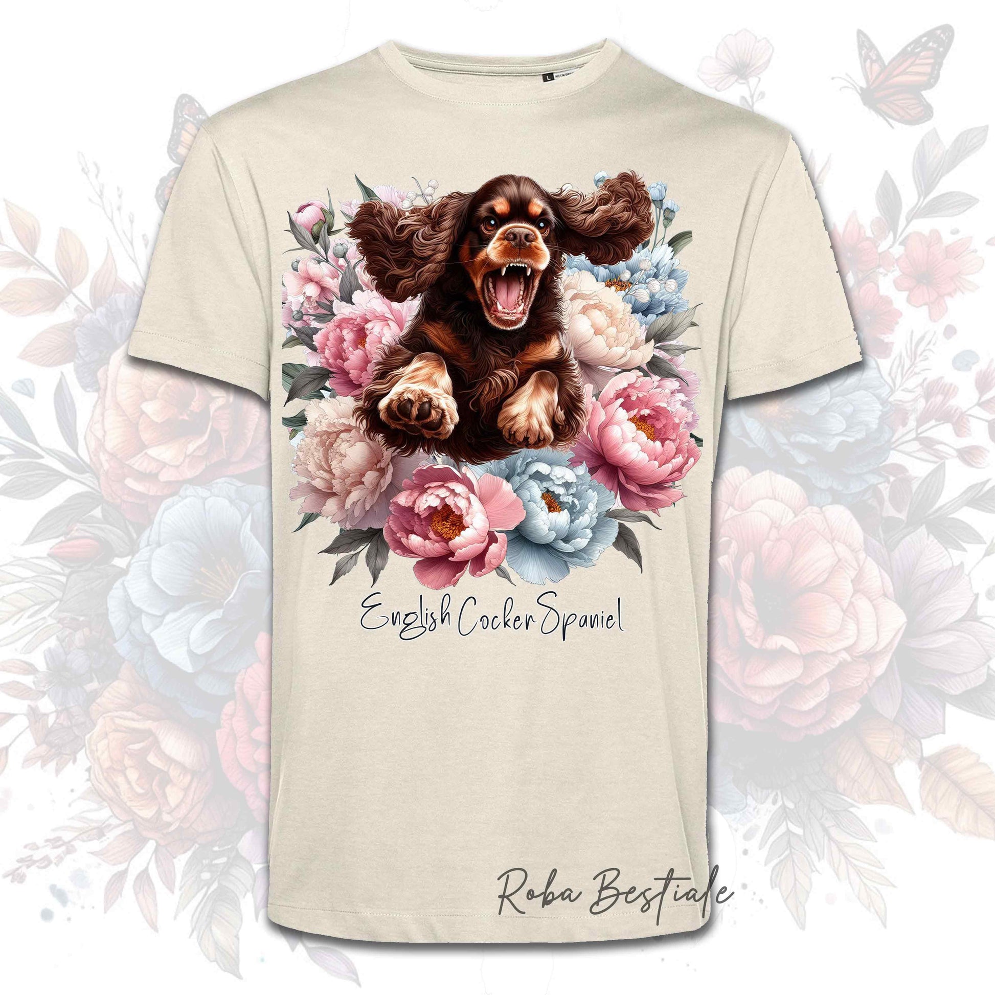 PEONY T-Shirt - ENGLISH COCKER SPANIEL Liver Tan - White or Beige, Men or Women, XS to 5XL