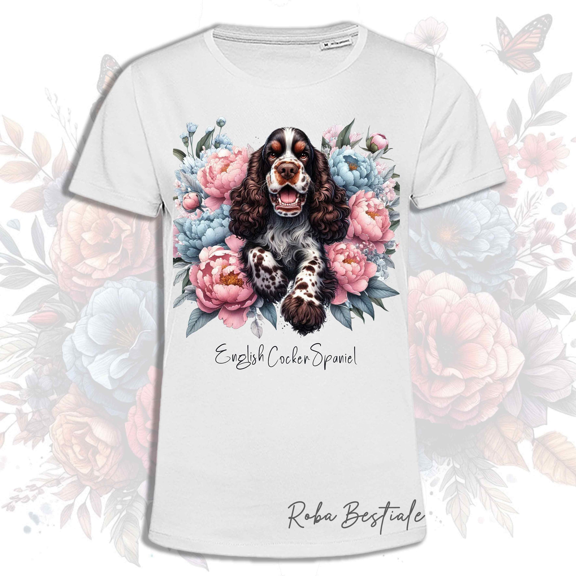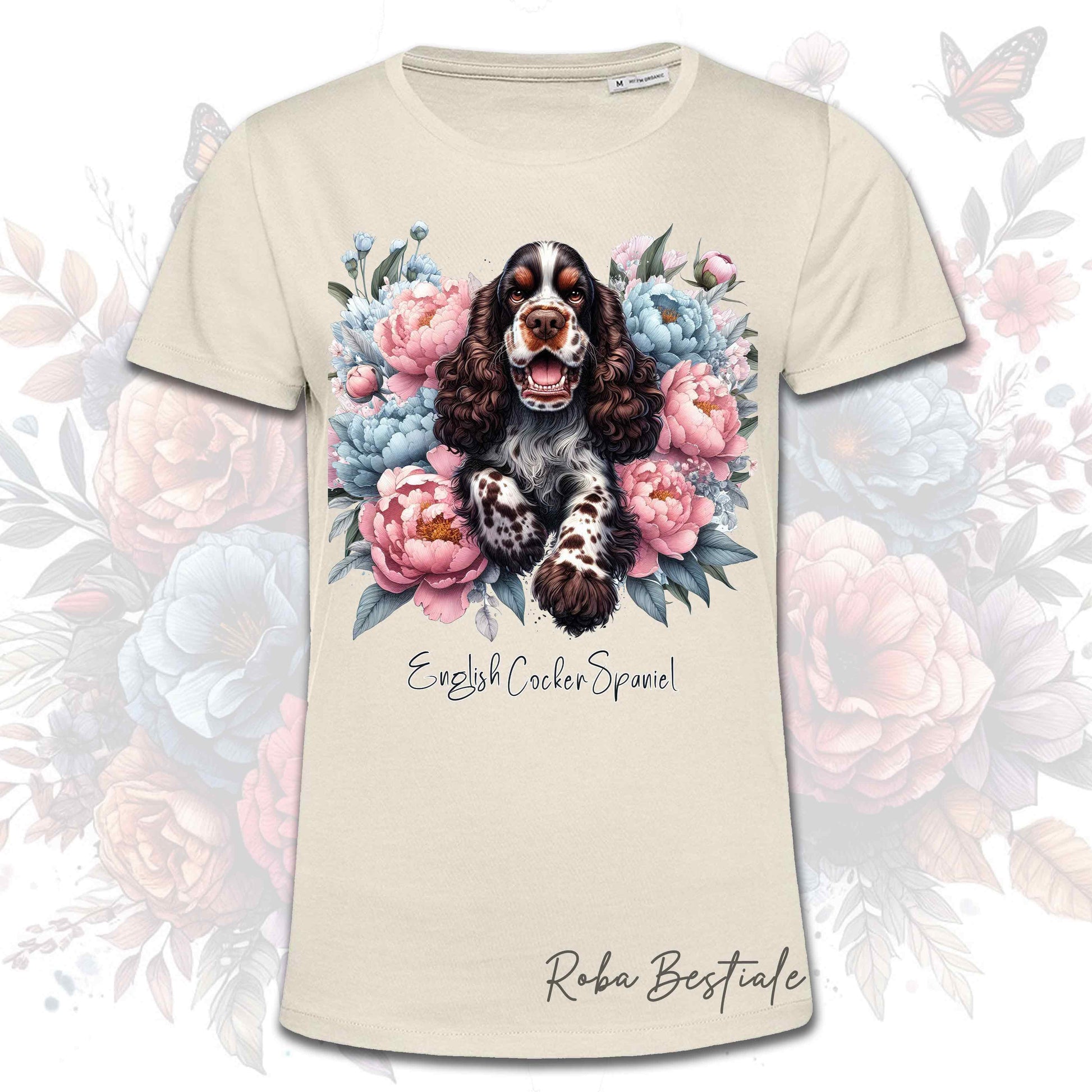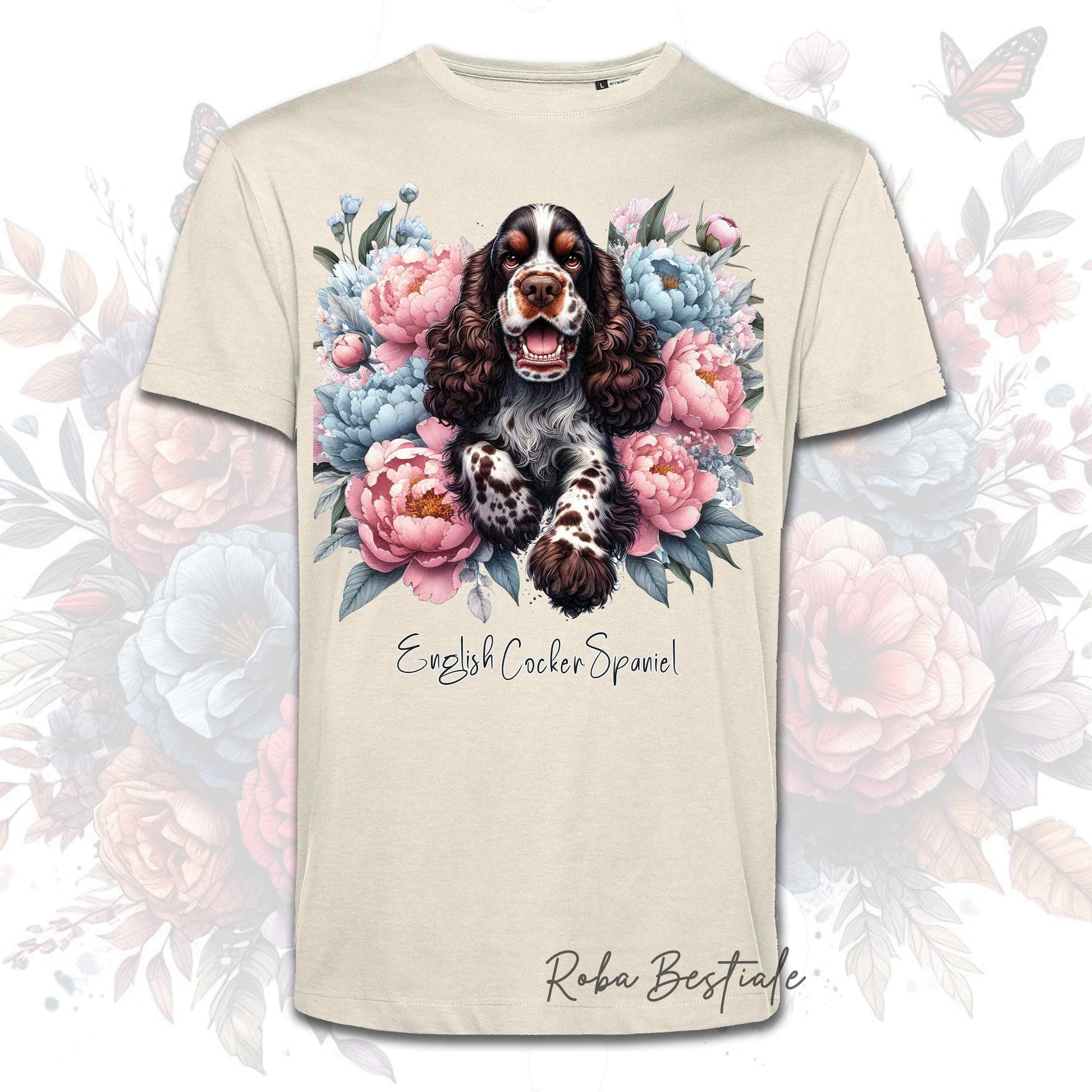 PEONY T-Shirt - ENGLISH COCKER SPANIEL Liver Roan Tan - White or Beige, Men or Women, XS to 5XL