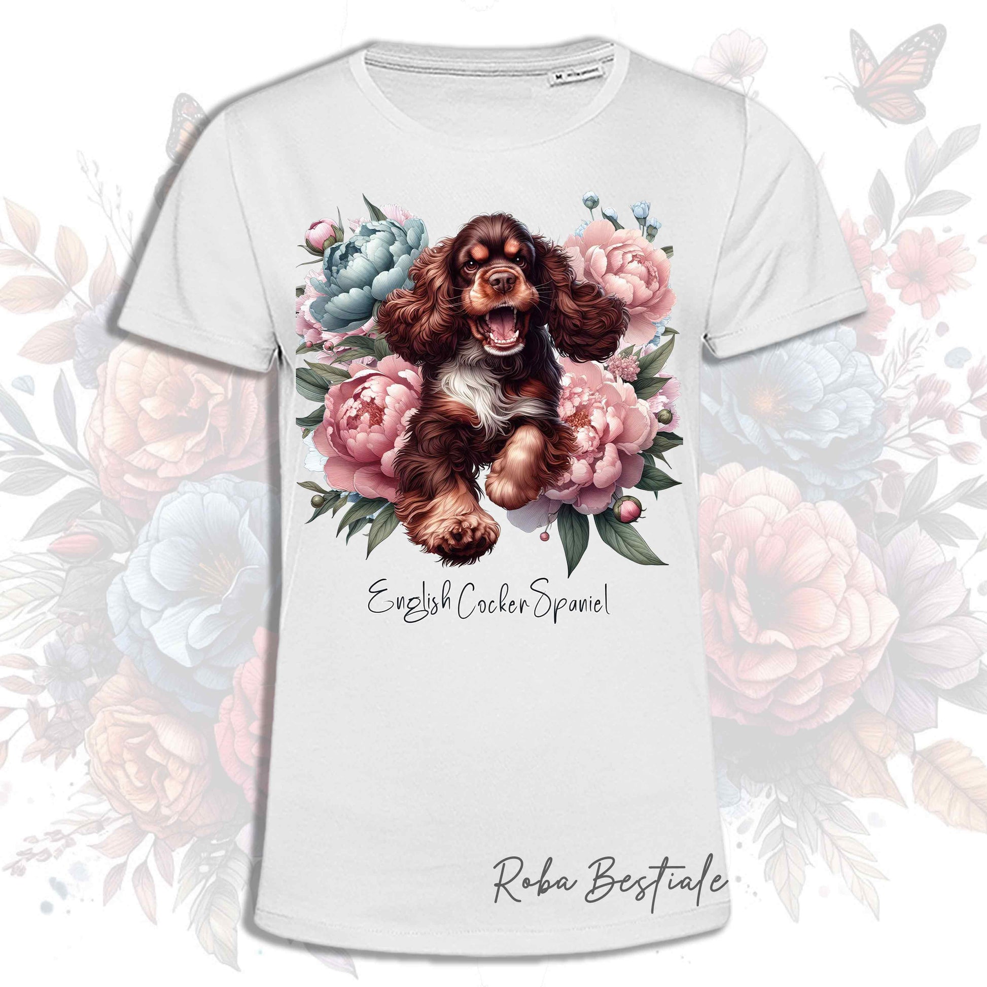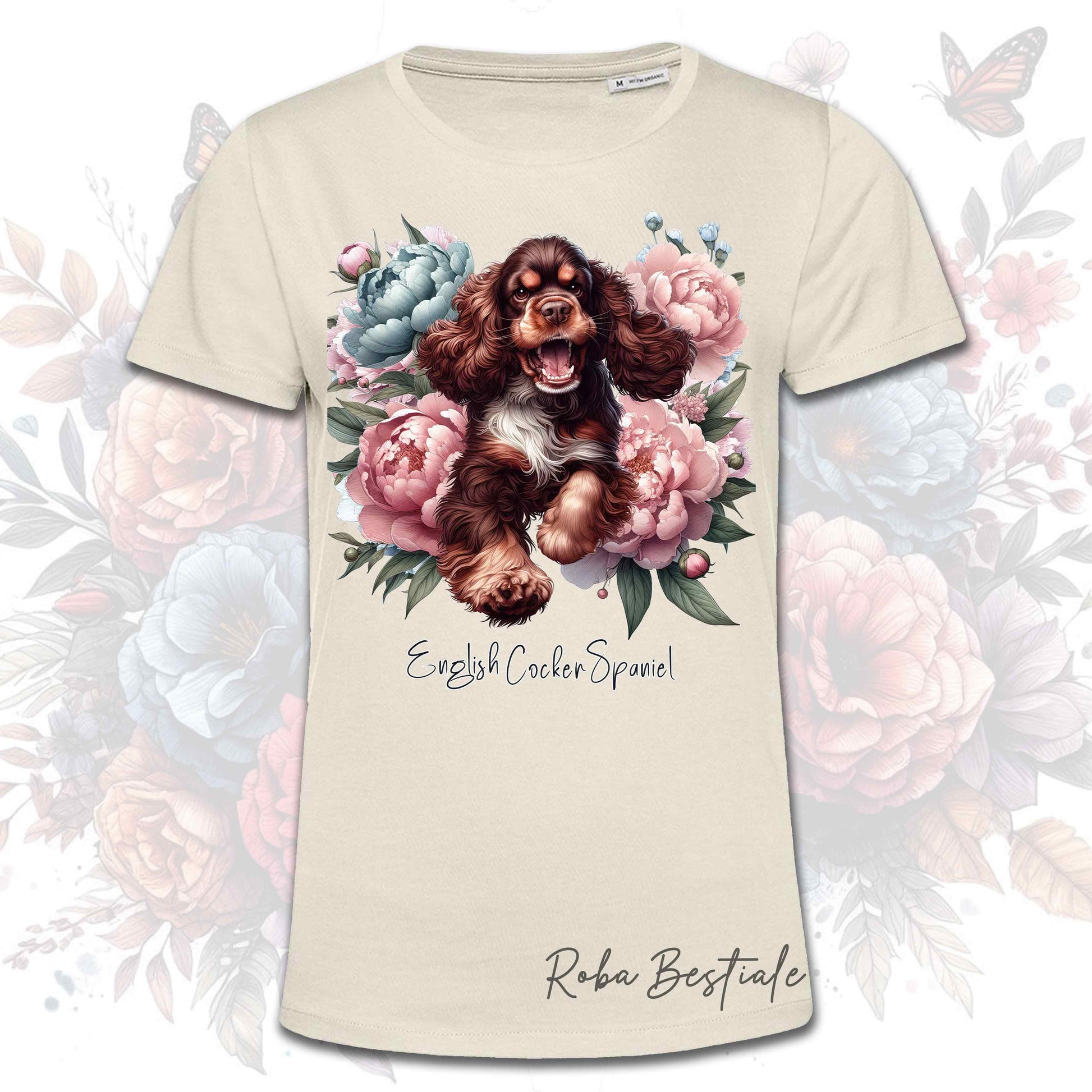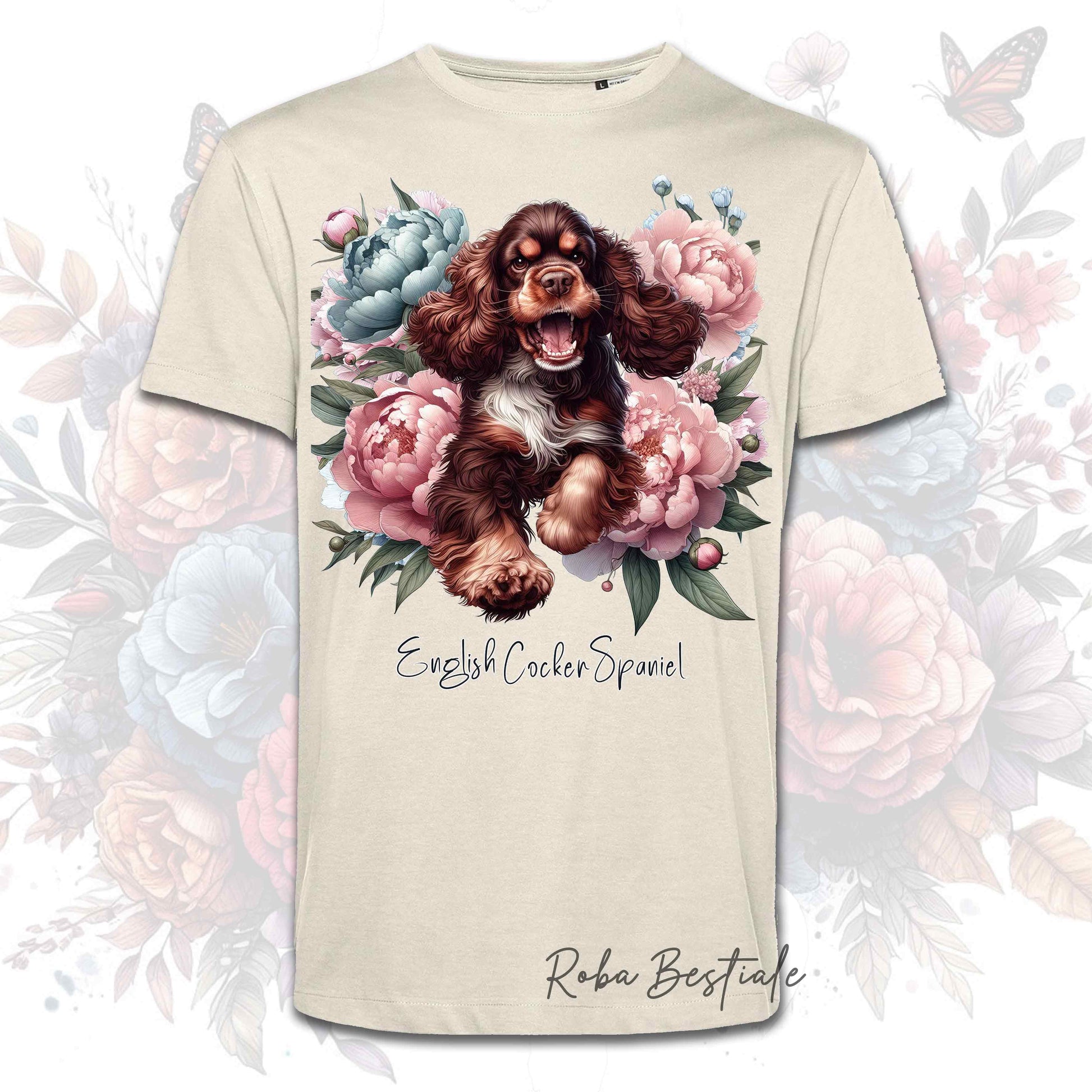 PEONY T-Shirt - ENGLISH COCKER SPANIEL Liver Tricolor - White or Beige, Men or Women, XS to 5XL