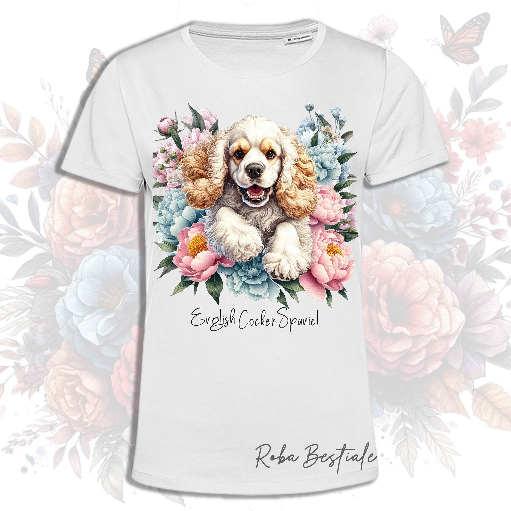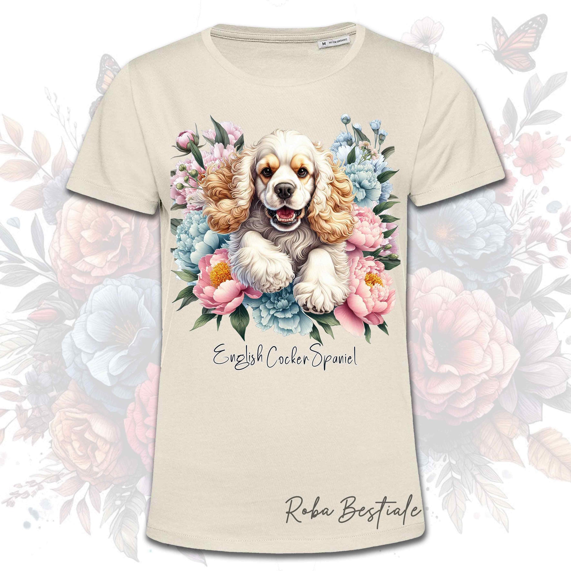 PEONY T-Shirt - ENGLISH COCKER SPANIEL Lemon and White - White or Beige, Men or Women, XS to 5XL