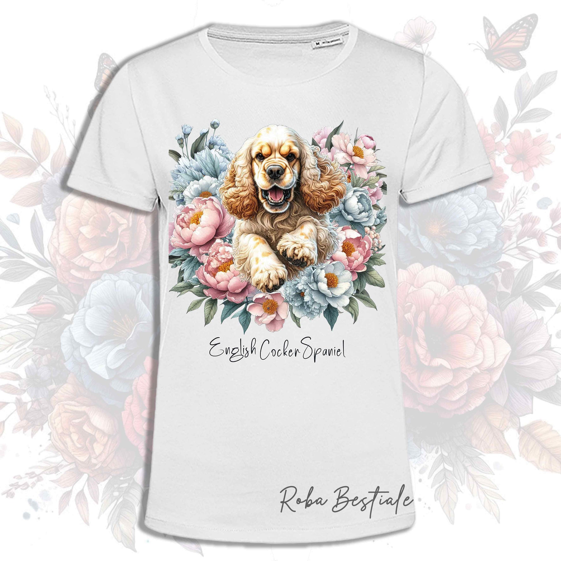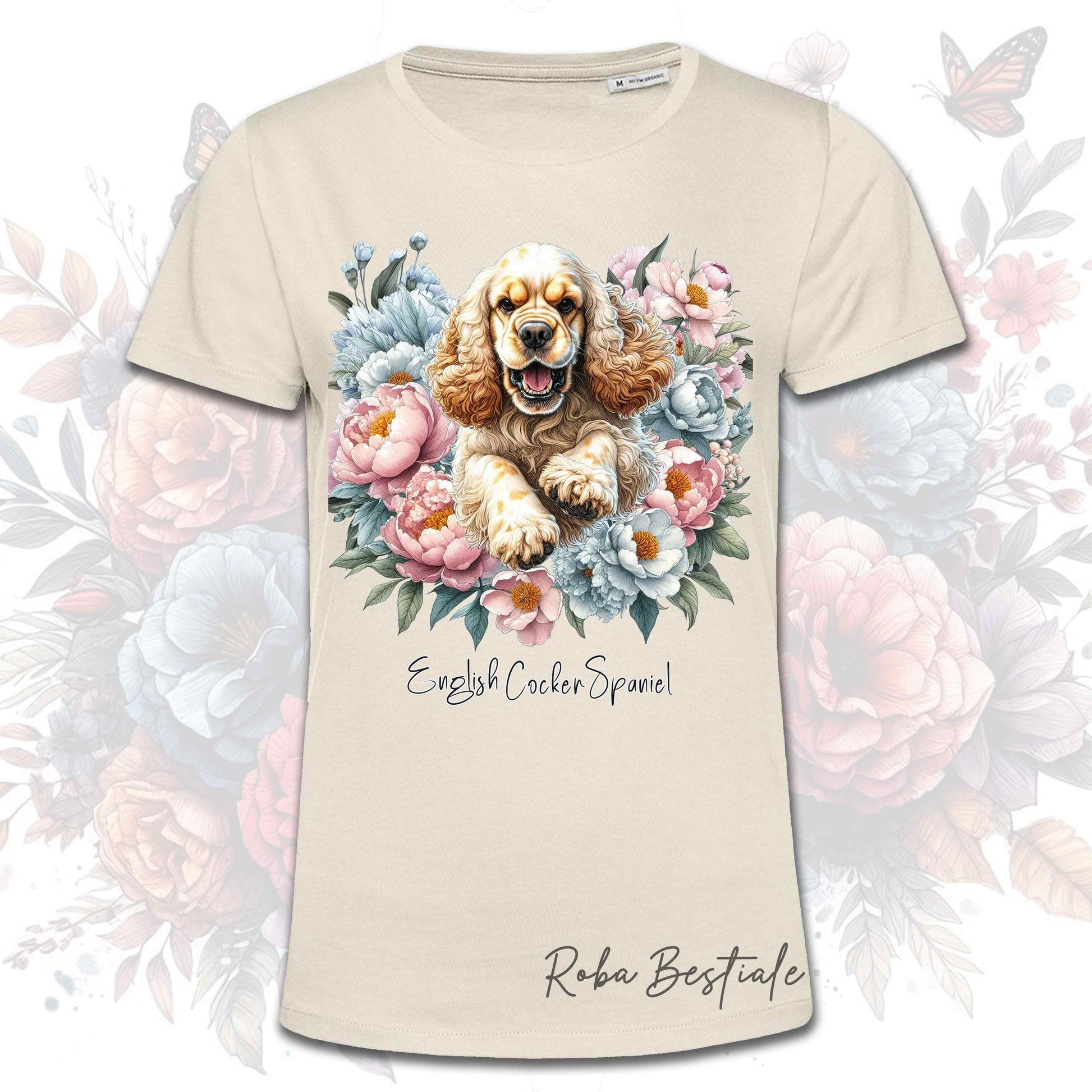 PEONY T-Shirt - ENGLISH COCKER SPANIEL Lemon Roan - White or Beige, Men or Women, XS to 5XL