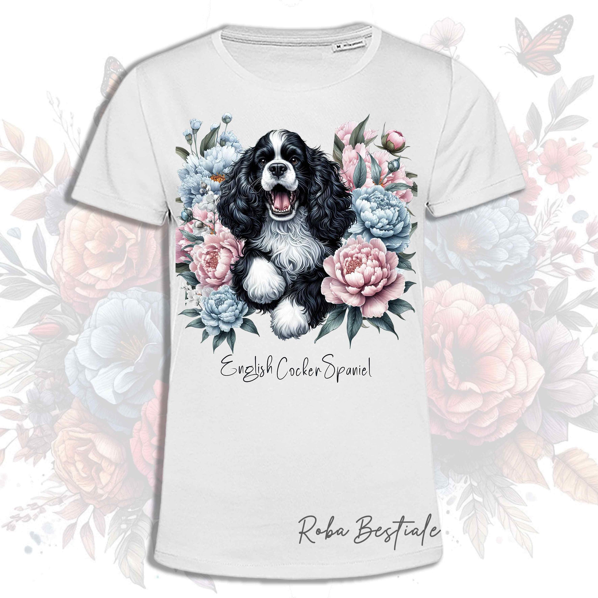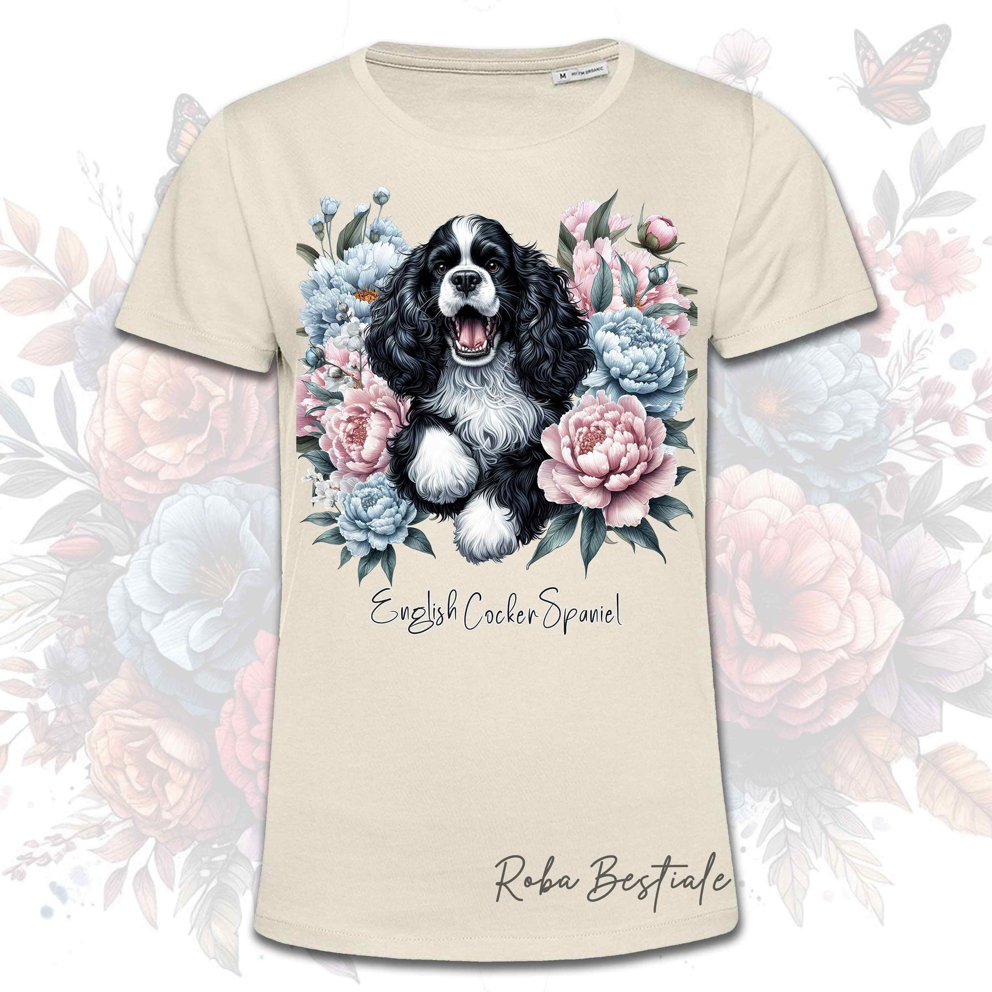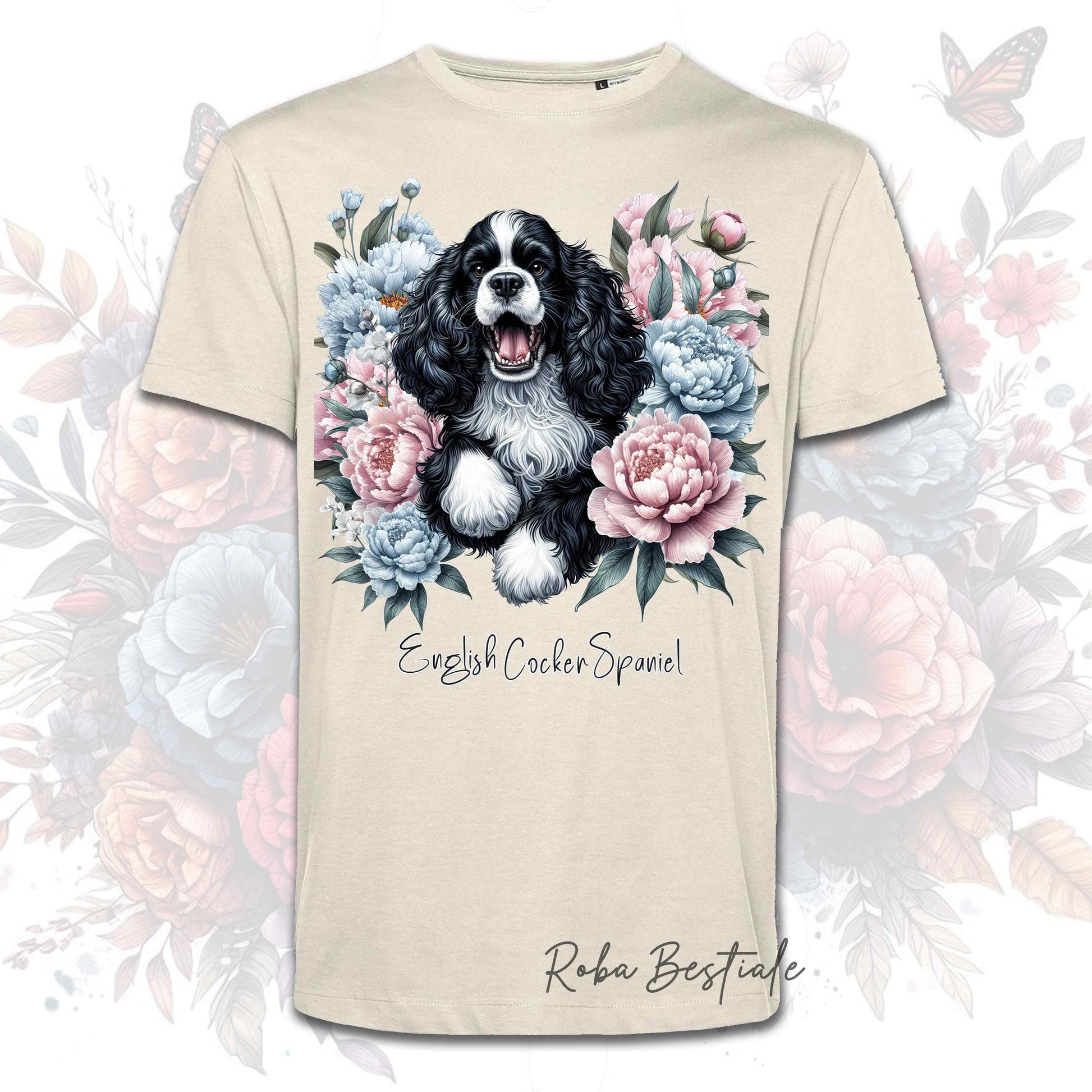 PEONY T-Shirt - ENGLISH COCKER SPANIEL Black and White - White or Beige, Men or Women, XS to 5XL
