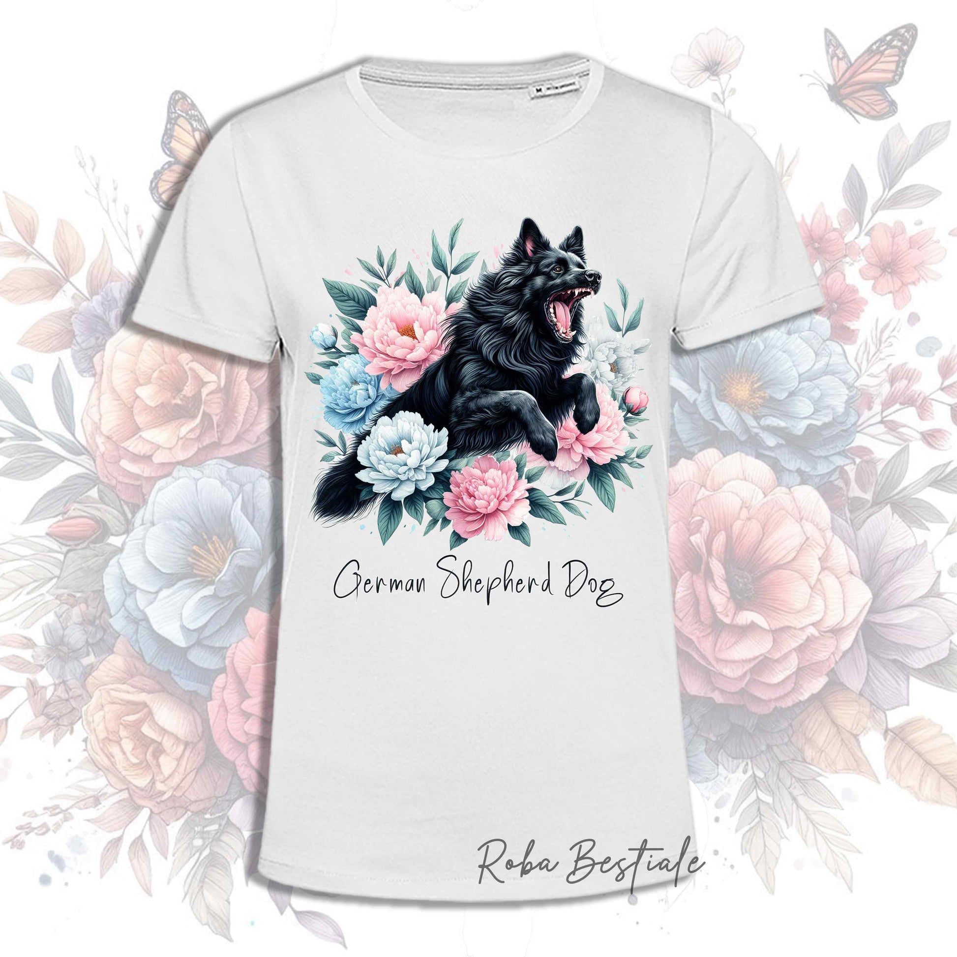 PEONY T-Shirt - Long-Haired GERMAN SHEPHERD, Black - White, Men or Women - XS to 5XL