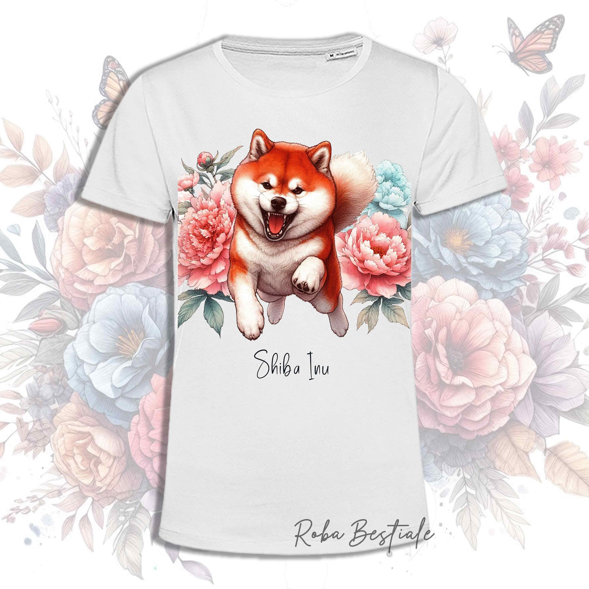 PEONY T-Shirt - Shiba Inu Red - White, Men or Women - XS to 5XL