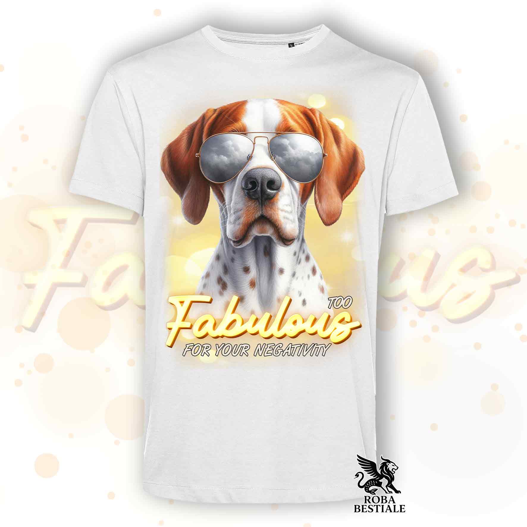 T-Shirt TOO FABULOUS - POINTER INGLESE Bianco e Arancio - 100% Cotone, Bianca o Beige, Uomo o Donna - dalla XS alla 5XL