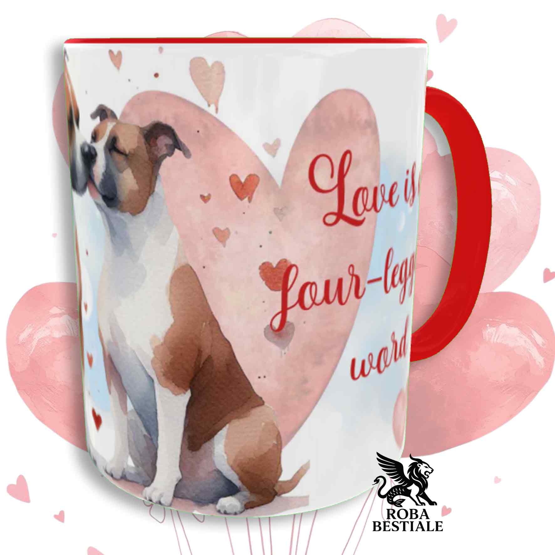 Tazza LOVE ME - AMERICAN STAFFORDSHIRE TERRIER Bianco e Rosso - In Ceramica, con dettagli Rossi - 330 ml