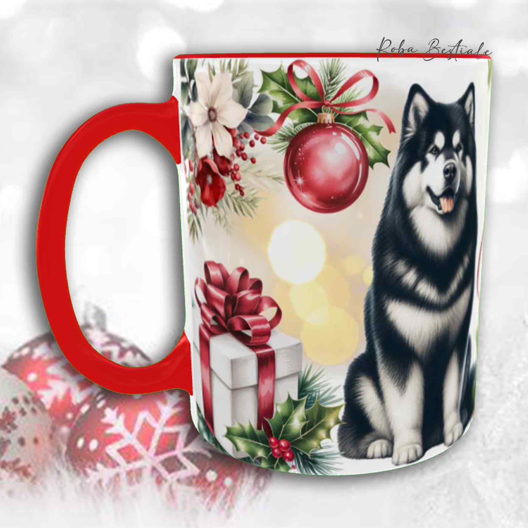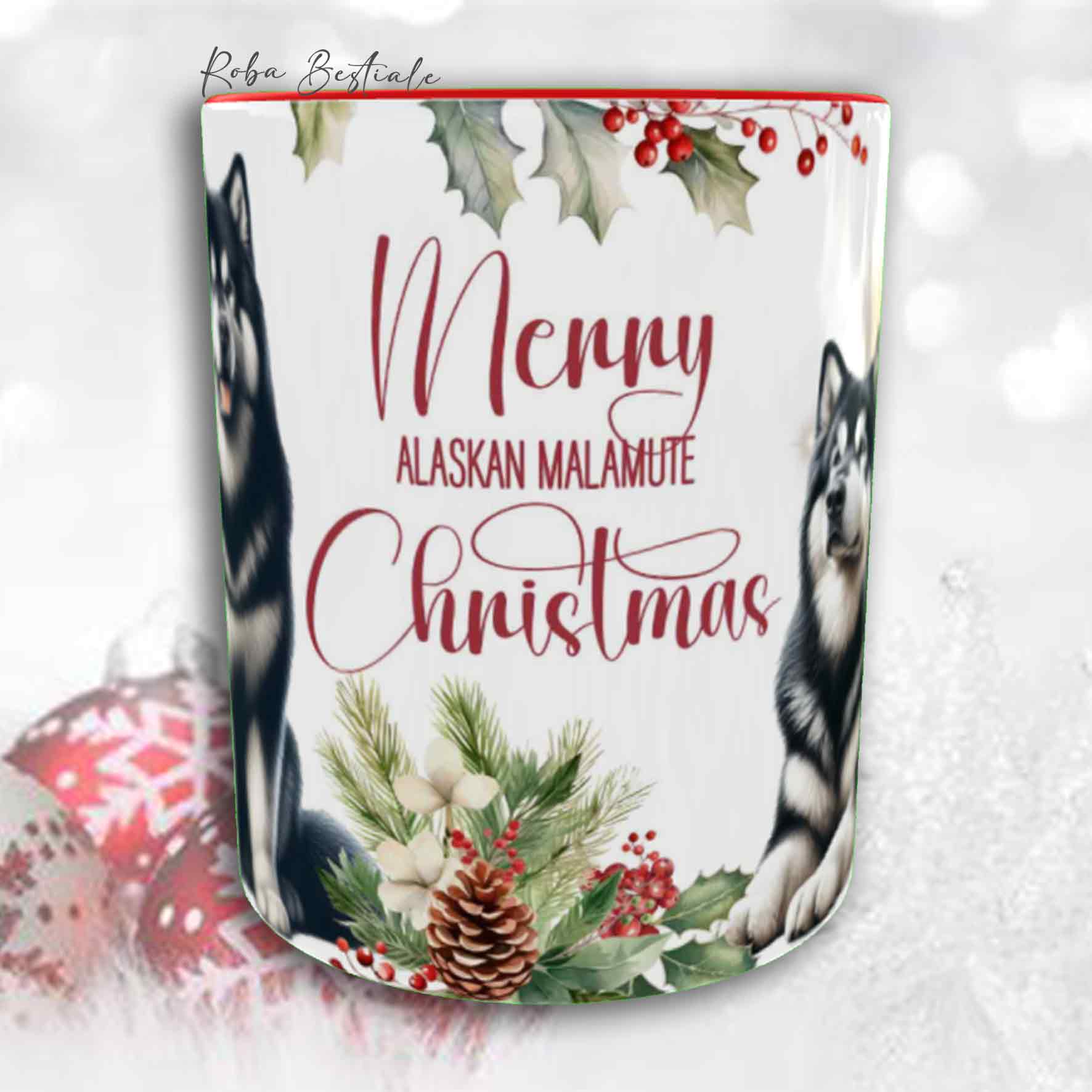 Tazza VINTAGE WINTER - ALASKAN MALAMUTE Nero - In Ceramica, con dettagli Rossi - 330 ml