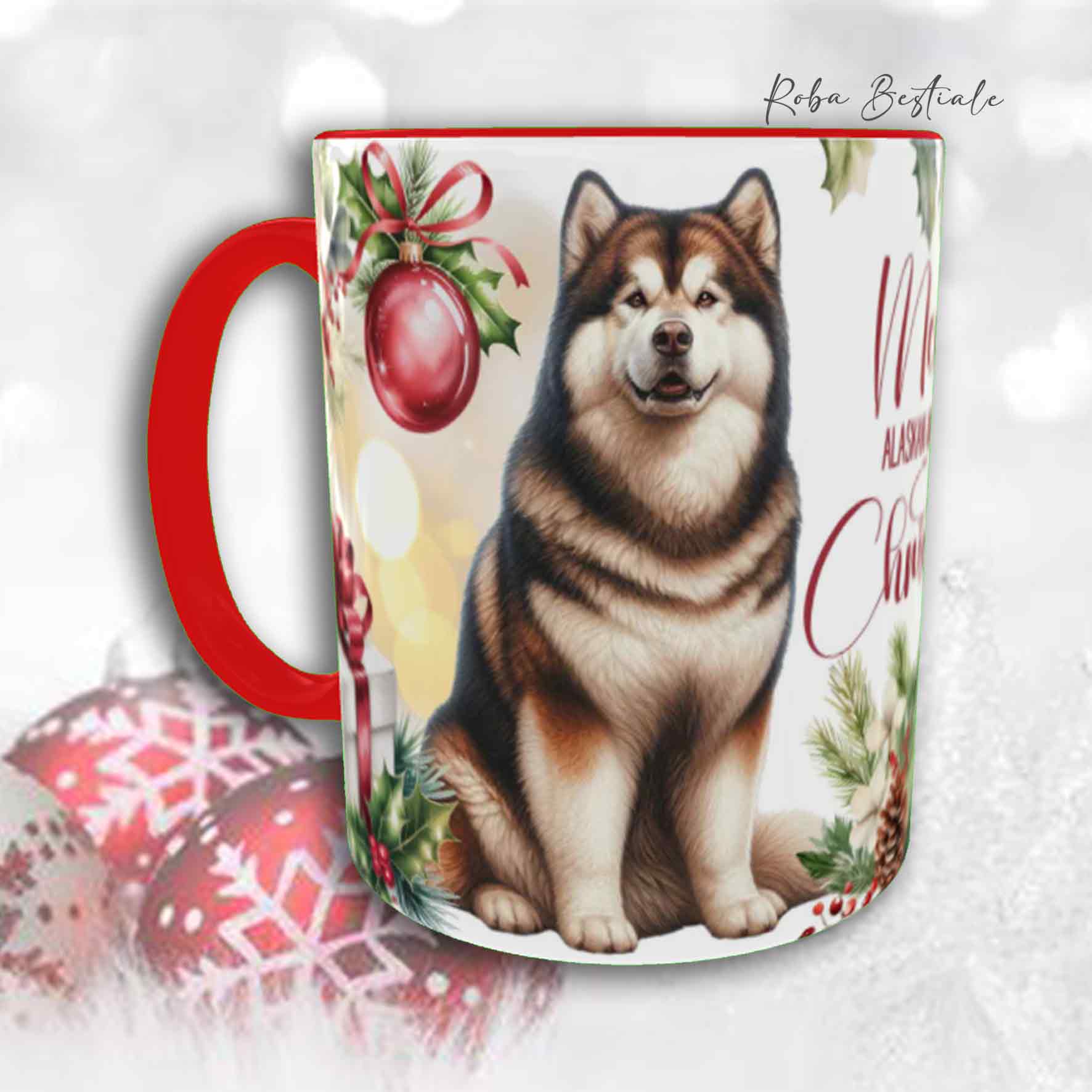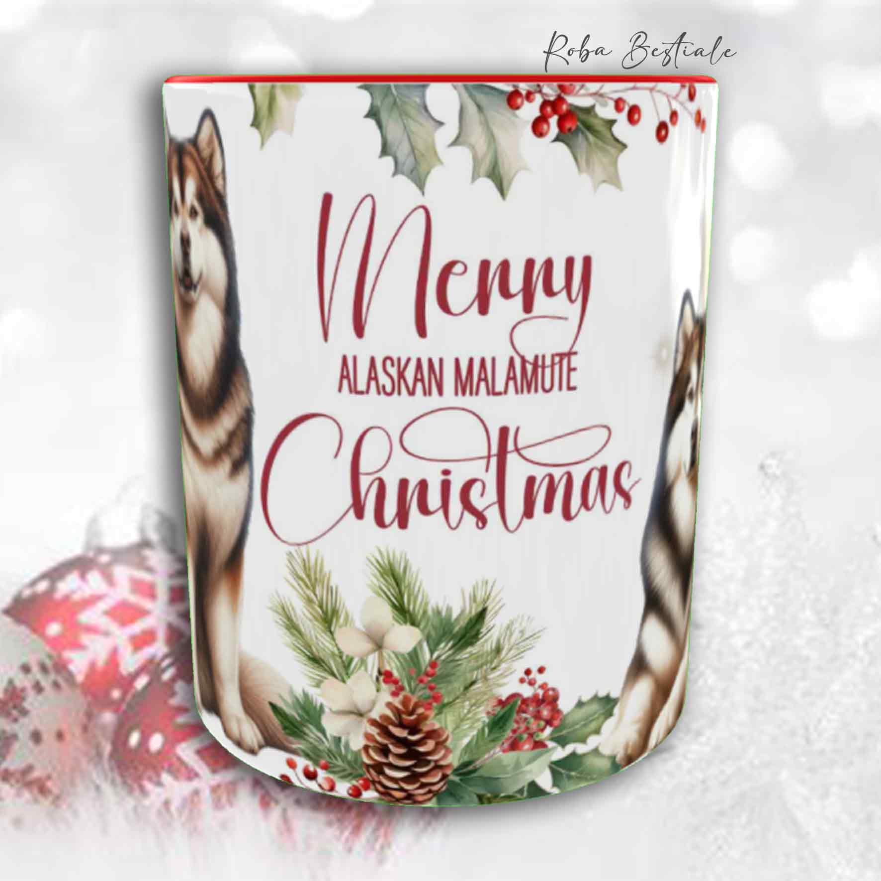 Tazza VINTAGE WINTER - ALASKAN MALAMUTE Zibellino - In Ceramica, con dettagli Rossi - 330 ml