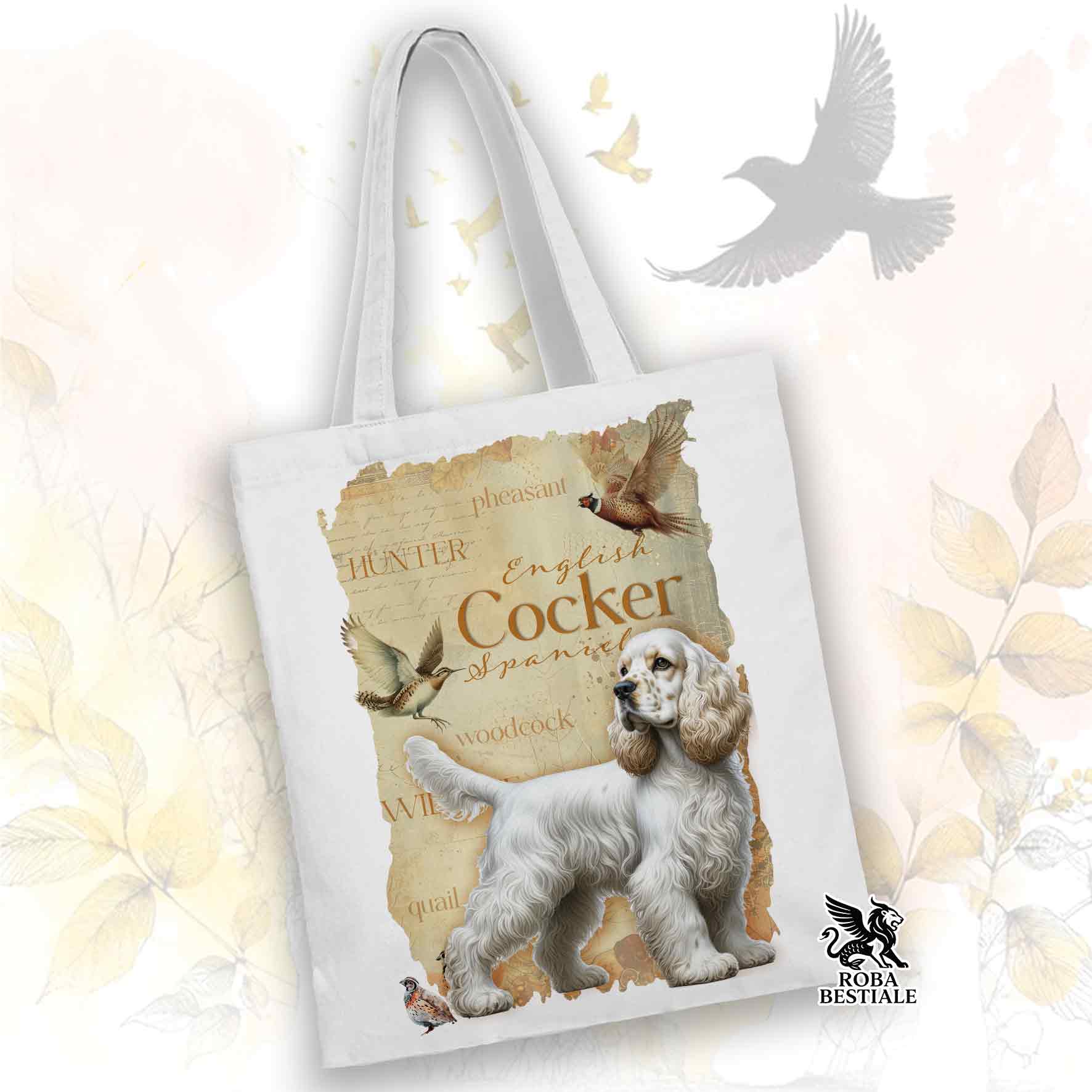 Tote Bag FIELD LEGACY - COCKER SPANIEL INGLESE Limone Roano - 100% Cotone - Bianca o Beige