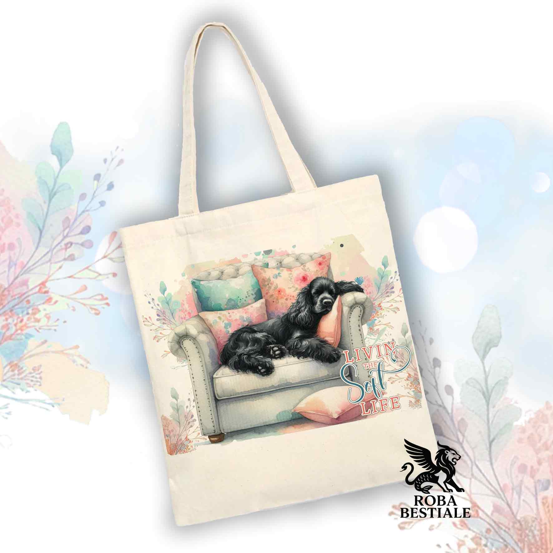 Tote Bag SOFT LIFE - COCKER SPANIEL INGLESE Nero - 100% Cotone - Bianca o Beige