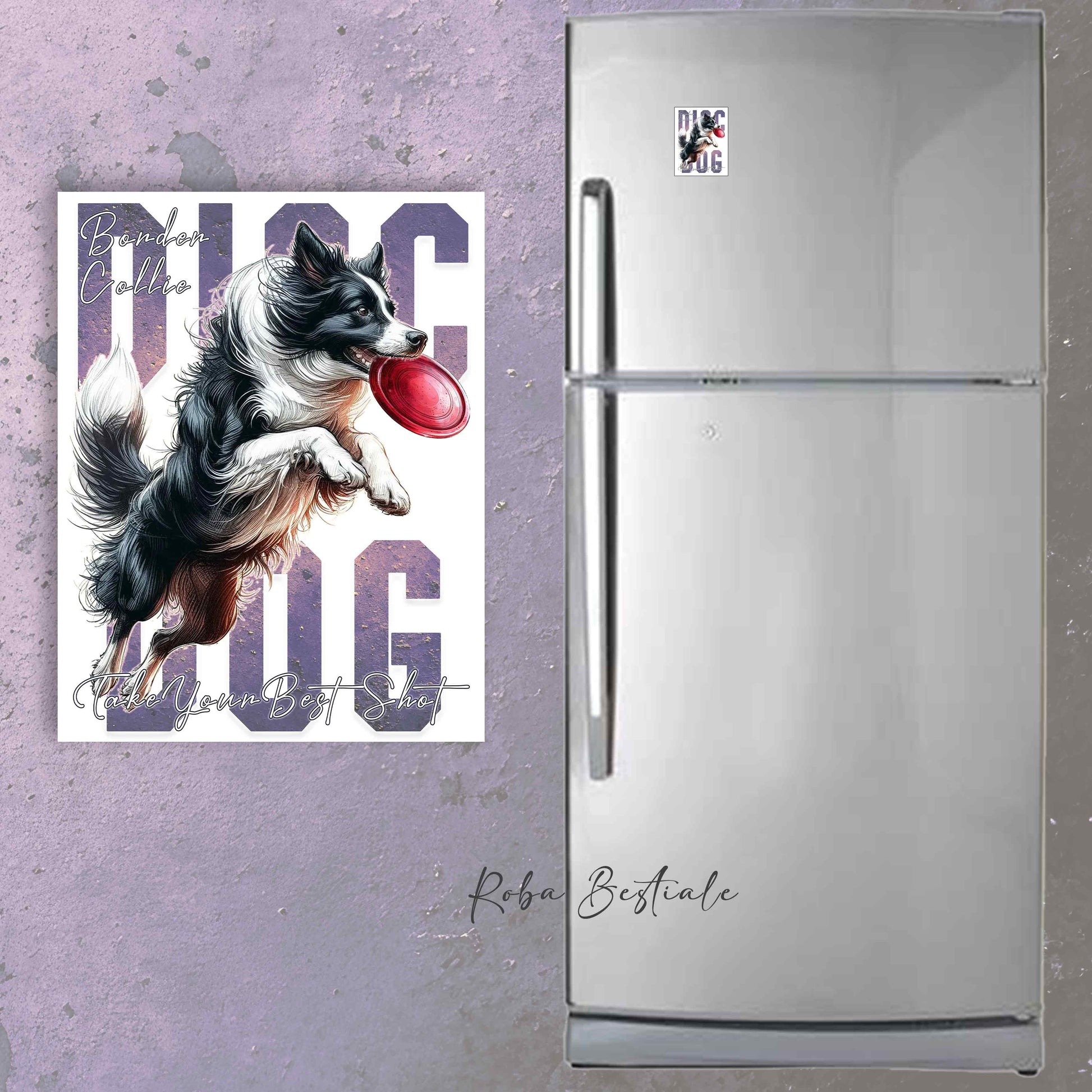 Calamita APTITUDE - DISC DOG - BORDER COLLIE Bianco e Nero - in MDF - 7x5 cm