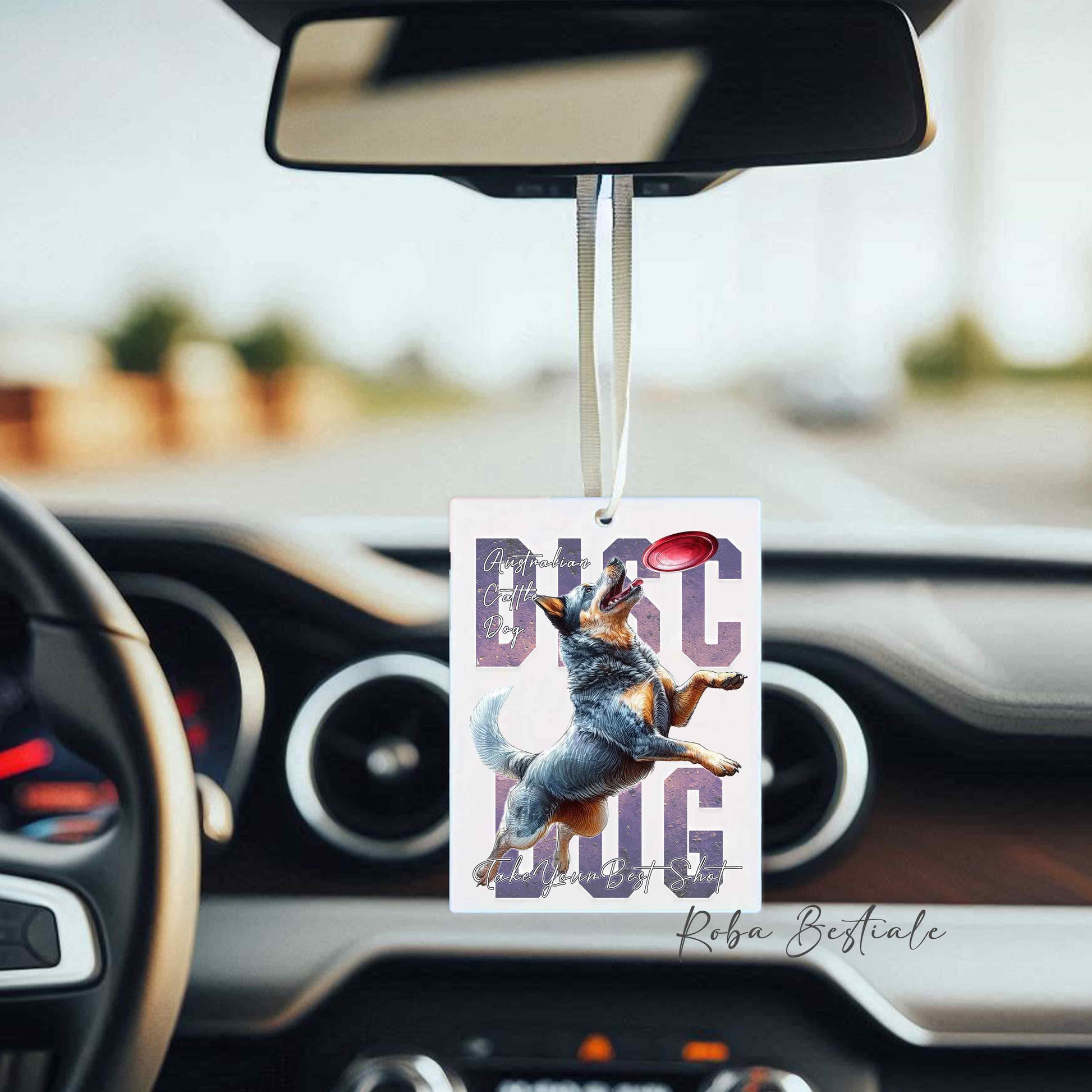 Deodorante Auto APTITUDE - DISC DOG - AUSTRALIAN CATTLE DOG Blue - In Feltro, con cordino - 7,5 x 10 cm