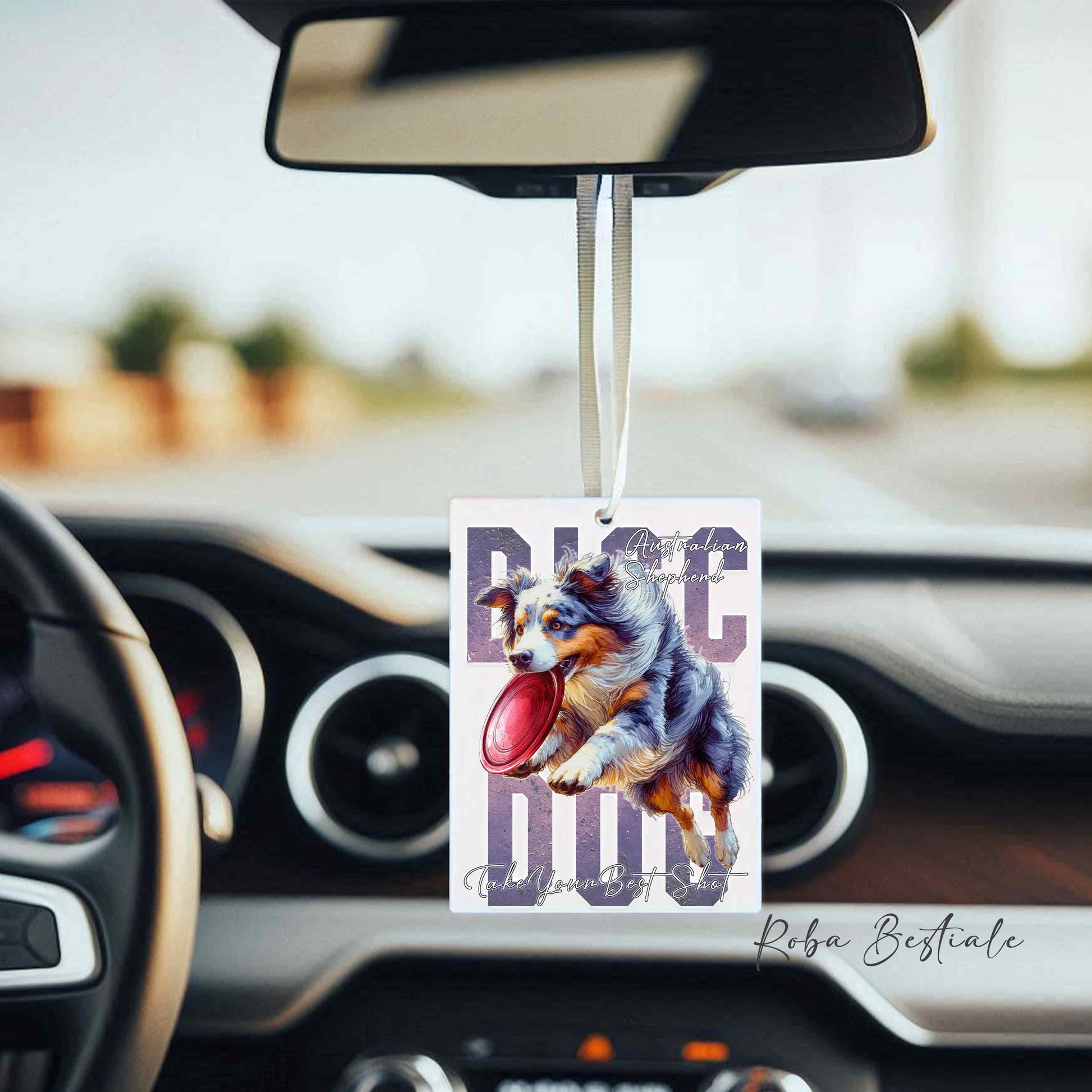 Deodorante Auto APTITUDE - DISC DOG - AUSTRALIAN SHEPHERD Blue Merle - In Feltro, con cordino - 7,5 x 10 cm