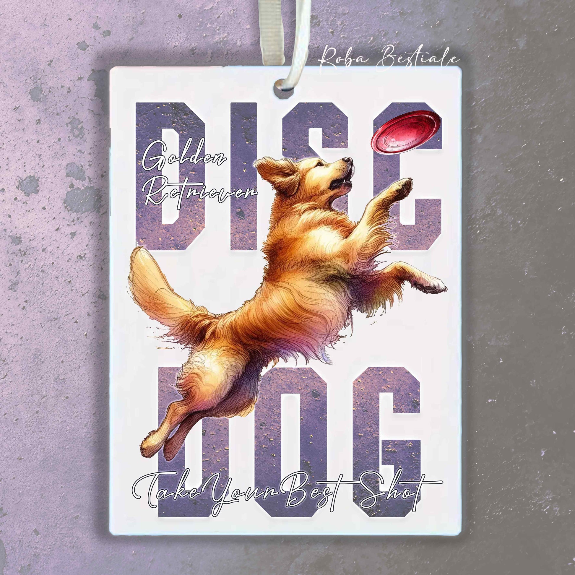 Deodorante Auto APTITUDE - DISC DOG - GOLDEN RETRIEVER - In Feltro, con cordino - 7,5 x 10 cm