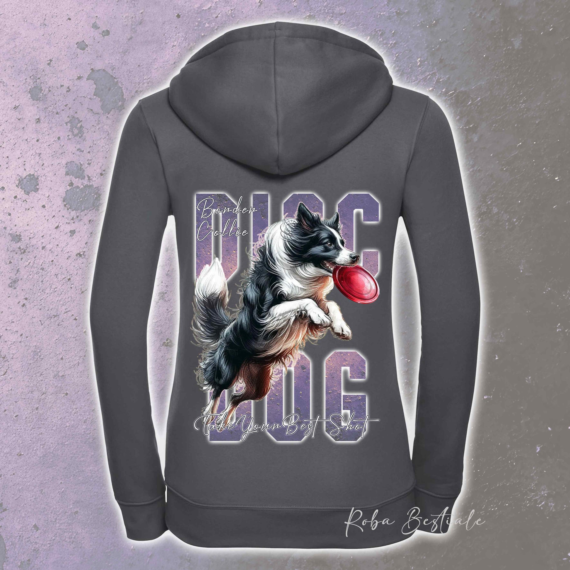 Felpa APTITUDE - DISC DOG - BORDER COLLIE Bianco e Nero - Con Cappuccio e Full Zip, Uomo o Donna, in tanti colori - dalla XS alla 5XL