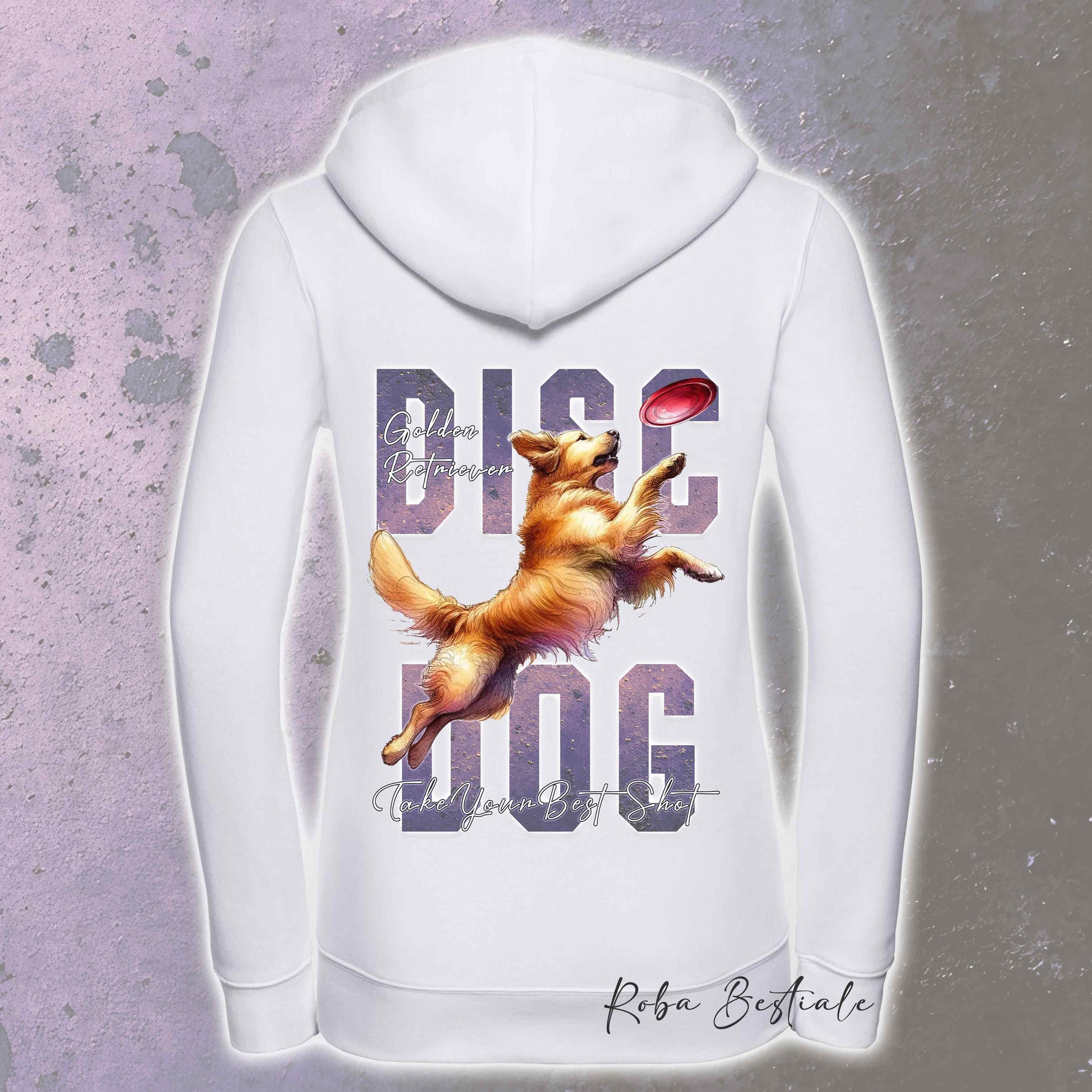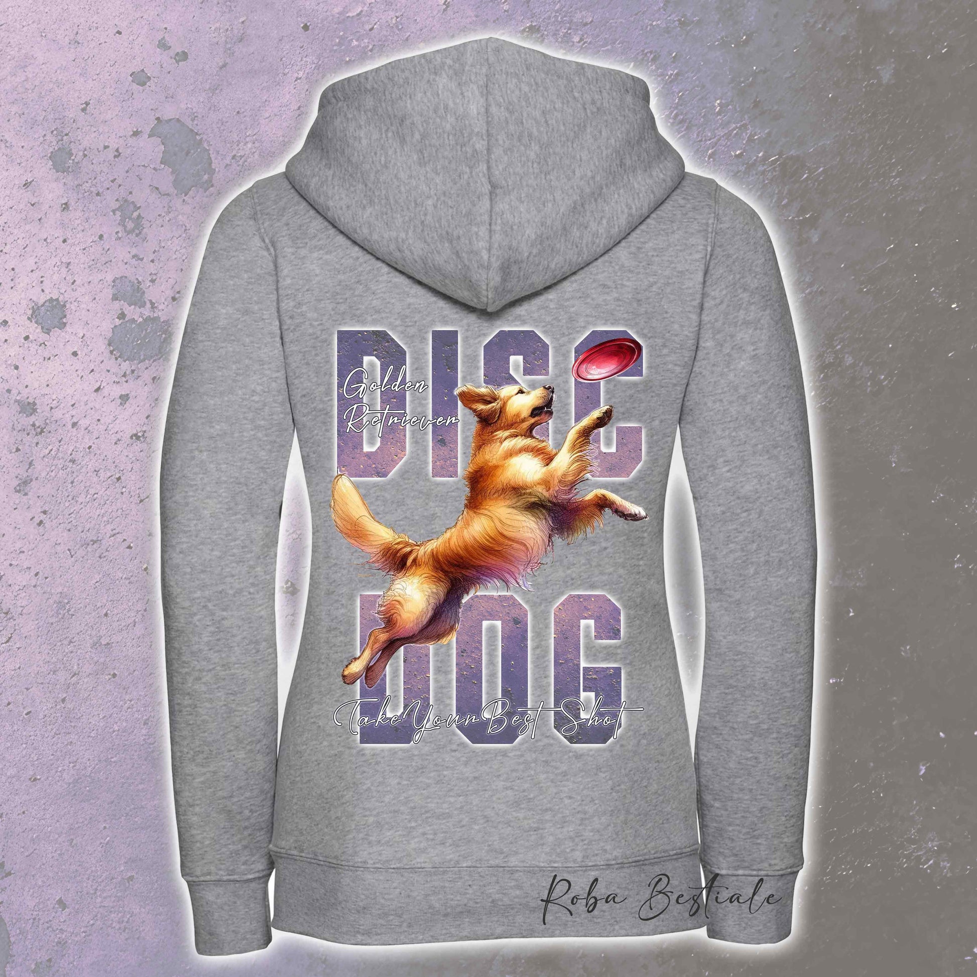 Felpa APTITUDE - DISC DOG - GOLDEN RETRIEVER - Con Cappuccio e Full Zip, Uomo o Donna, in tanti colori - dalla XS alla 5XL