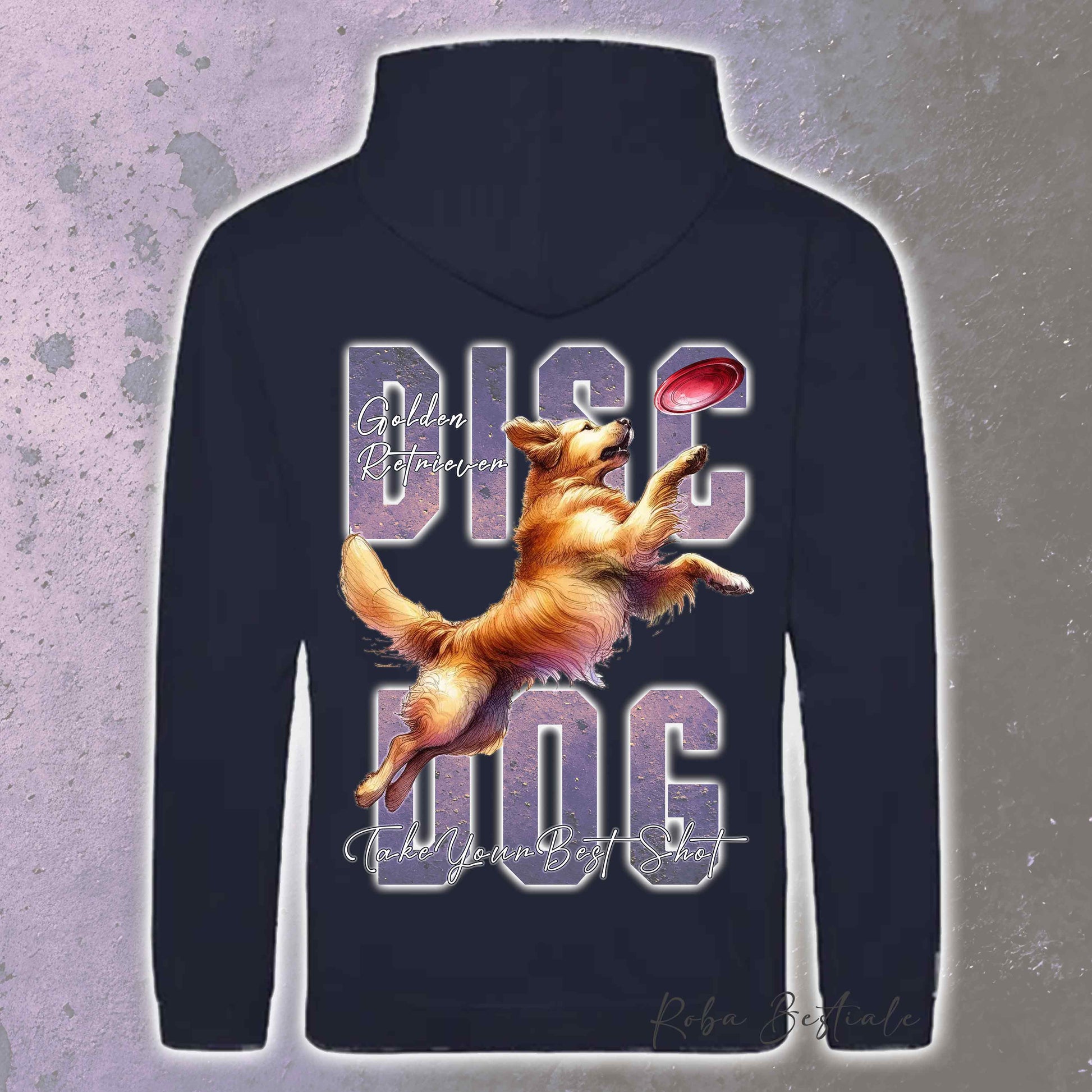 Felpa APTITUDE - DISC DOG - GOLDEN RETRIEVER - Con Cappuccio e Tasconi, Unisex, in tanti colori - dalla XS alla 5XL