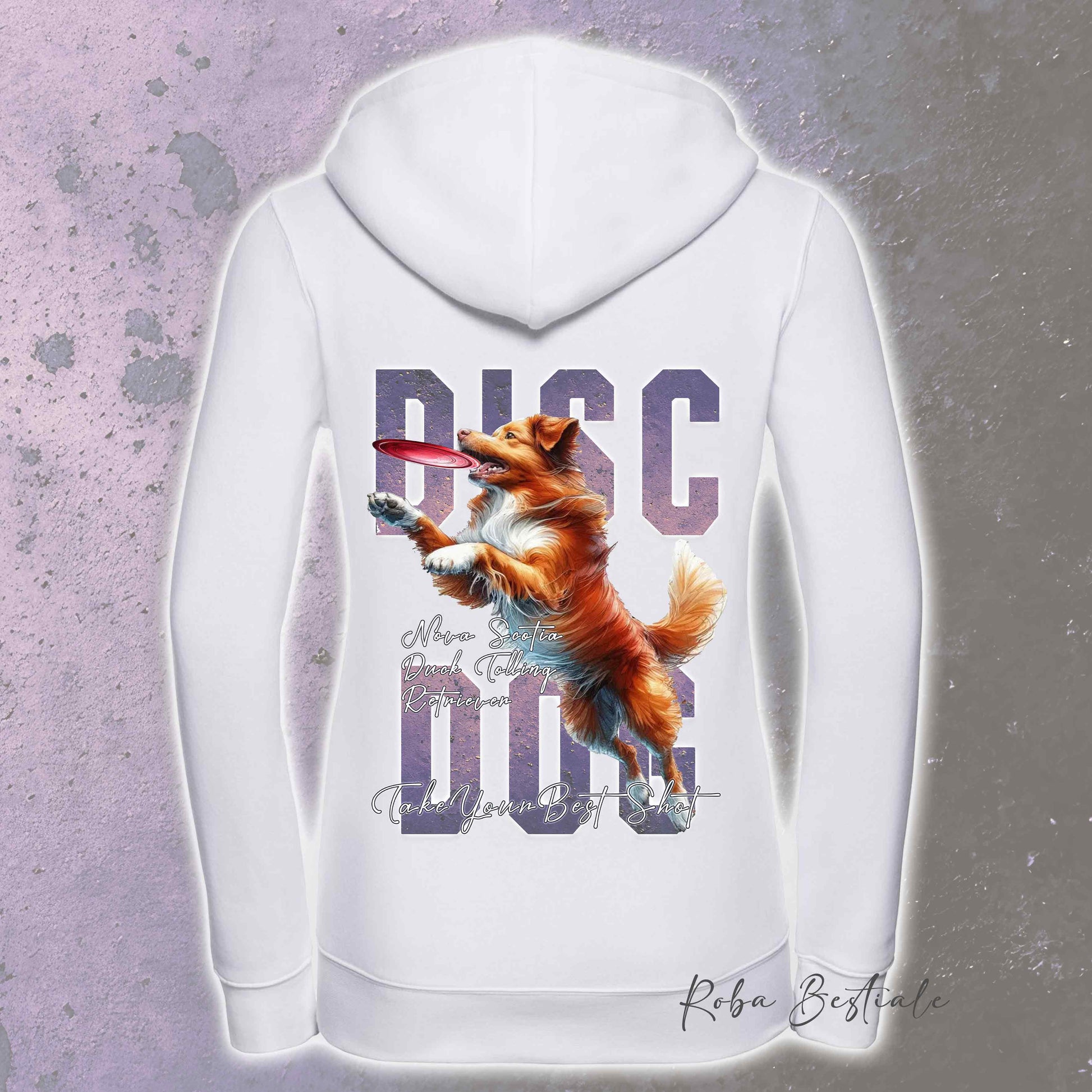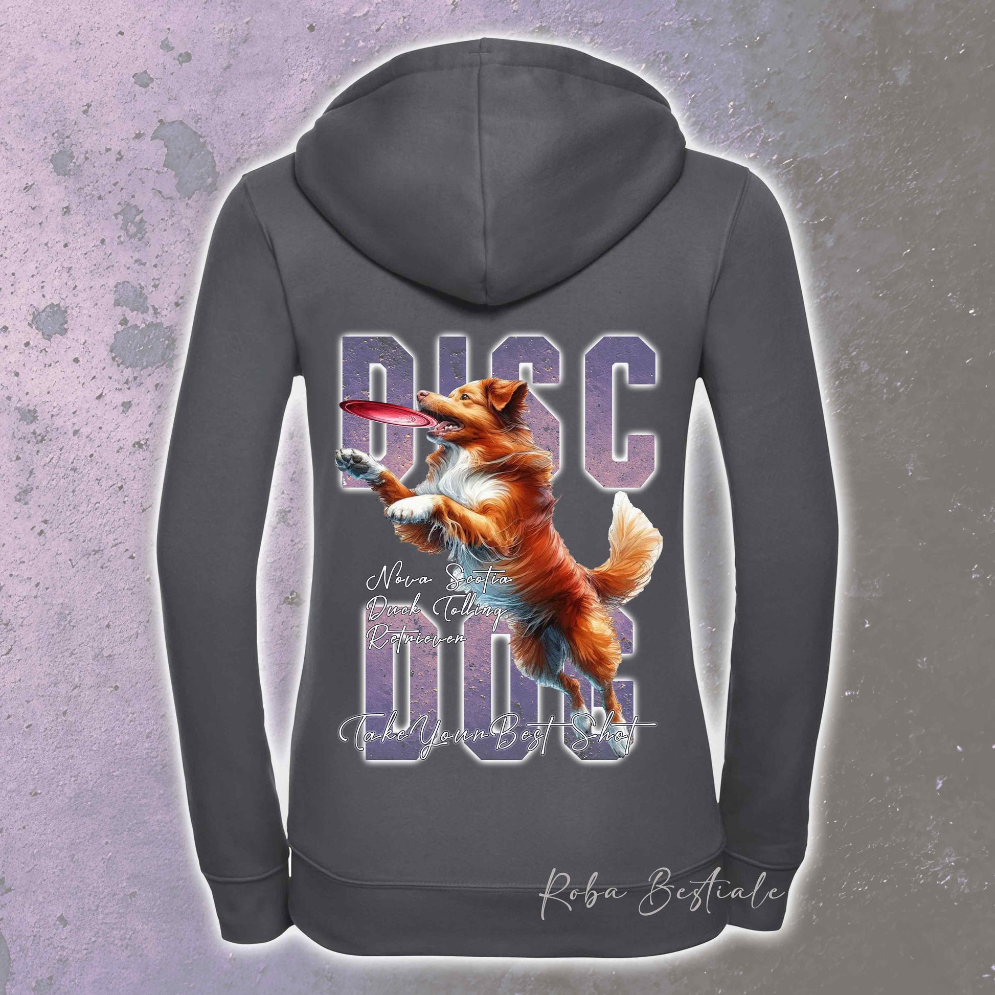 Felpa APTITUDE - DISC DOG - NOVA SCOTIA DUCK TOLLING RETRIEVER - Con Cappuccio e Full Zip, Uomo o Donna, in tanti colori - dalla XS alla 5XL