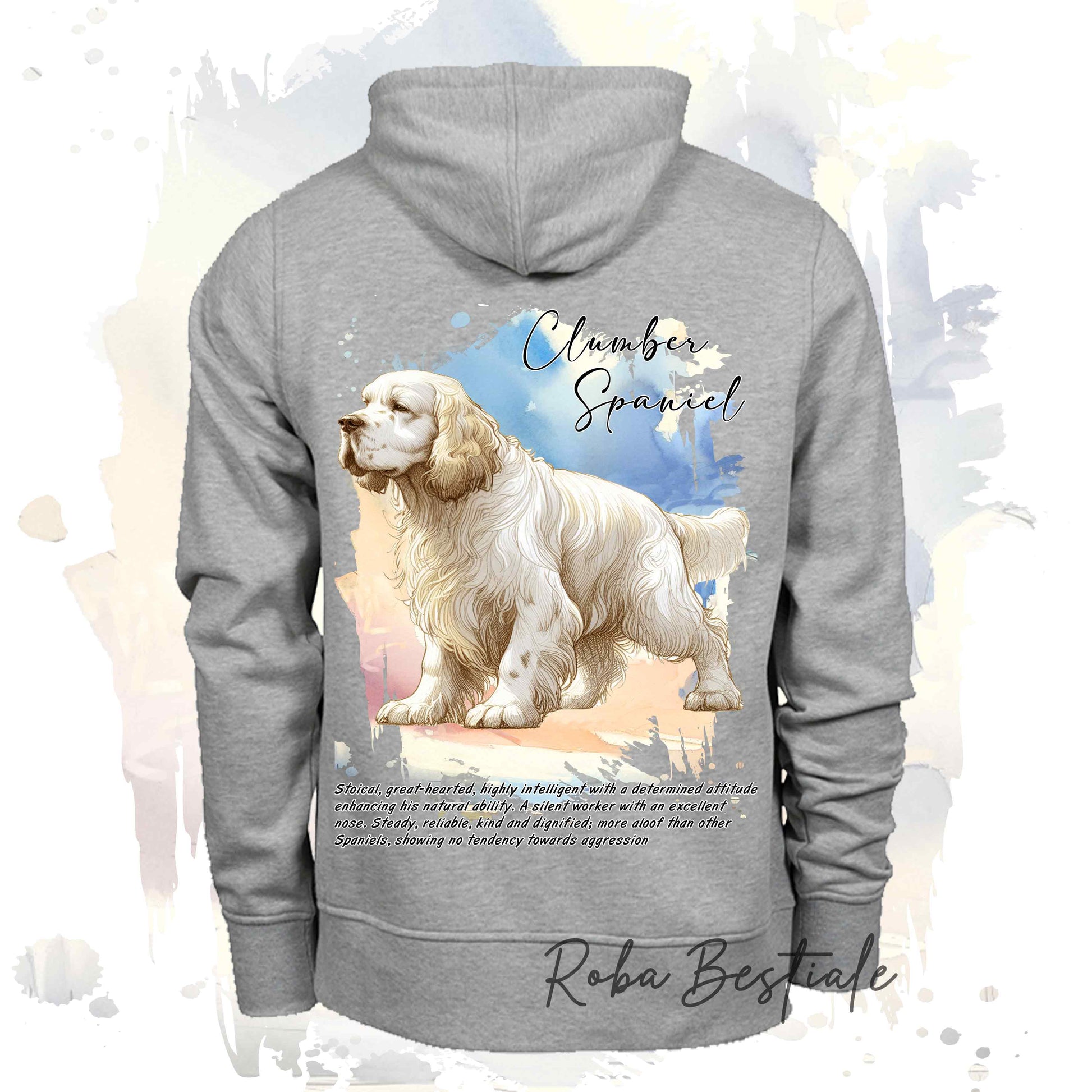 Felpa Invernale BEHAVIOR - CLUMBER SPANIEL - Standard FCI - Con Cappuccio, Unisex - Grigia - dalla XS alla 3XL