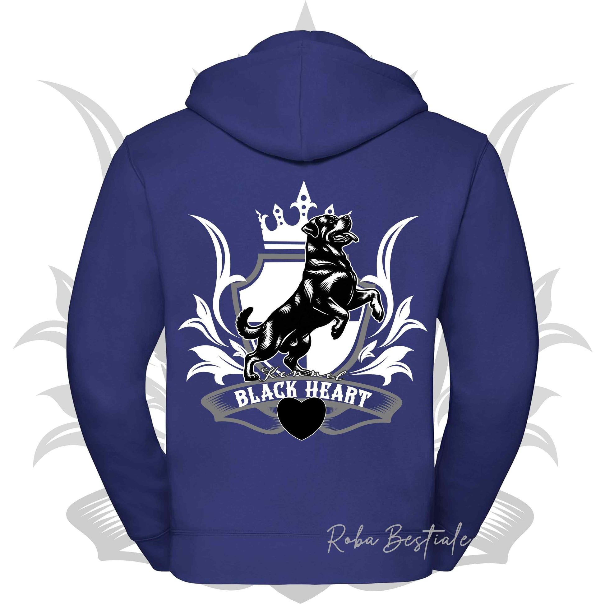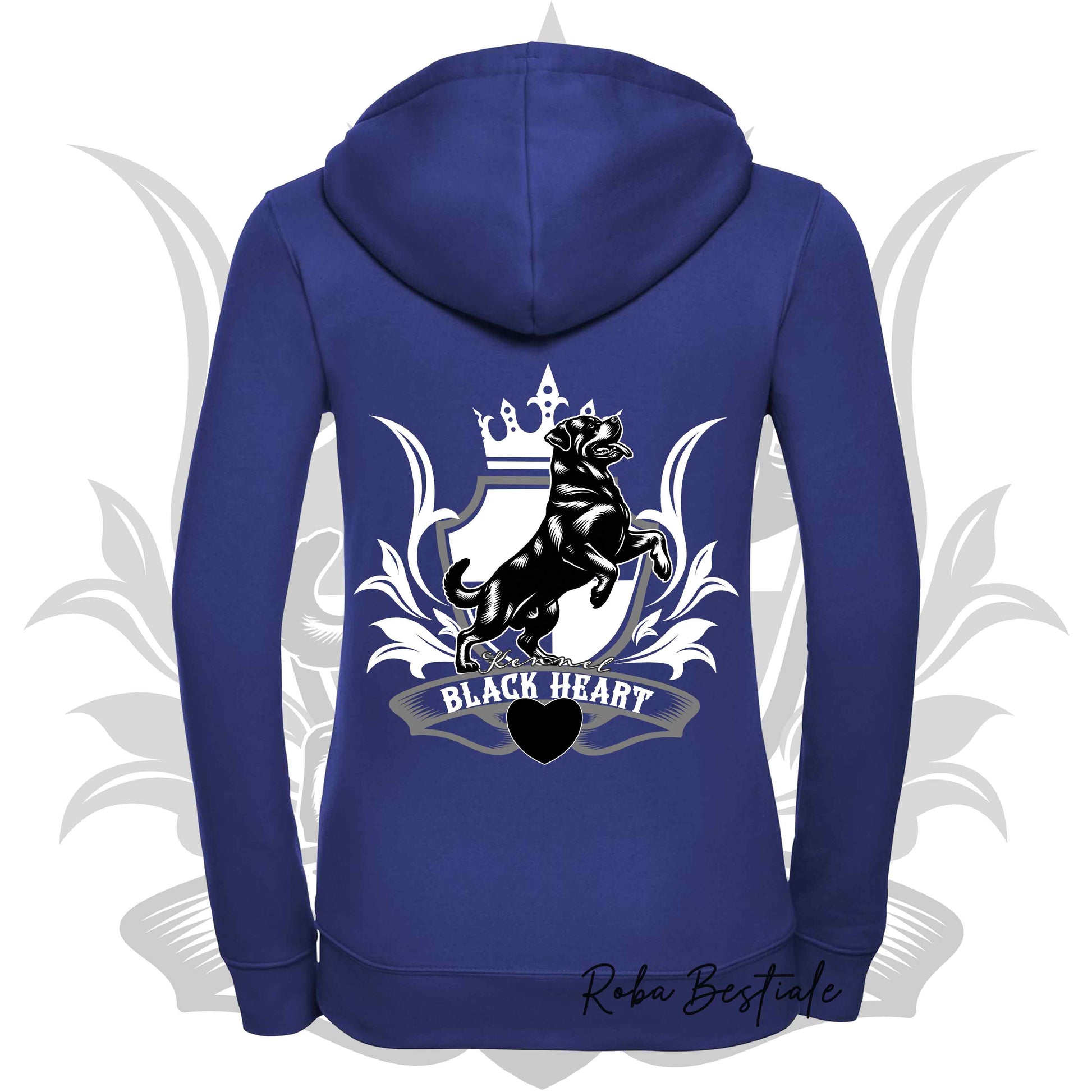 Felpa BLACK HEART Kennel - BLUE ROYAL - Felpata, Con Cappuccio e Full Zip, Uomo o Donna - dalla XS alla 5XL