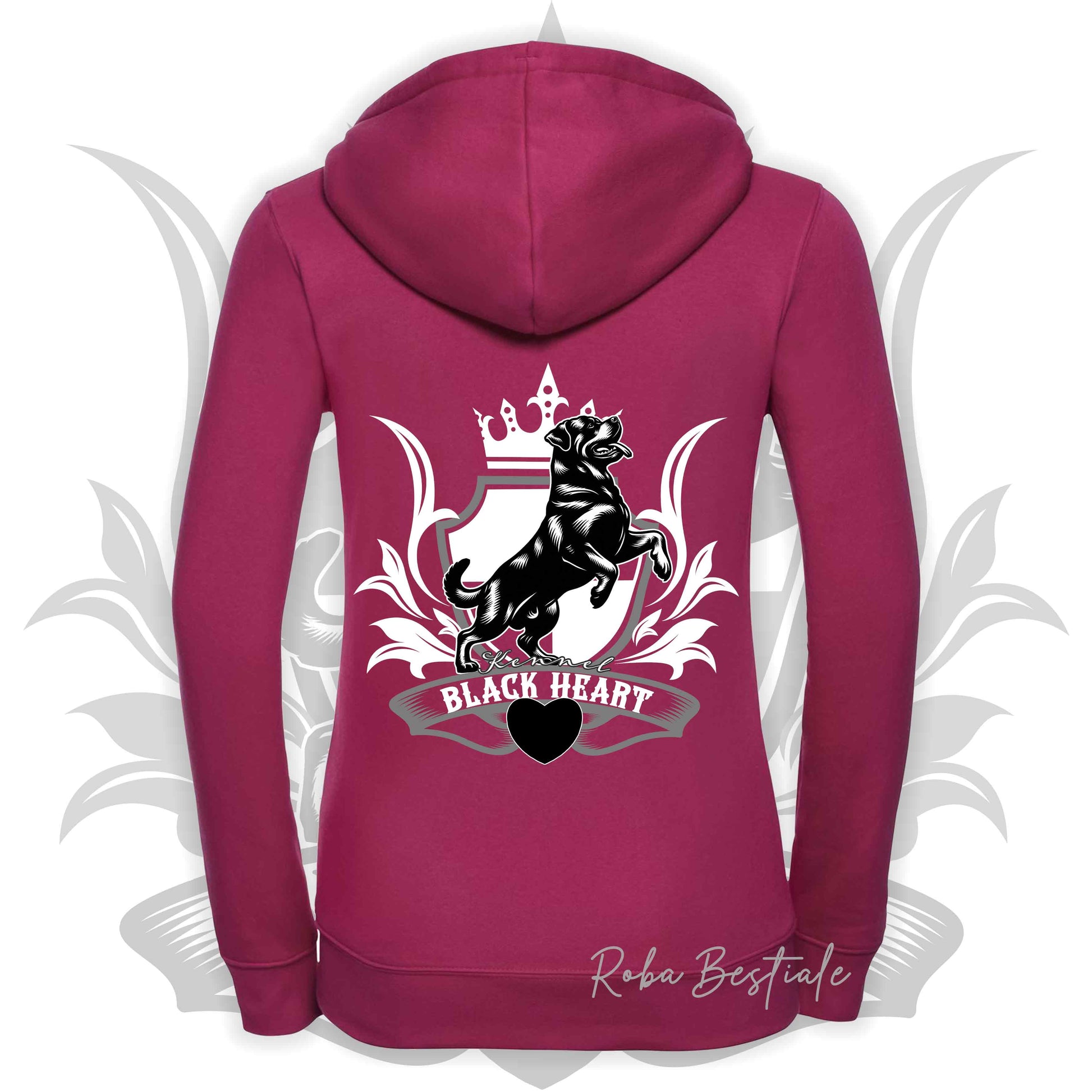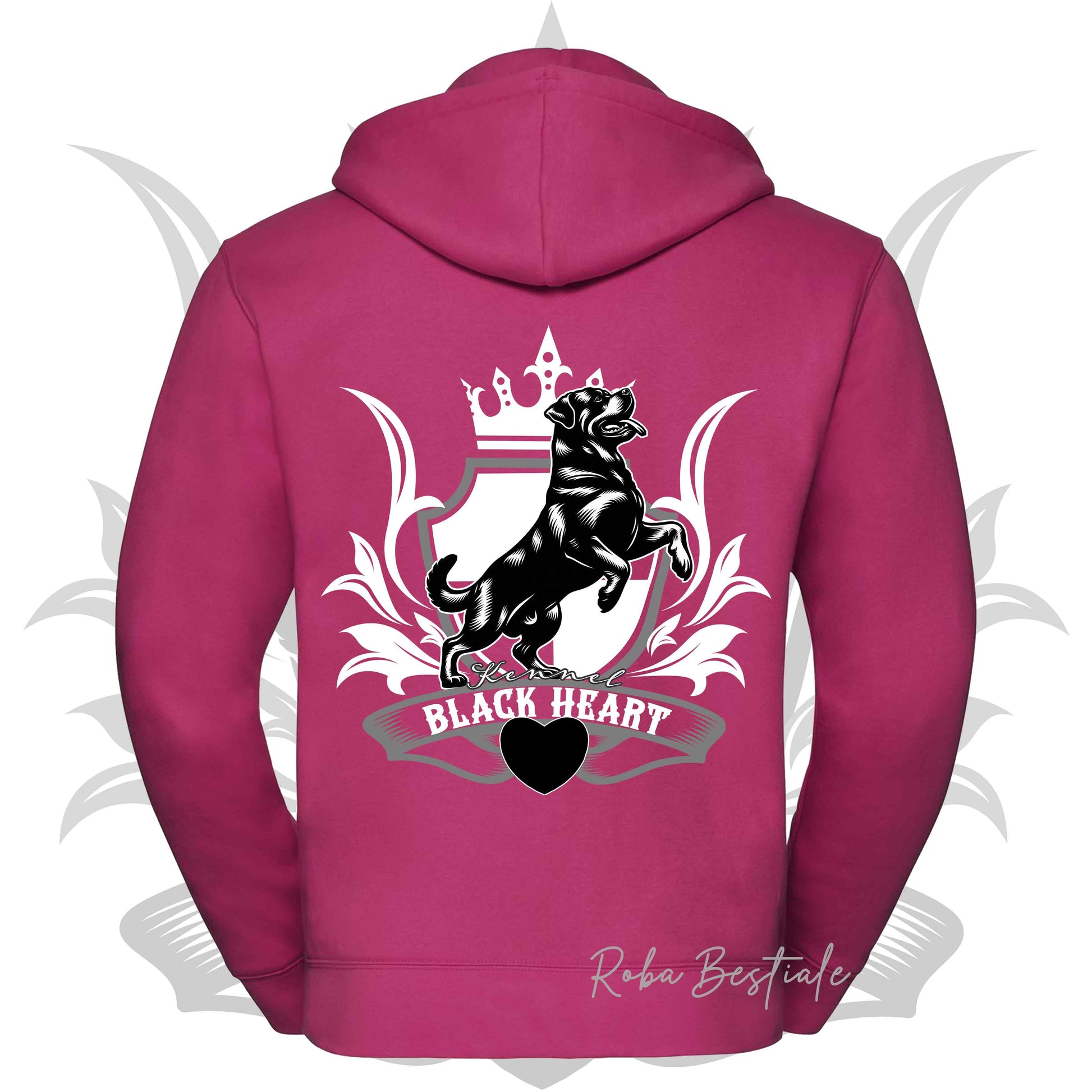 Felpa BLACK HEART Kennel - HOT PINK - Felpata, Con Cappuccio e Full Zip, Uomo o Donna - dalla XS alla 5XL