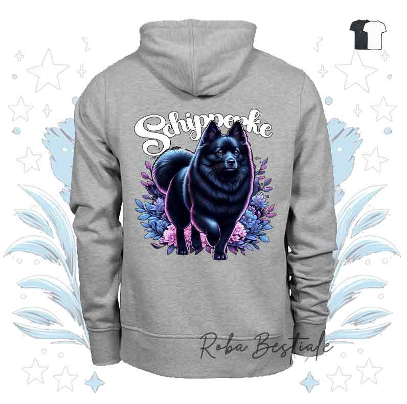 Felpa Invernale BLOSSOM BEAUTY - SCHIPPERKE - Con Cappuccio, Unisex - Nera o Grigia - dalla XS alla 3XL