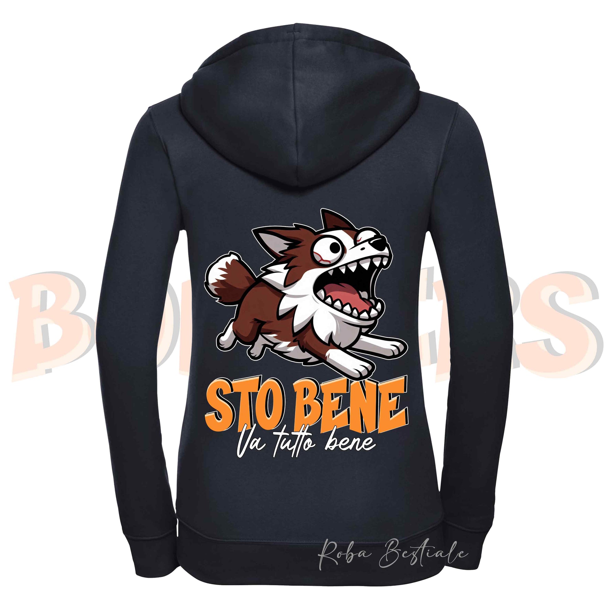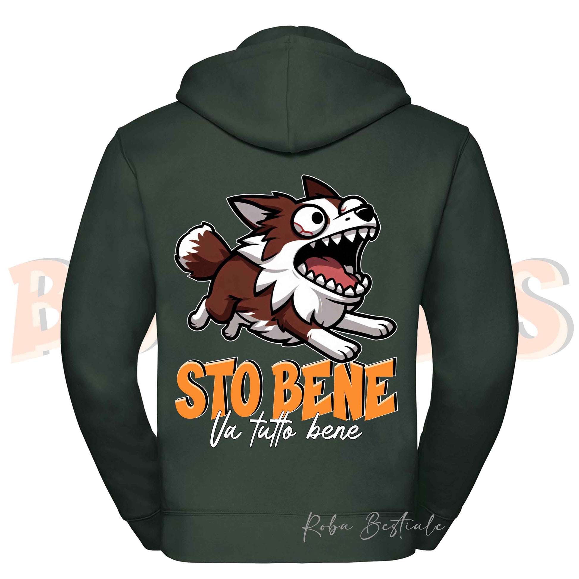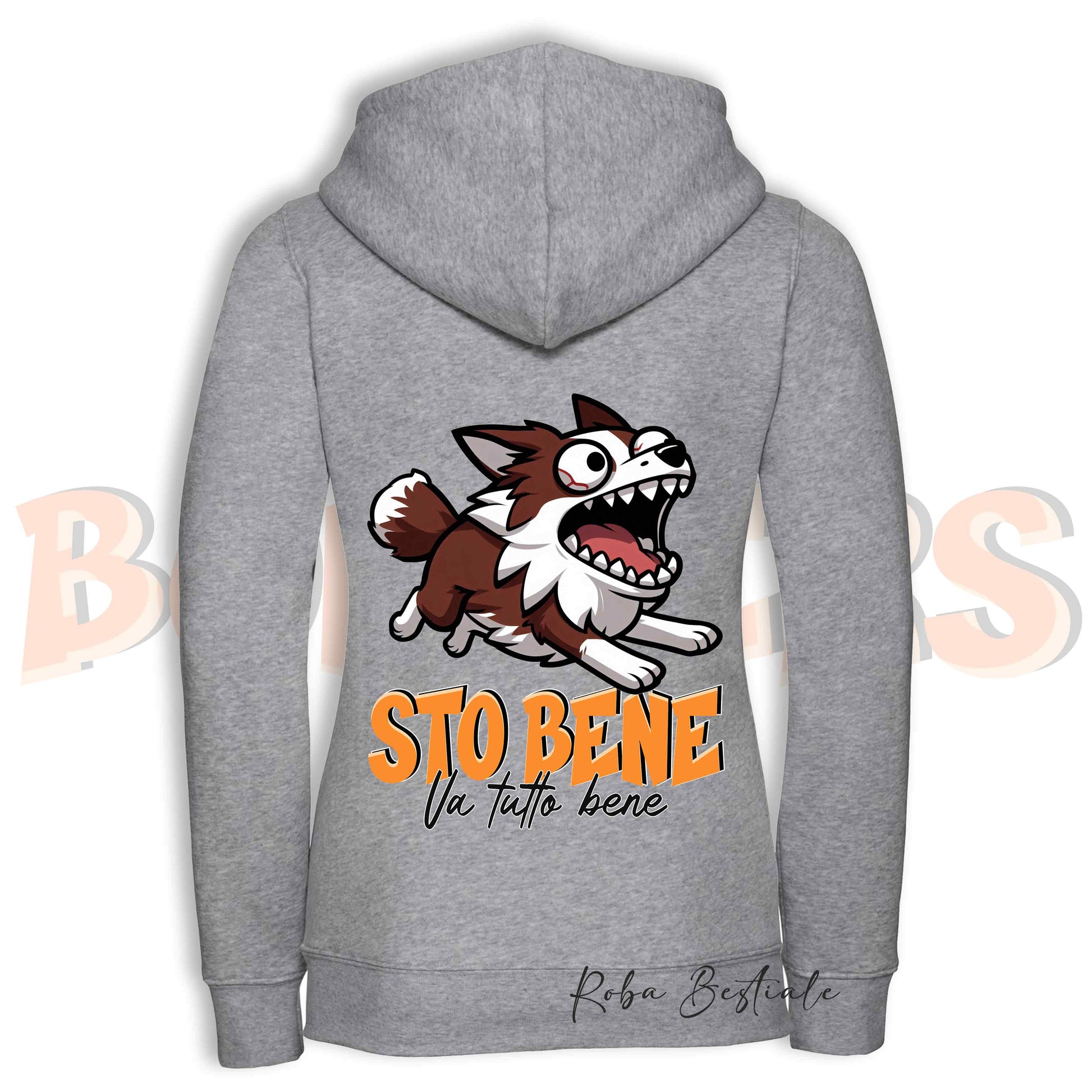 Felpa BONKERS - STO BENE - BORDER COLLIE Rosso e Bianco - Con Cappuccio e Full Zip, Uomo o Donna, in tanti colori - dalla XS alla 5XL
