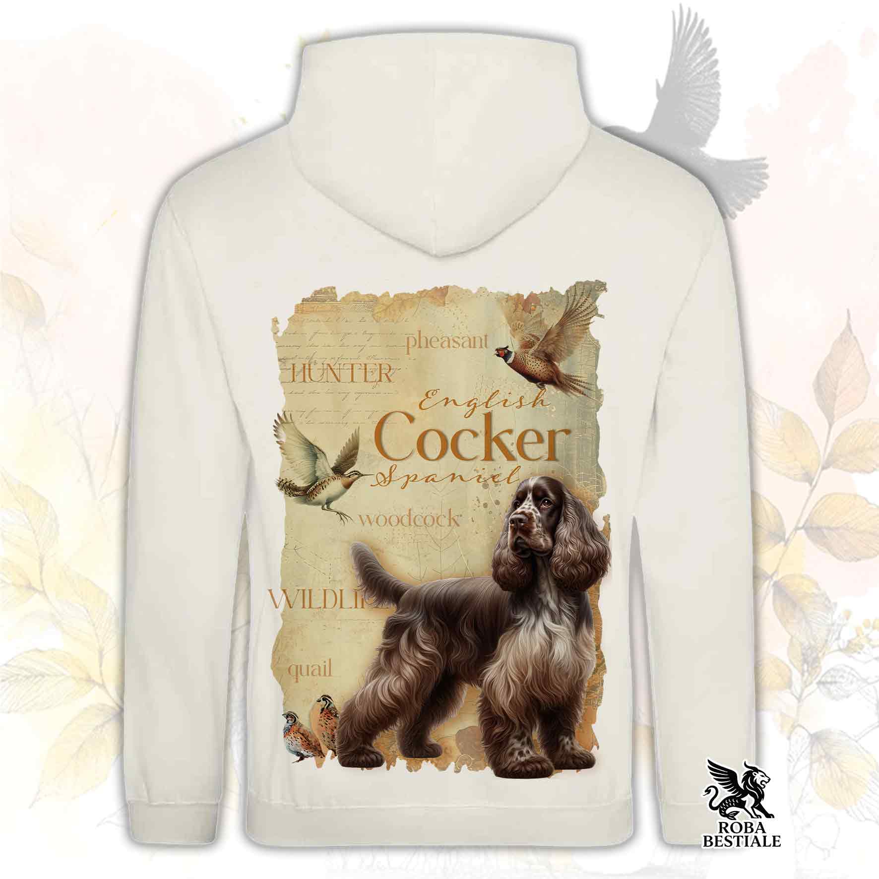 Felpa FIELD LEGACY - COCKER SPANIEL INGLESE Fegato Roano - Con Cappuccio e Tasconi, Unisex - dalla XS alla 3XL