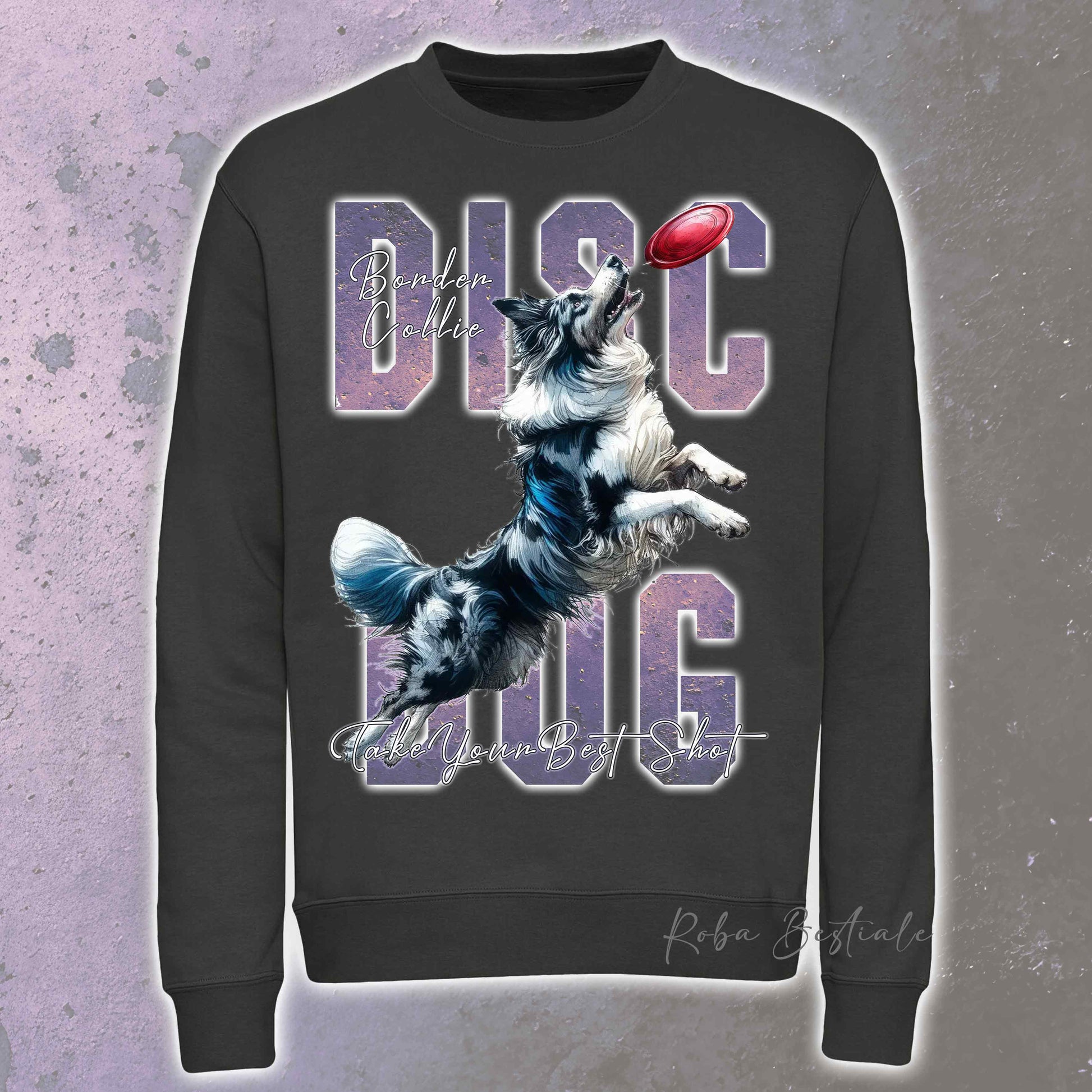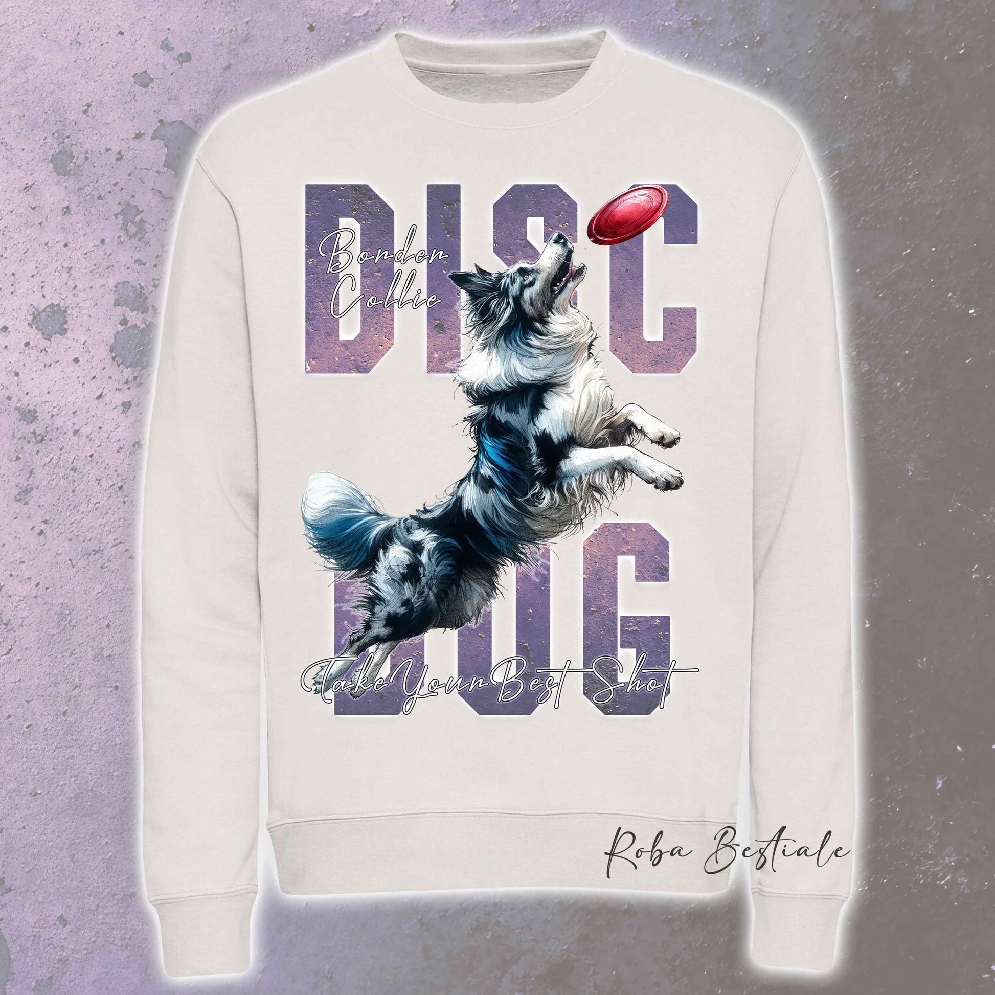 Felpa Invernale APTITUDE - DISC DOG - BORDER COLLIE Blue Merle - Girocollo, Unisex, in tanti colori! - dalla XS alla 3XL