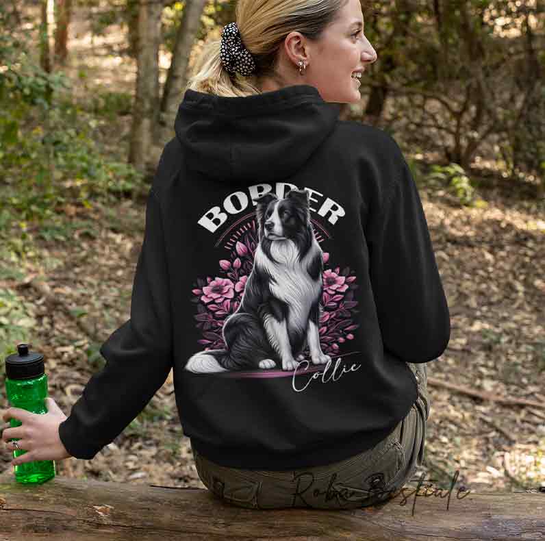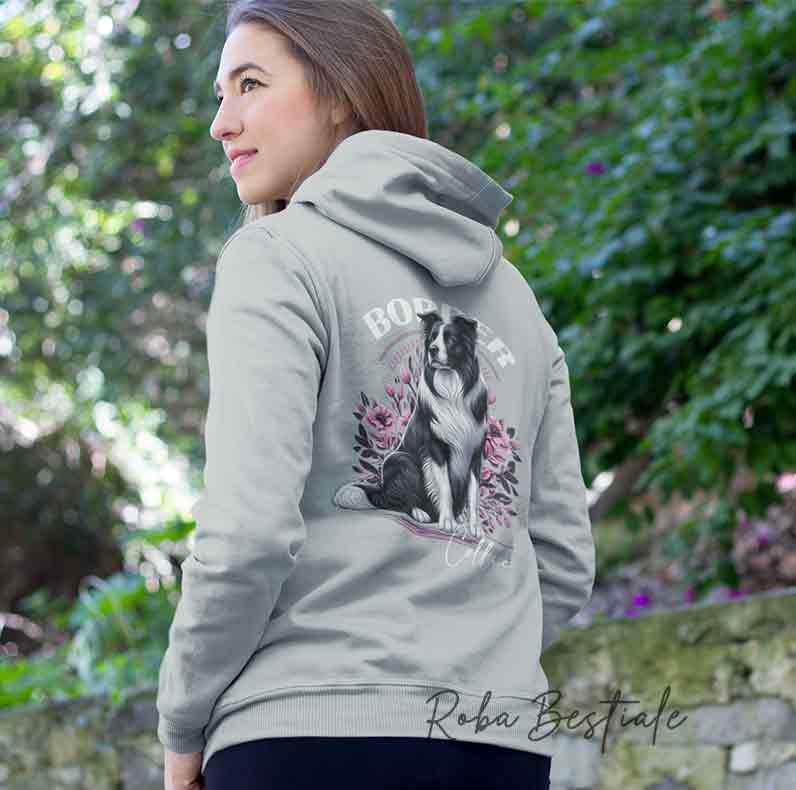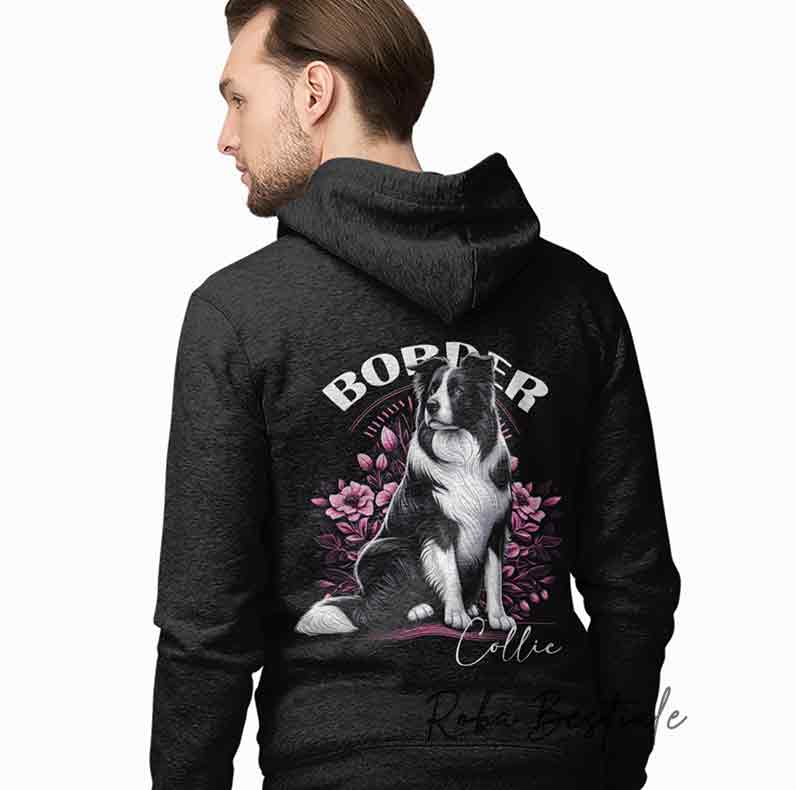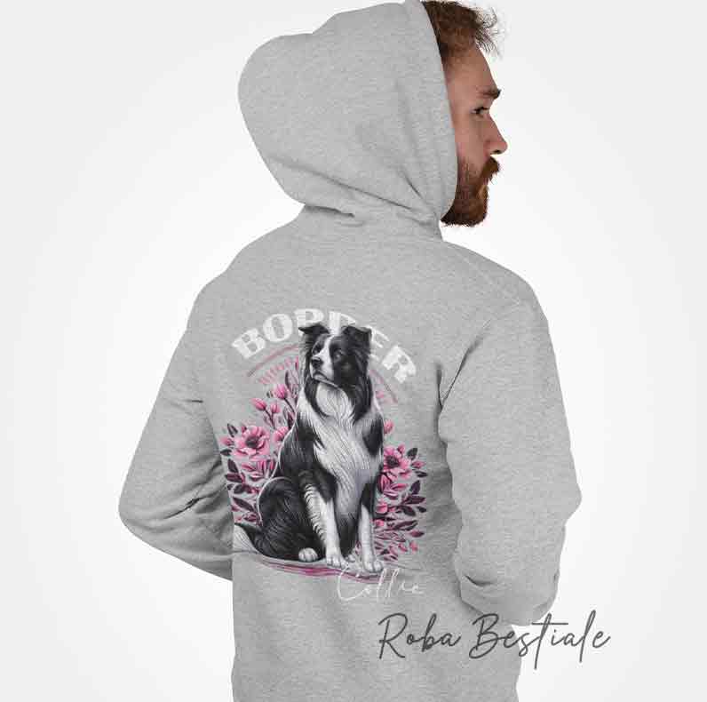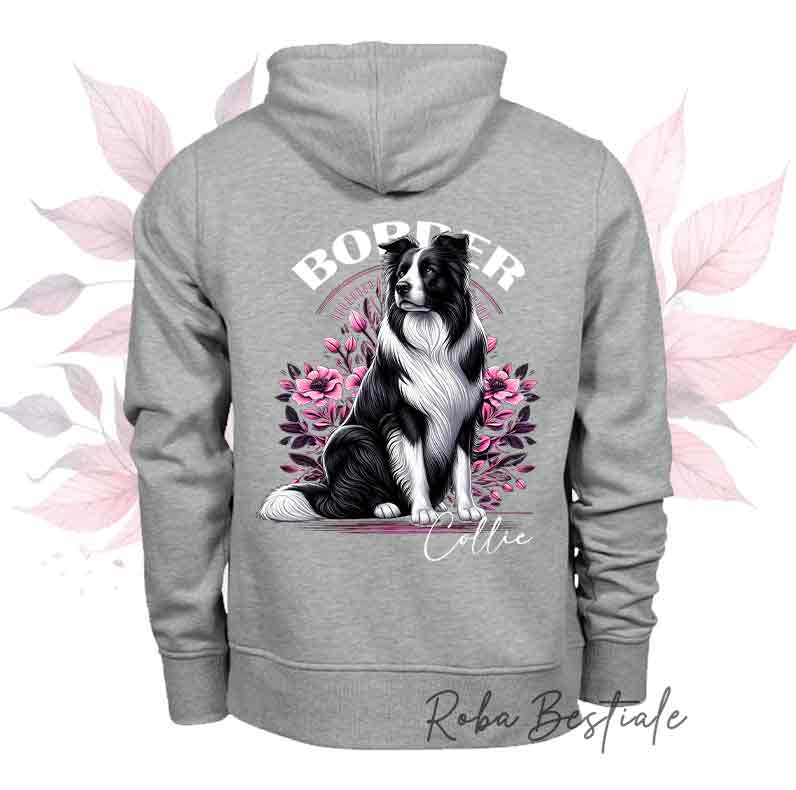Felpa Invernale BLOSSOM BEAUTY - BORDER COLLIE Bianco e Nero - Unisex - Nera o Grigia - dalla XS alla 3XL - Stampa sulla schiena