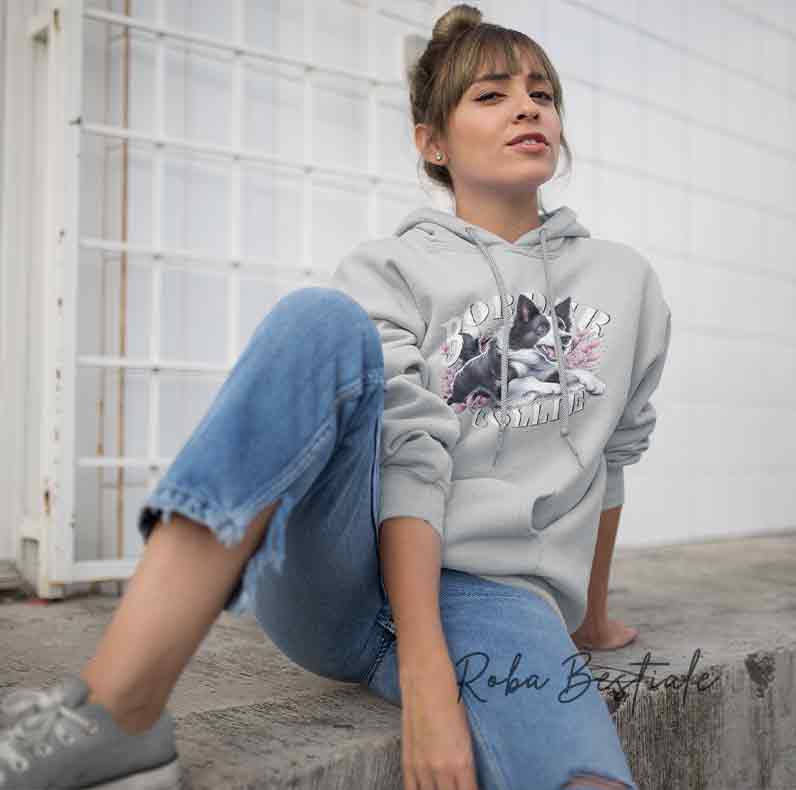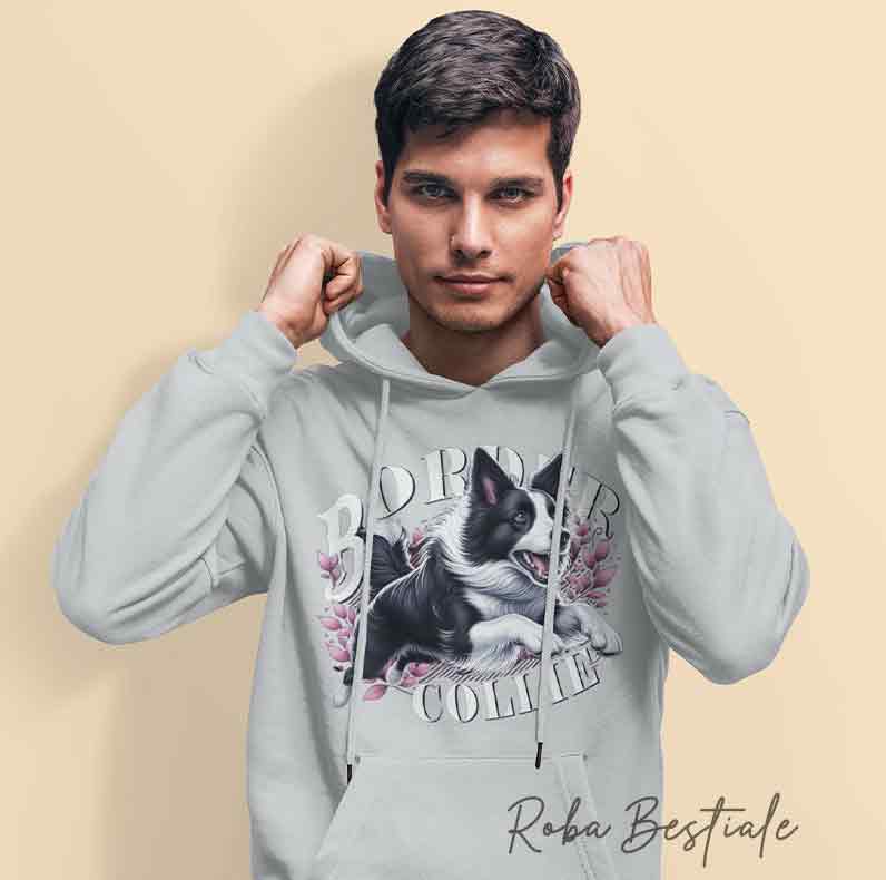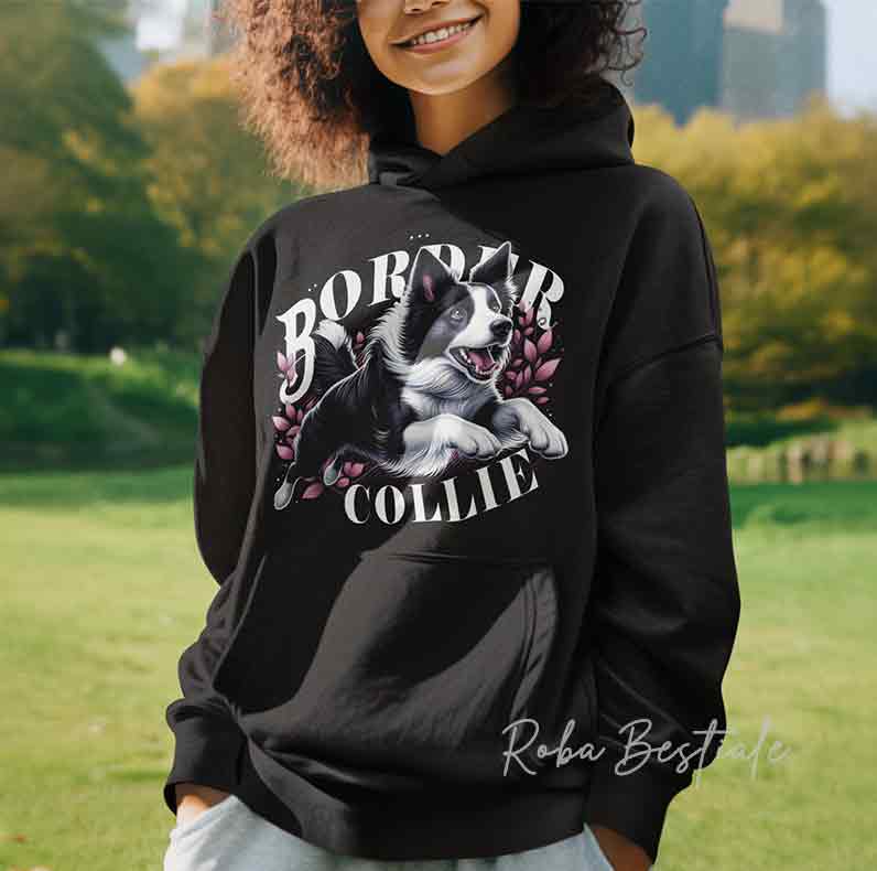 Felpa Invernale BLOSSOM BEAUTY - BORDER COLLIE Bianco e Nero - Unisex - Nera o Grigia - dalla XS alla 3XL