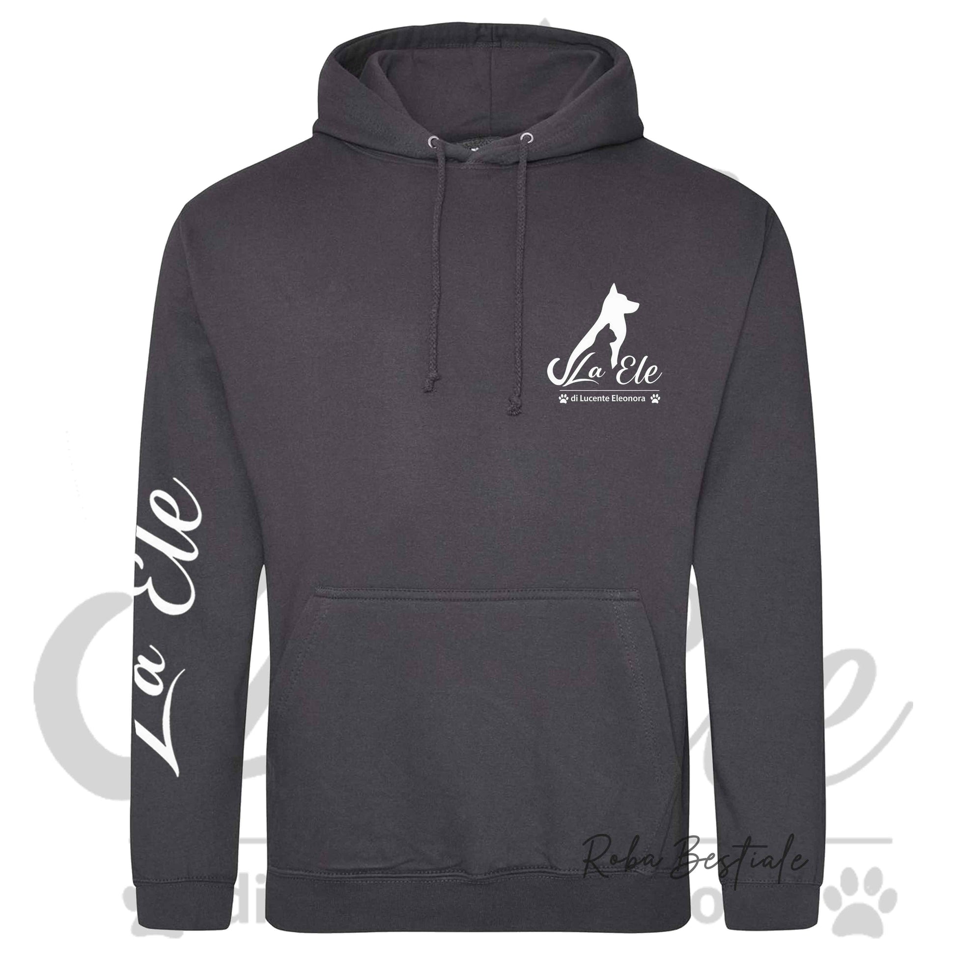 Felpa Invernale LA ELE di Eleonora Lucente - Logo BIANCO o NERO - Diversi toni di GRIGIO - Con Cappuccio - dalla XS alla 3XL