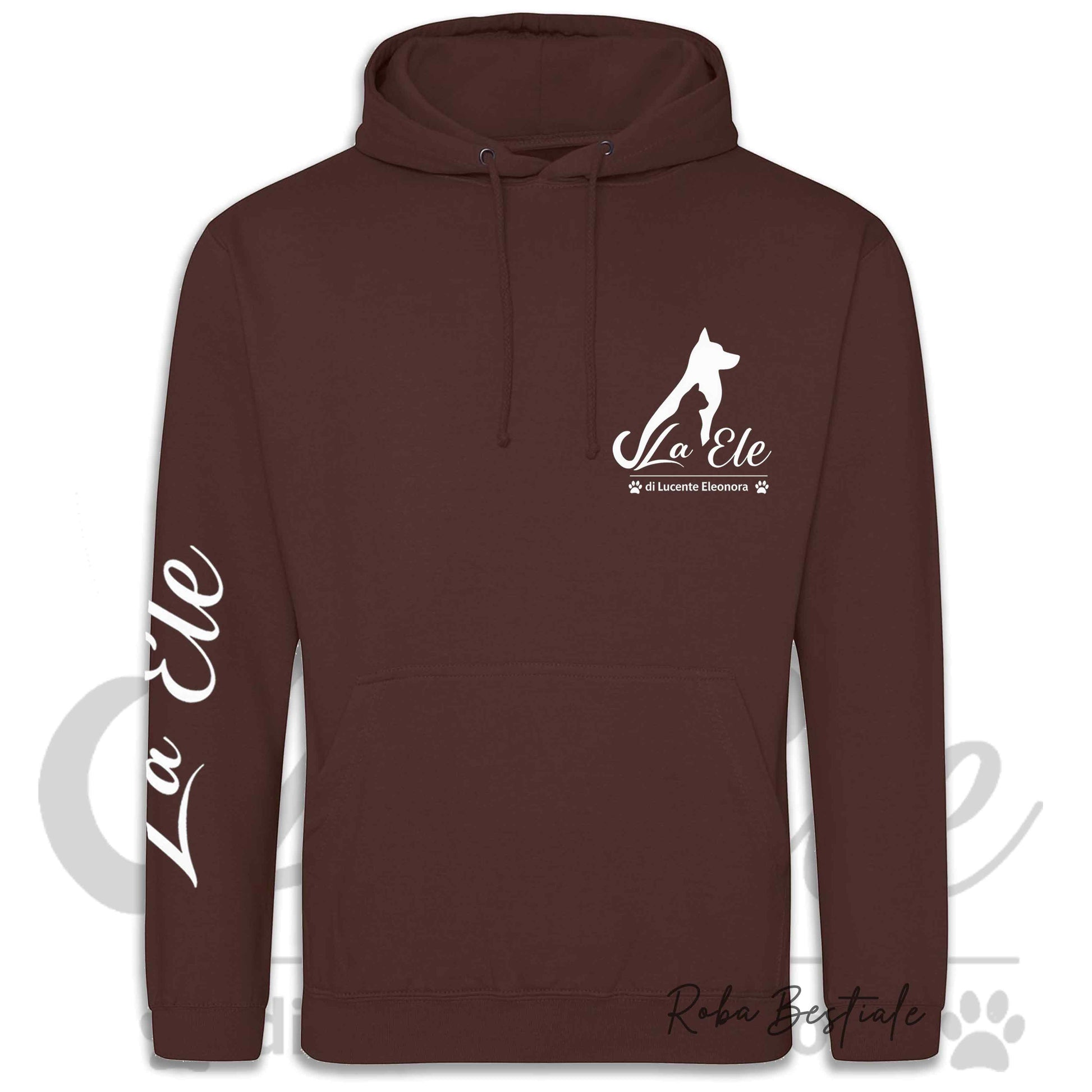 Felpa Invernale LA ELE di Eleonora Lucente - Logo BIANCO - Diversi toni di MARRONE - Cappuccio - dalla XS alla 3XL