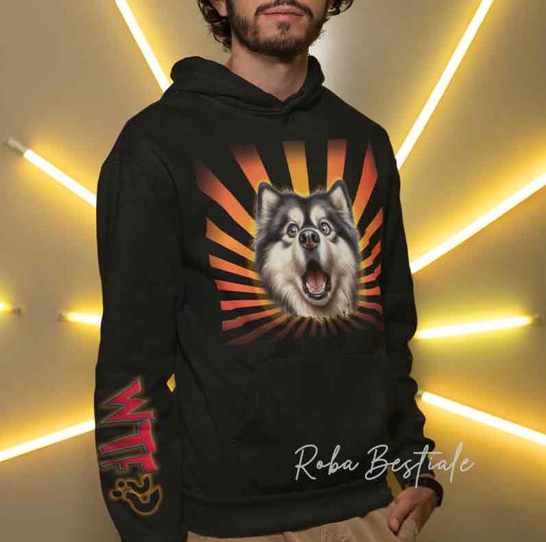 Felpa Invernale WTF?? - ALASKAN MALAMUTE - Con Cappuccio, Nera o Grigia - dalla XS alla 3XL