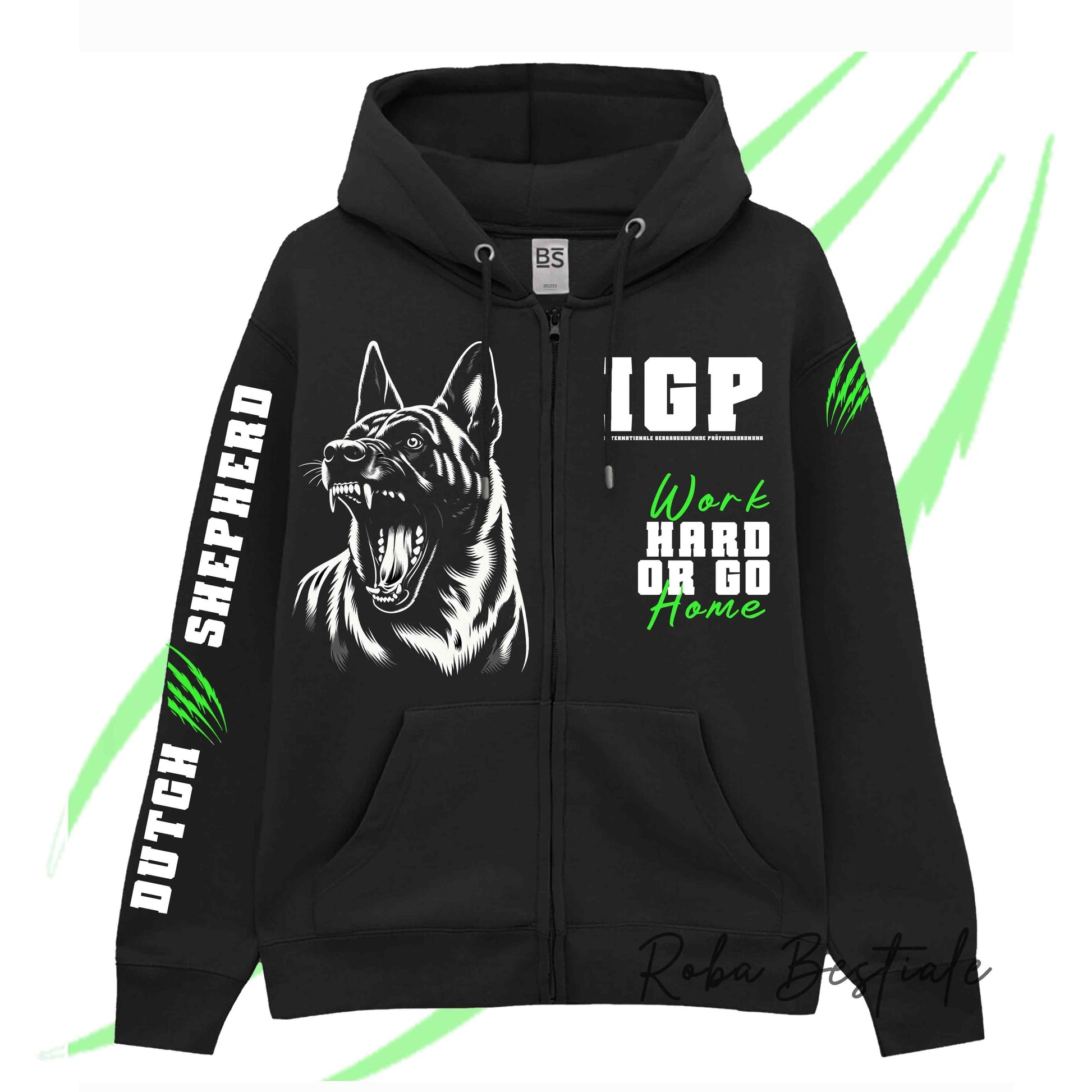 Felpa Invernale Full Zip IGP4 - PASTORE OLANDESE - Unisex - Nera - Dettagli in Colore a Scelta - dalla XS alla 3XL