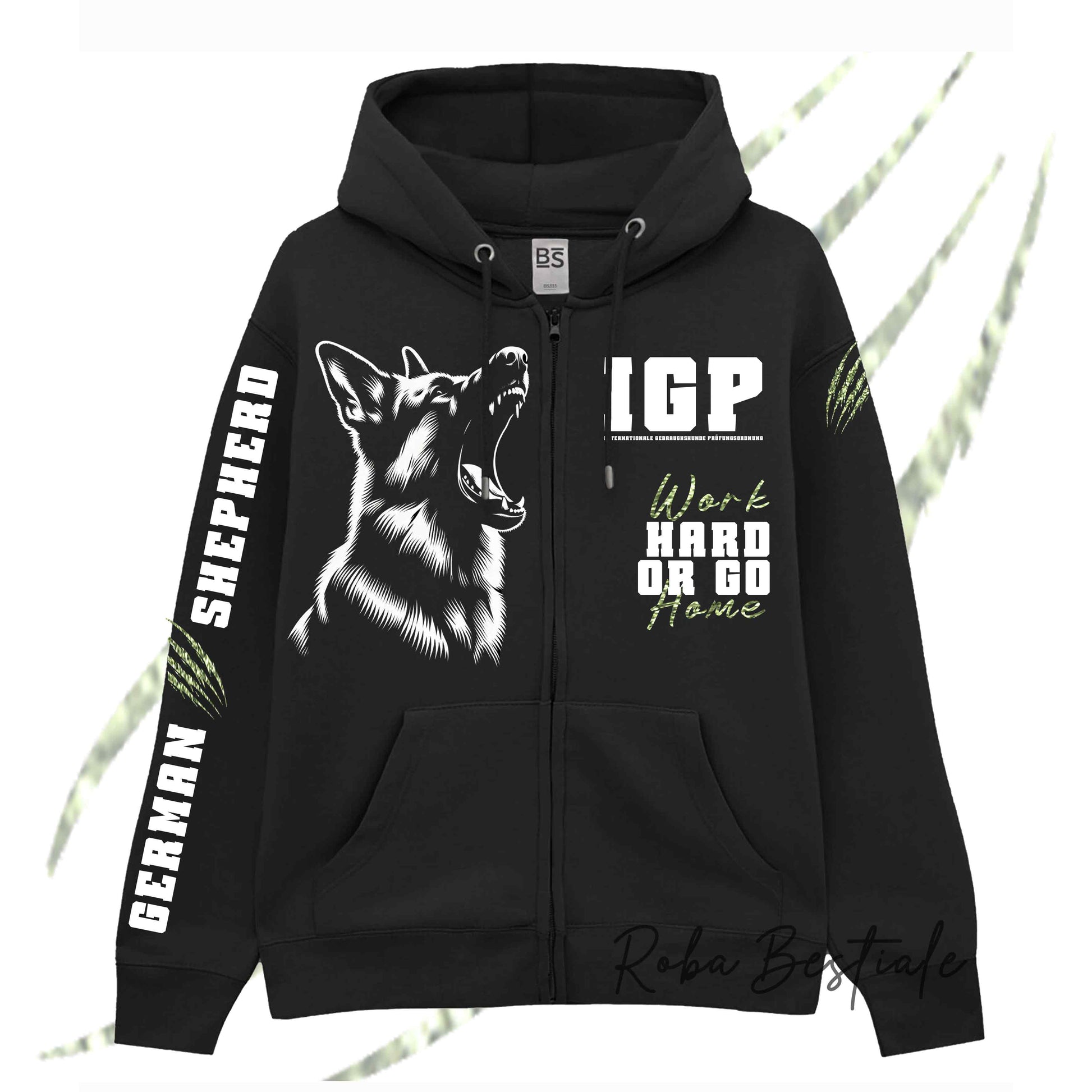 Felpa Zip IGP4 - PASTORE TEDESCO - GLITTER! Unisex - Nera - Dettagli in Colore a Scelta - dalla XS alla 3XL