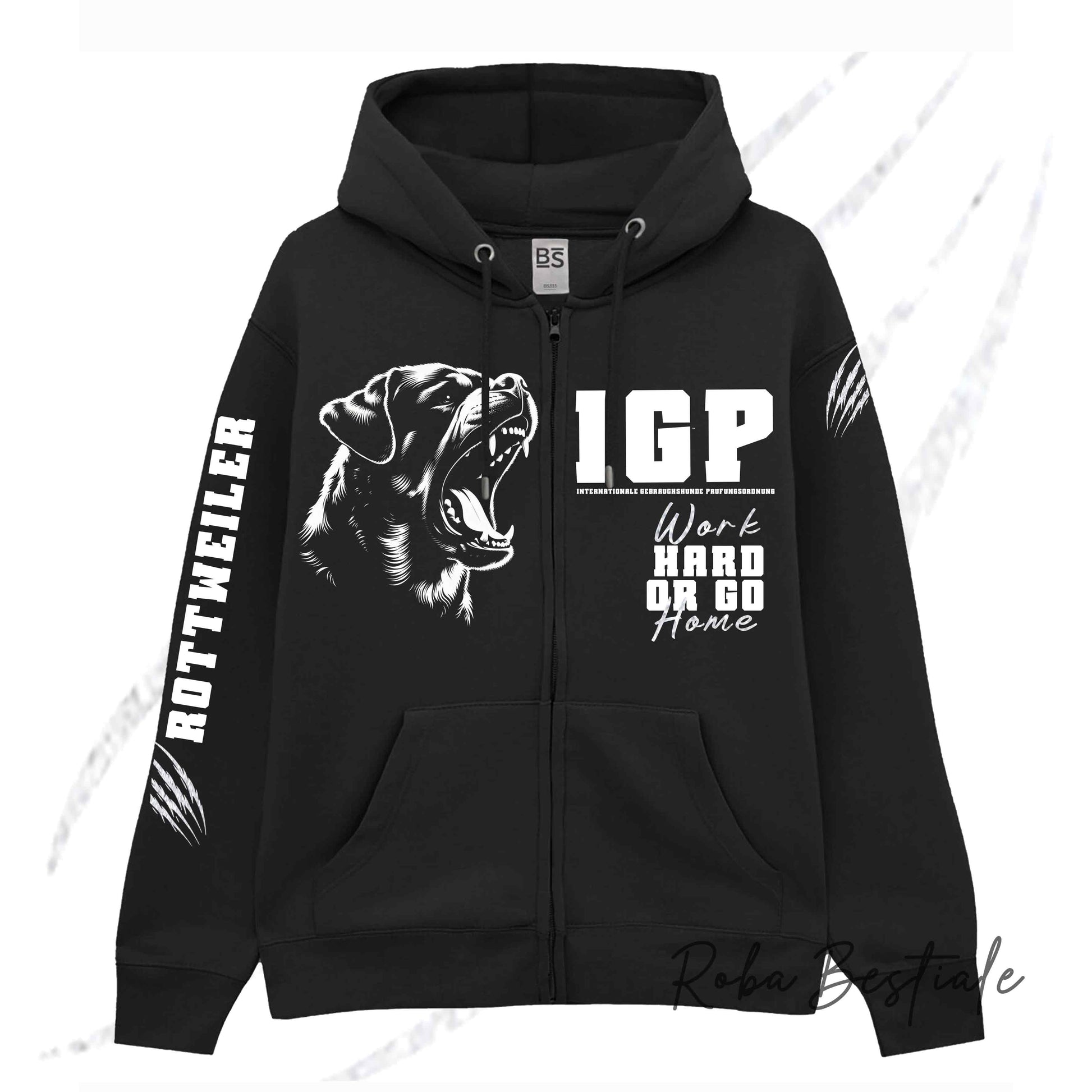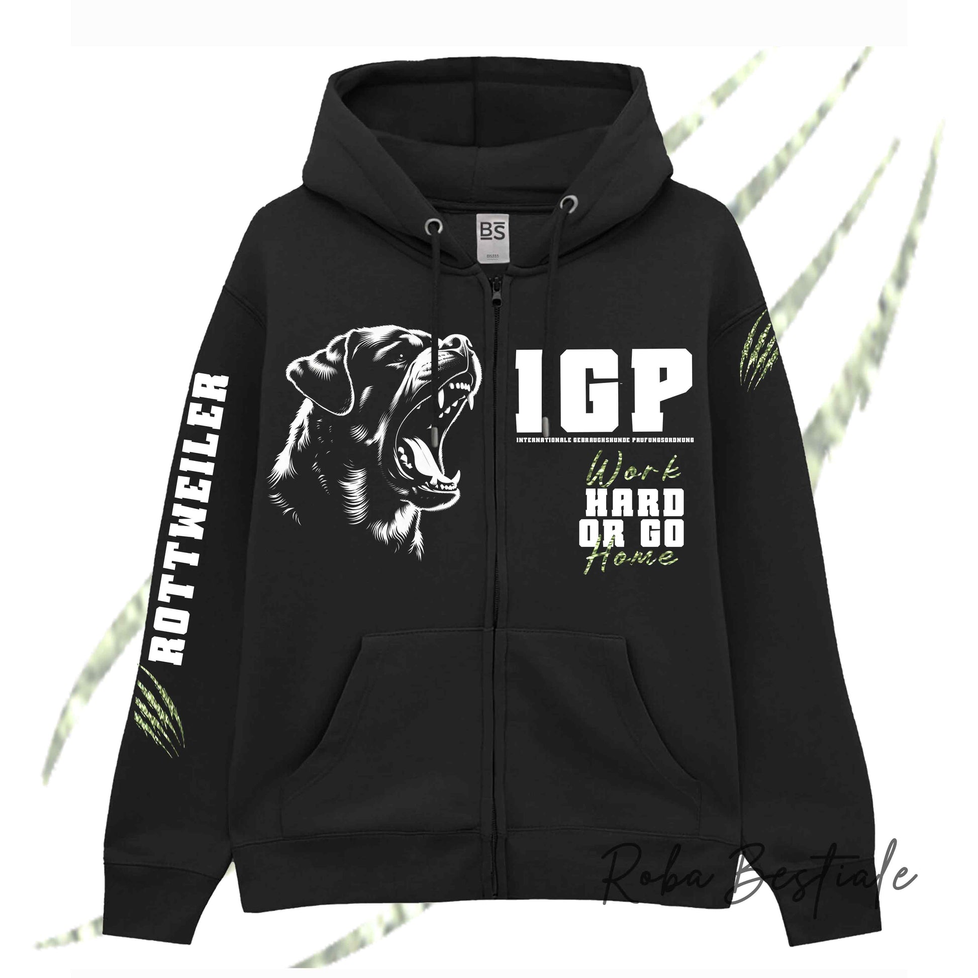 Felpa Invernale Full Zip IGP4 - ROTTWEILER - GLITTER! Unisex - Nera - Dettagli in Colore a Scelta - dalla XS alla 3XL