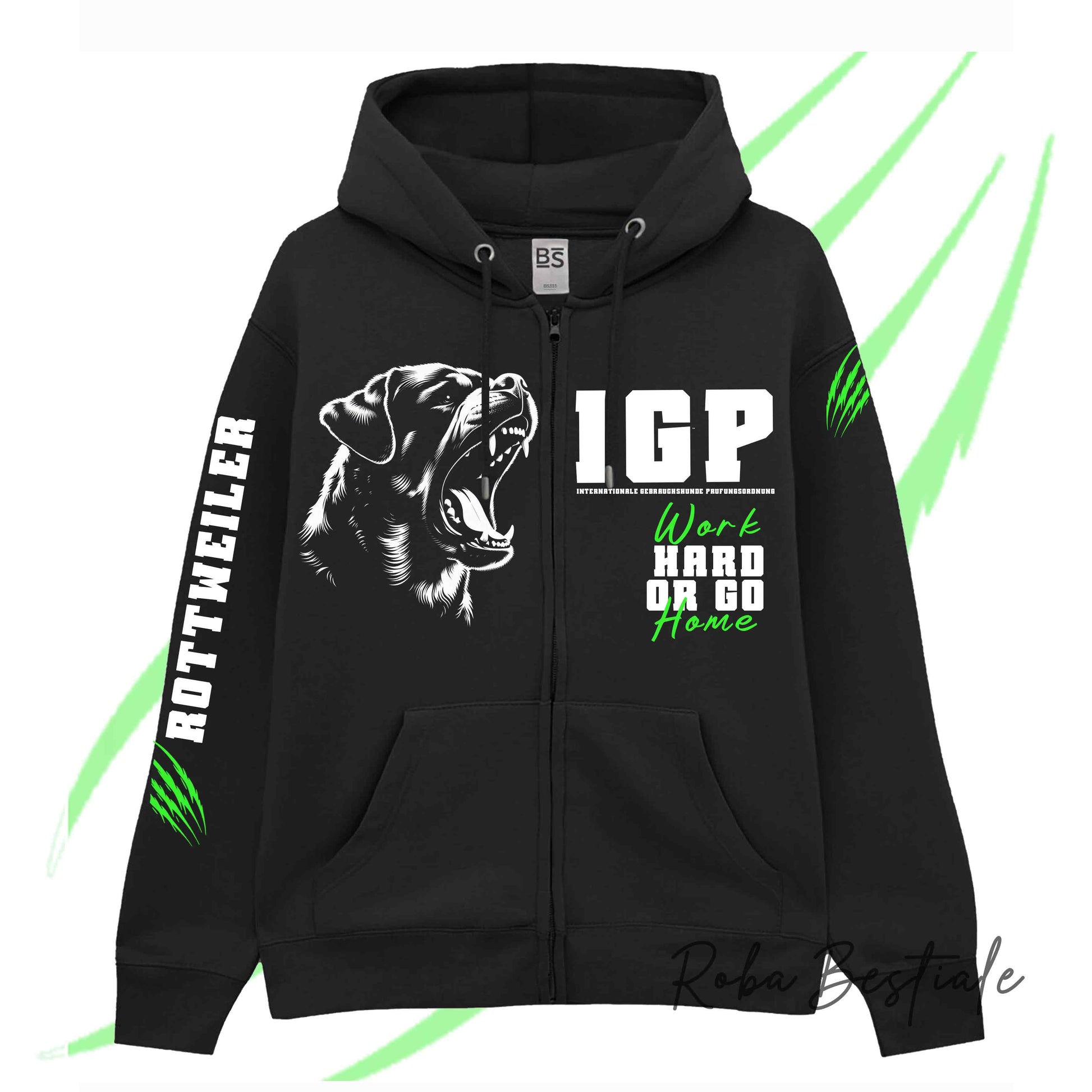 Felpa Invernale Full Zip IGP4 - ROTTWEILER - Unisex - Nera - Dettagli in Colore a Scelta - dalla XS alla 3XL