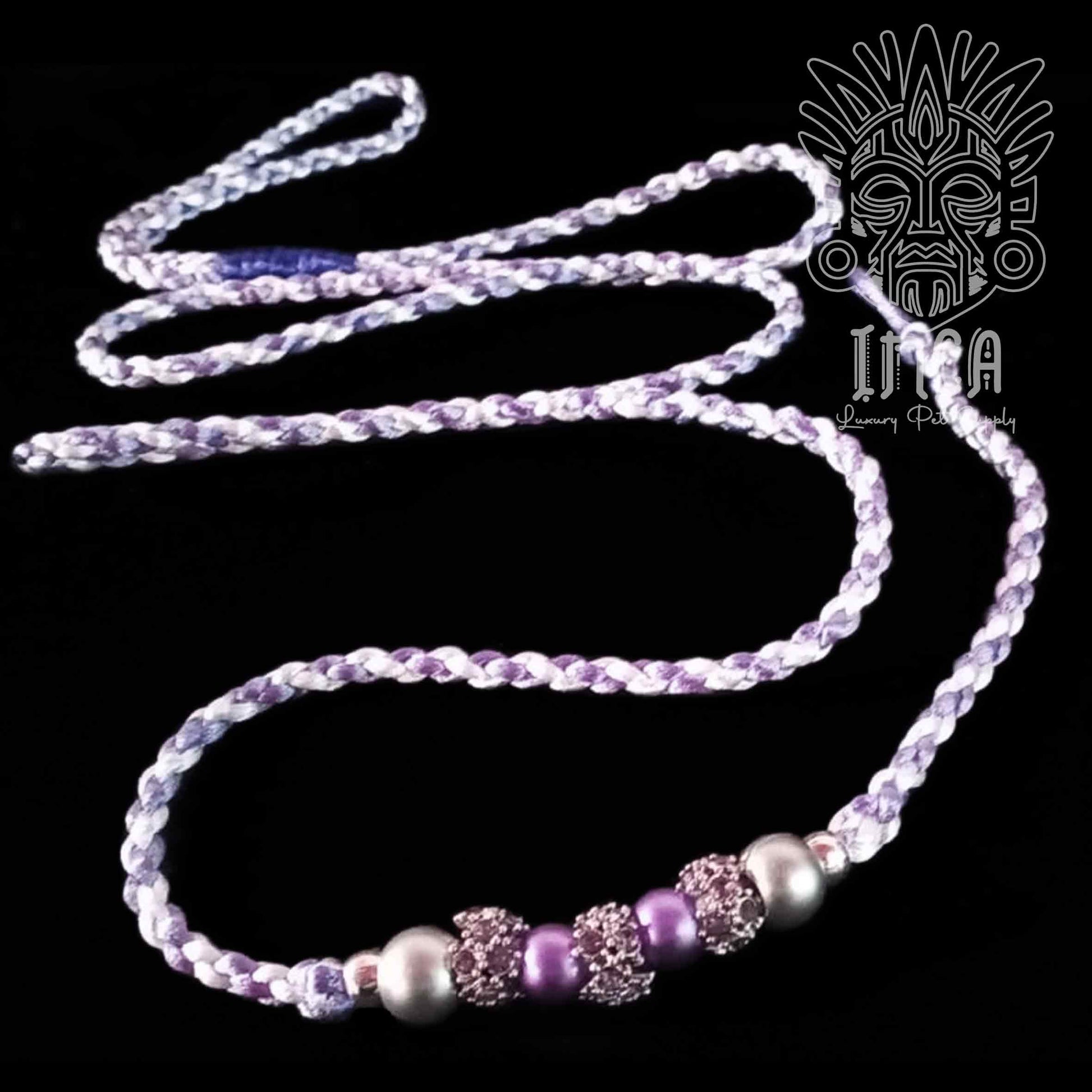 Guinzaglio da Show INCA LUXURY - In Raso Bianco e Lilla, con perle e asola per collare - 140 cm
