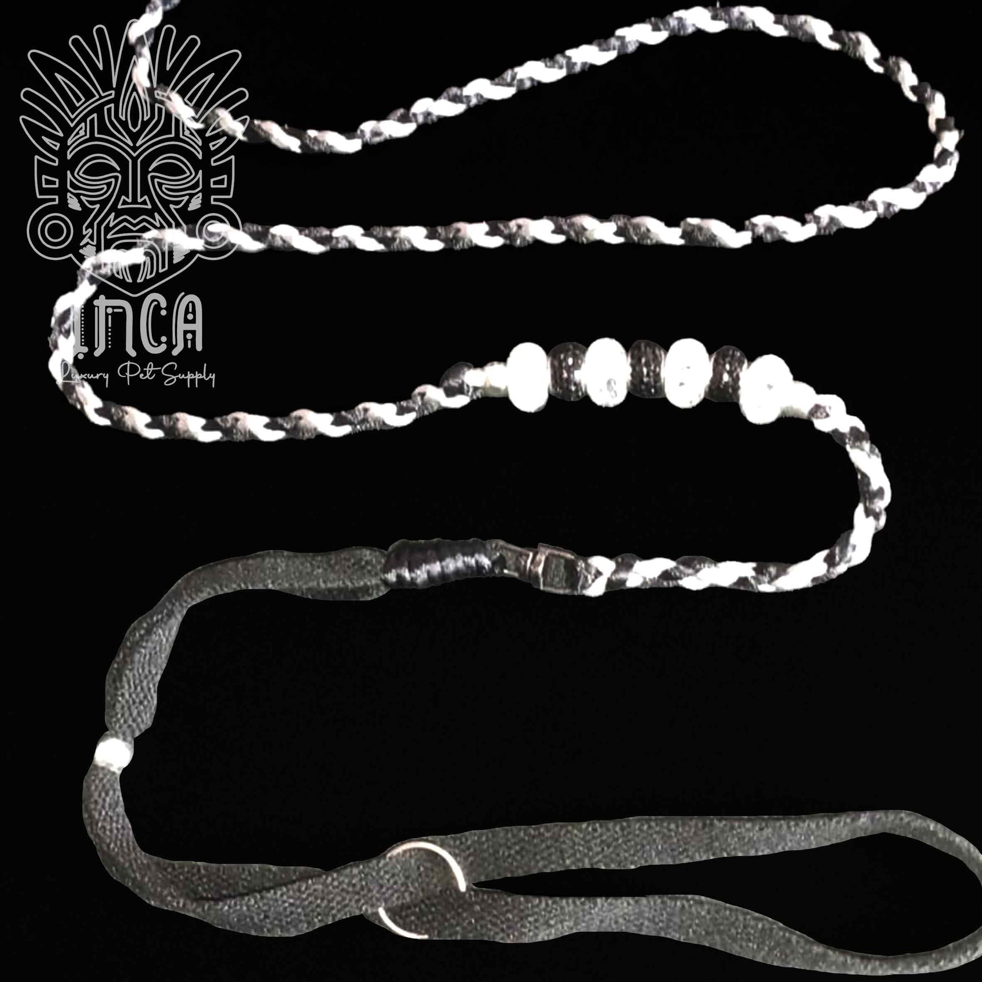 Guinzaglio da Show INCA LUXURY - In Raso Nero e Argento, con perle e collare piatto - 125 cm
